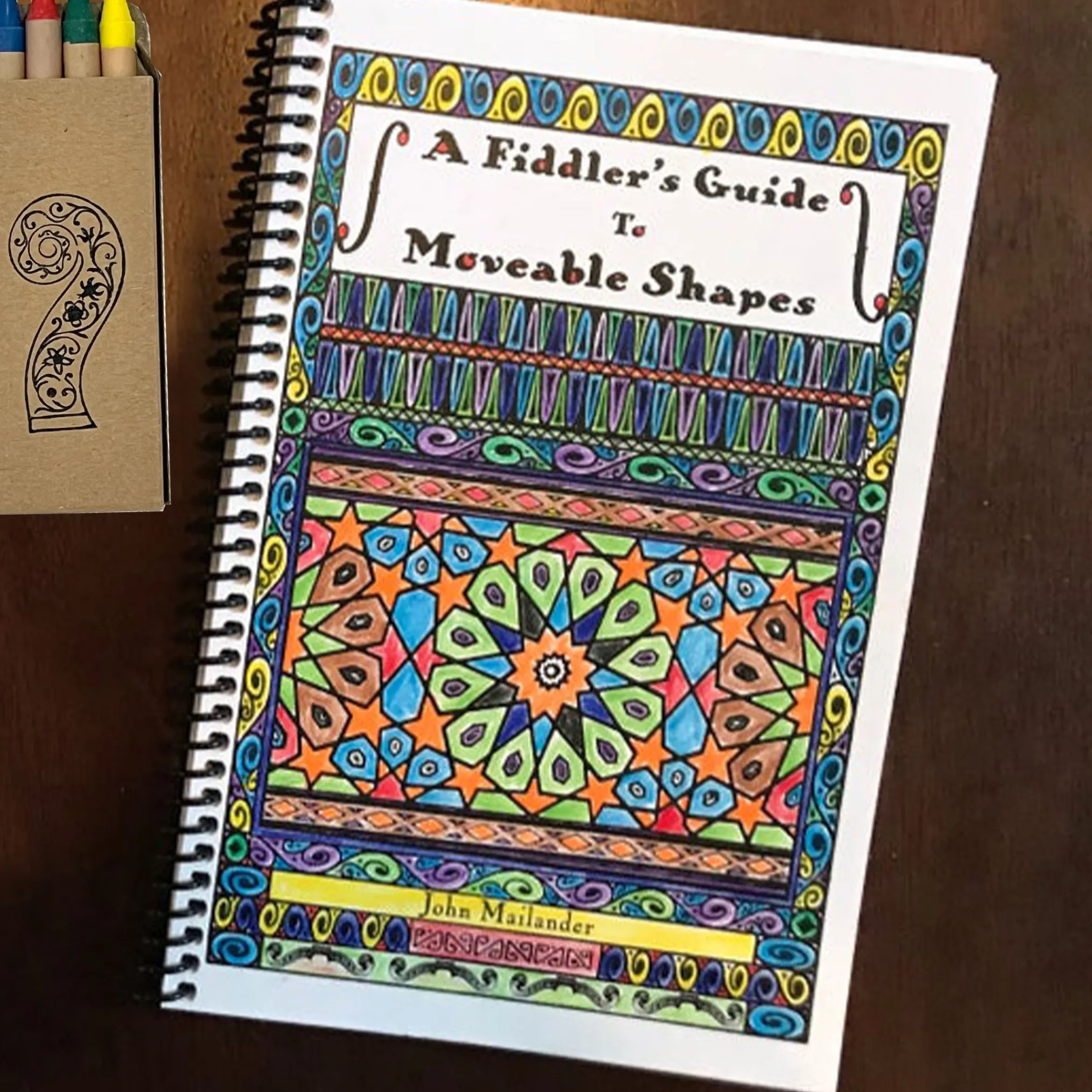 A Fiddler’s Guide to Moveable Shapes is the world’s first fiddle-focused chord shape coloring book for visually inclined, harmonically-curious string players of all levels. From the mind of acclaimed fiddler John Mailander, the guide combines traditional music notation with striking visuals for a unique learning experience. Colored crayons included.