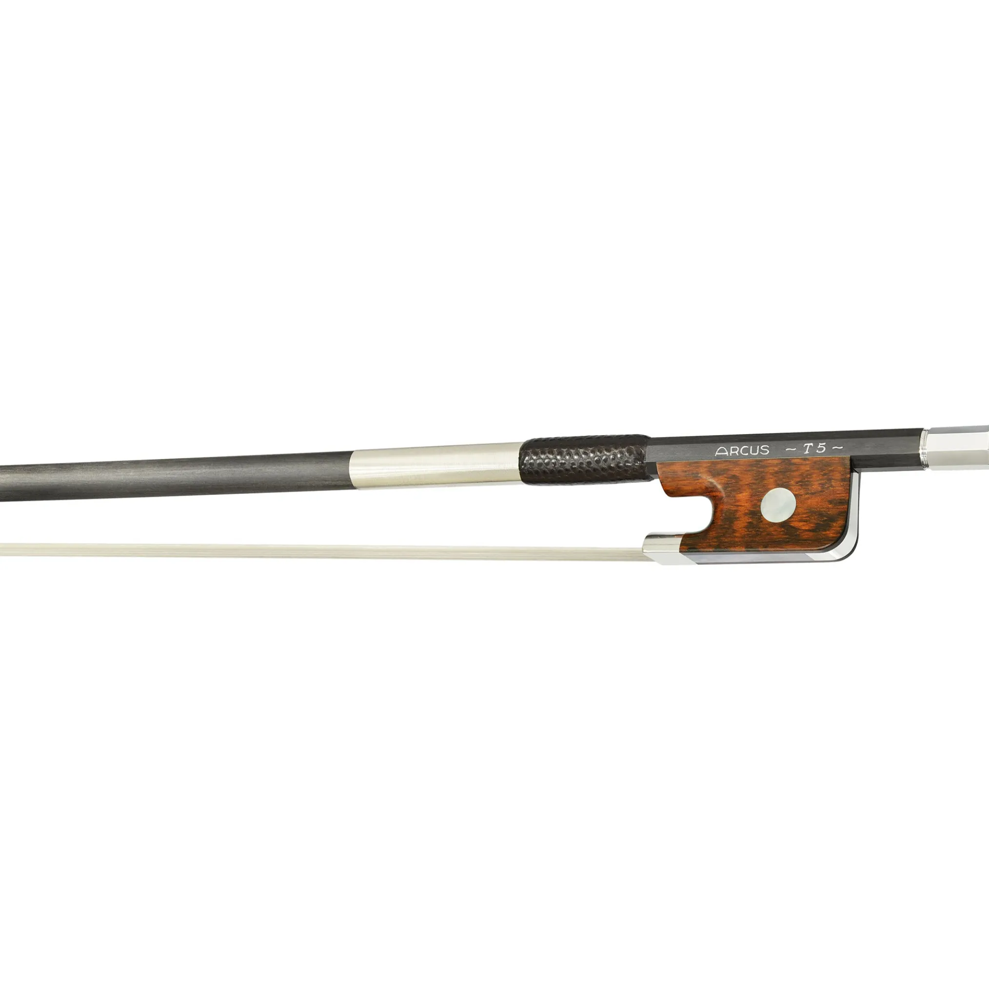 Maybe the T5 will be the bow that finally solves some of the mysteries of issues you have endured by playing with wooden bows or low-tech carbon bows. Now you can play with the ease of a violin bow and the strength of a cello bow. It jumps just the way you want but also sits perfectly on the strings both in pianissimo and fortissimo. Its sound is warm with plenty of brilliance, matching bows that may cost several times as much.