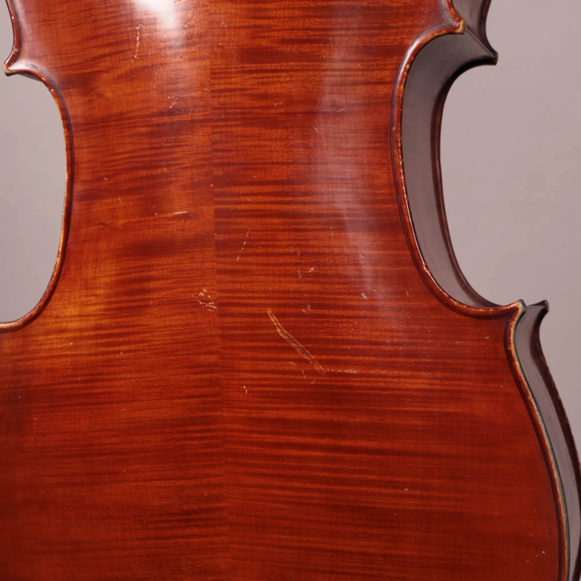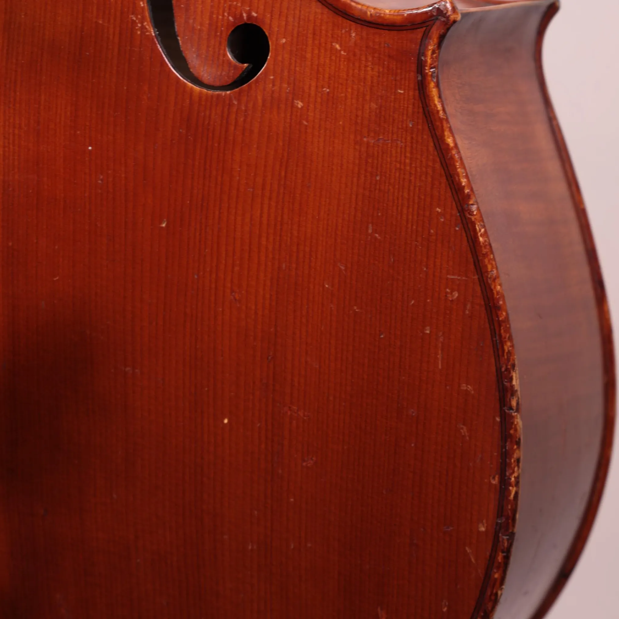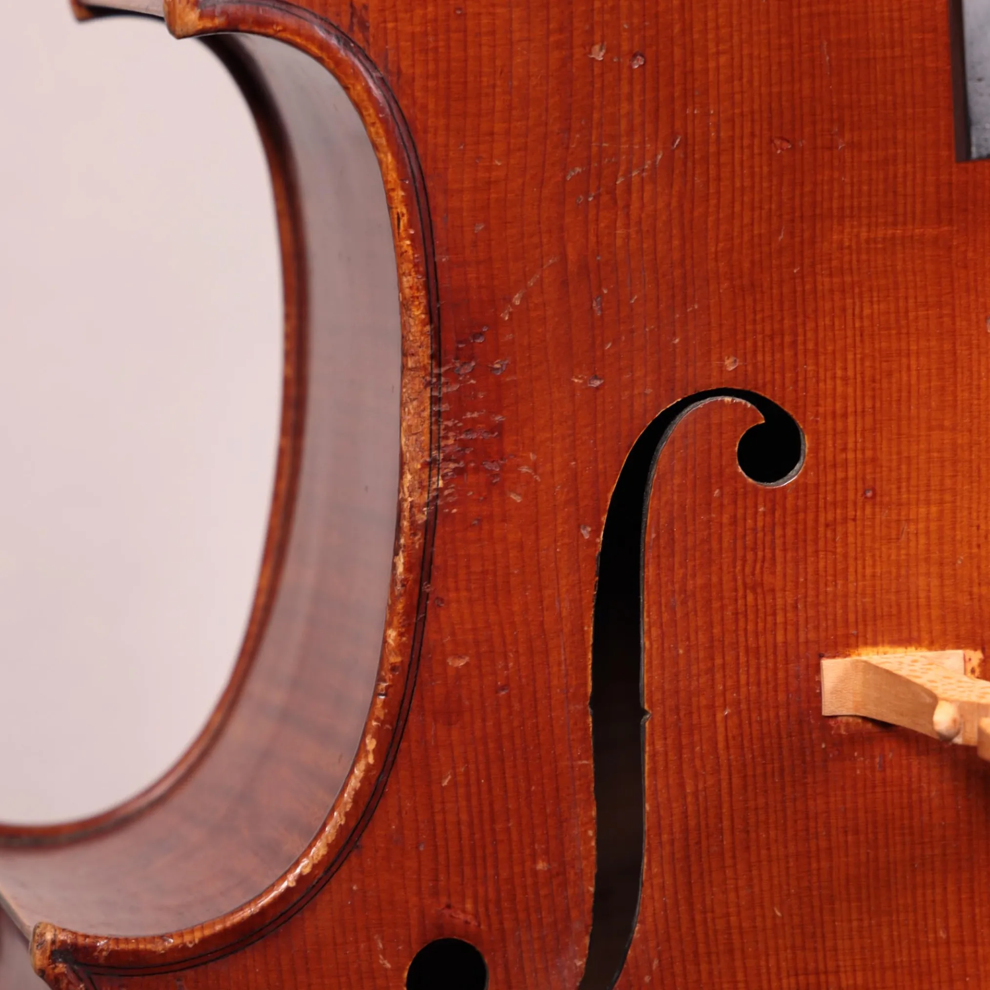 This cello has some signs of wear and tear, but has been fully inspected and comes with our standard Fiddlershop warranty. The instrument recently received a brand new bridge by our head luthier Andres M. Bilva. The instrument can be played in our shop M-F 9-5, or give us a call to learn about setting up an in-home trial.