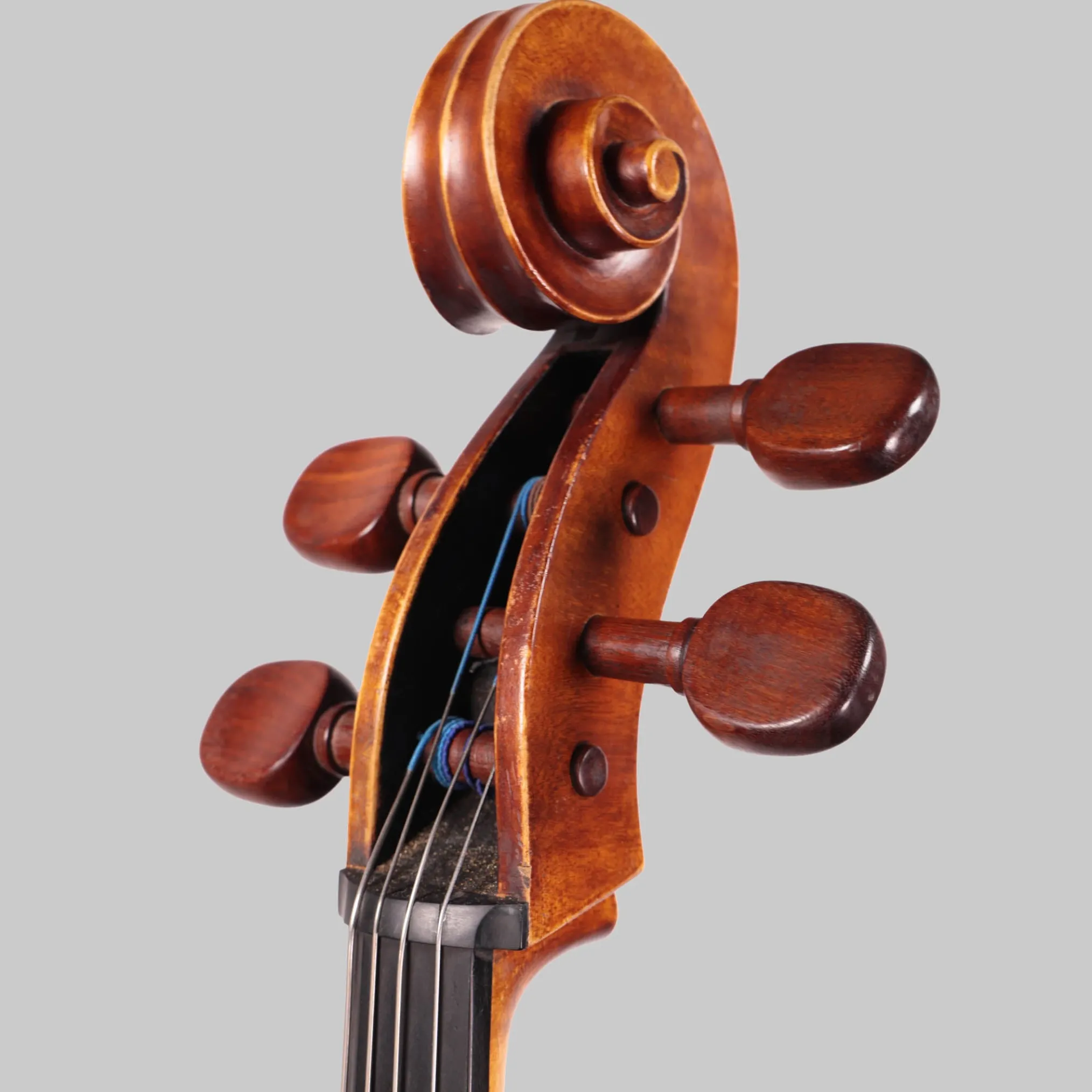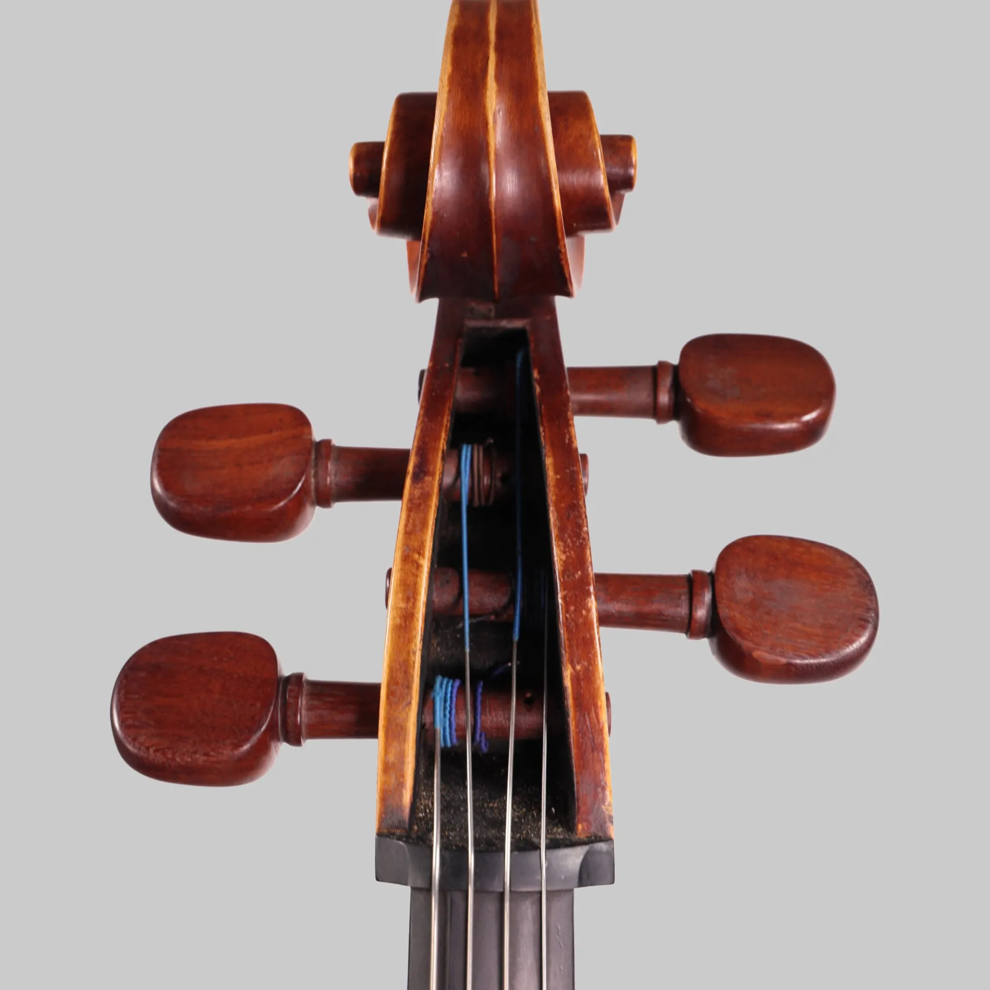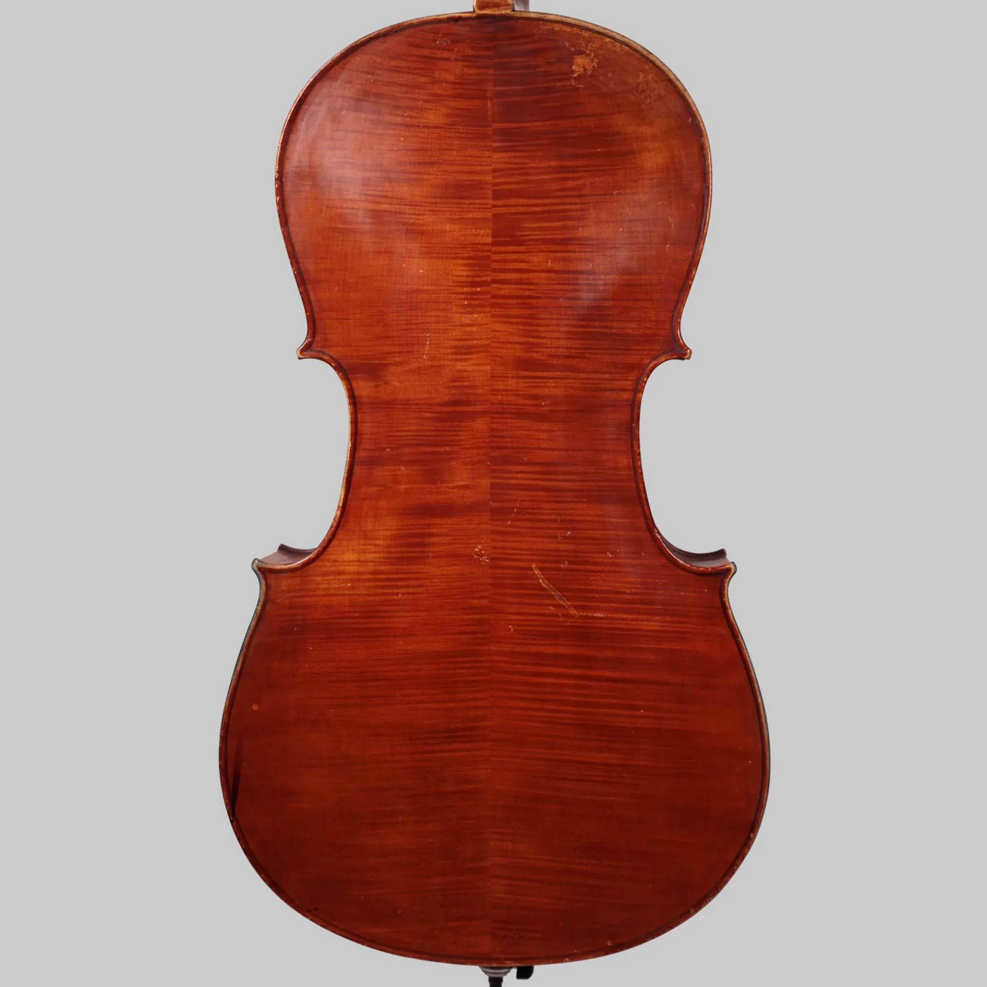 This cello has some signs of wear and tear, but has been fully inspected and comes with our standard Fiddlershop warranty. The instrument recently received a brand new bridge by our head luthier Andres M. Bilva. The instrument can be played in our shop M-F 9-5, or give us a call to learn about setting up an in-home trial.