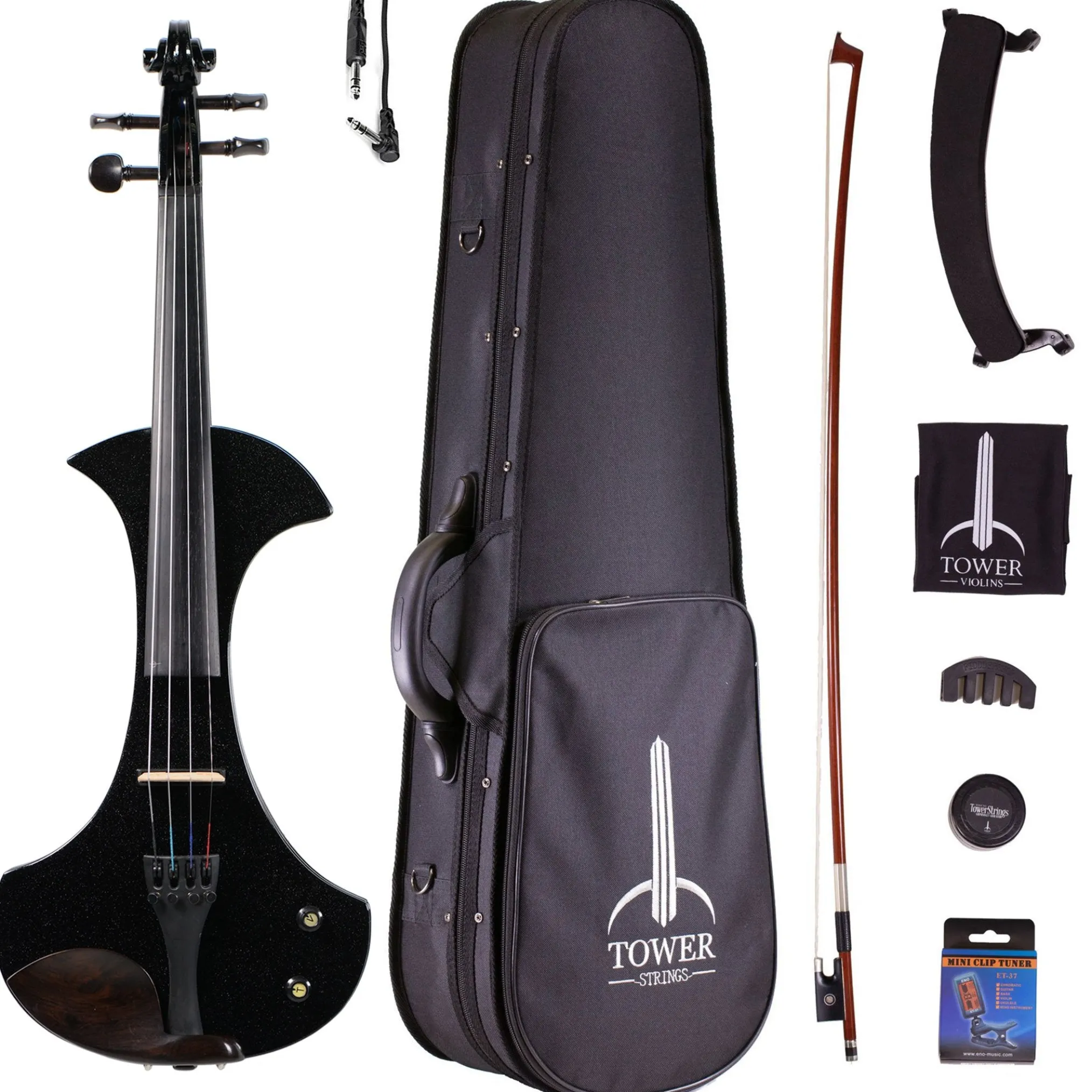 The Tower Strings Electric Pro violin comes with a built-in pre-amp and pickup! The violin also comes with built-in volume and tone control. The Active Pickup is powered by a 9v battery on board (included). This sends a cleaner and more powerful signal than compared to passive pickups.