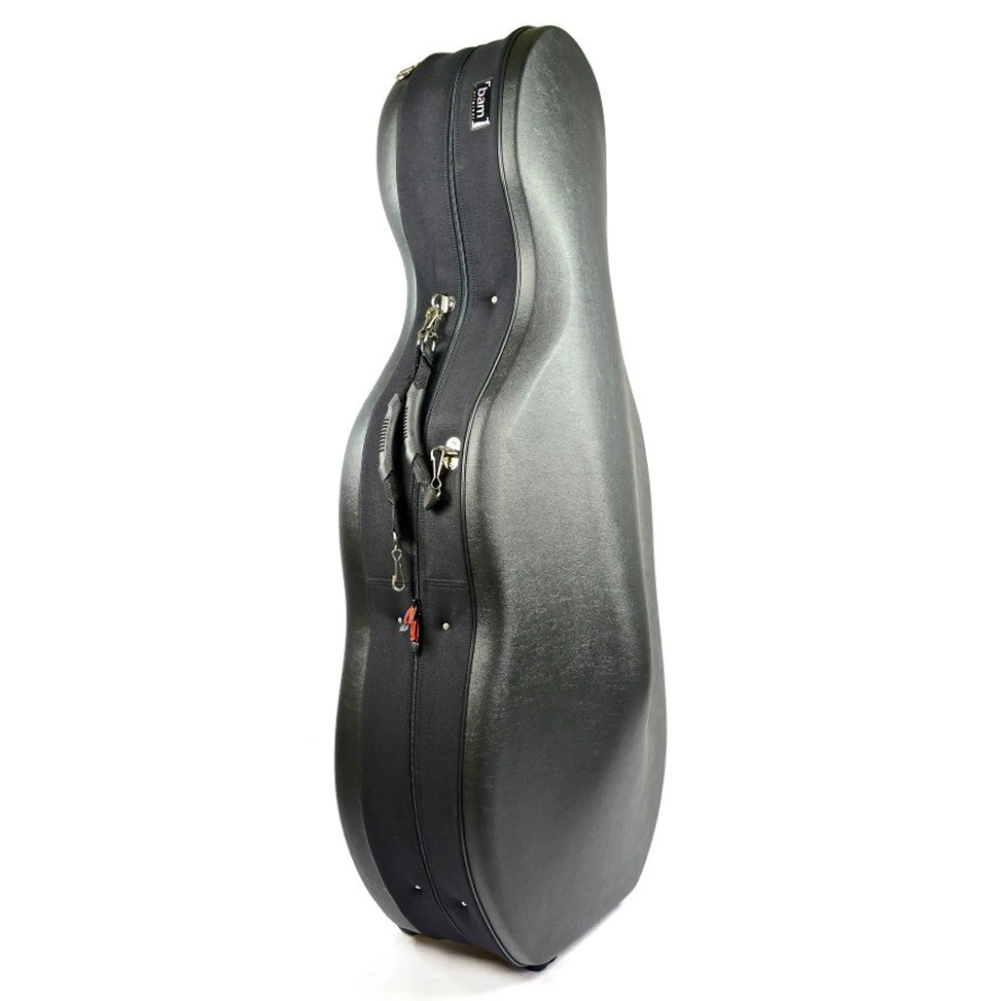 - Extra thick layer of high-density polyurethane foam injected around a mold taking on the shape of the cello case and protecting it against shocks
