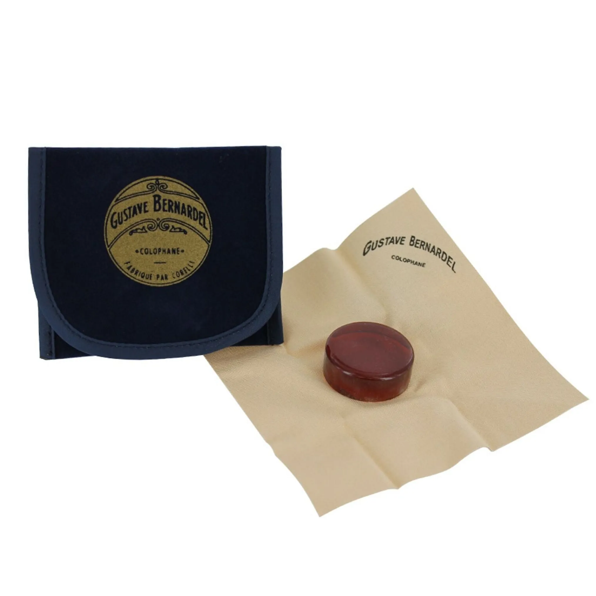 It is great for advanced students to professional players. French-made Gustave Bernardel amber rosin creates a nice, smooth feel on the violin, viola and cello. It is a light colored medium sticky rosin for smooth playing and a clean, bright tone. It comes in a round cake attached to a protective suedette cloth in a velvety material pouch.