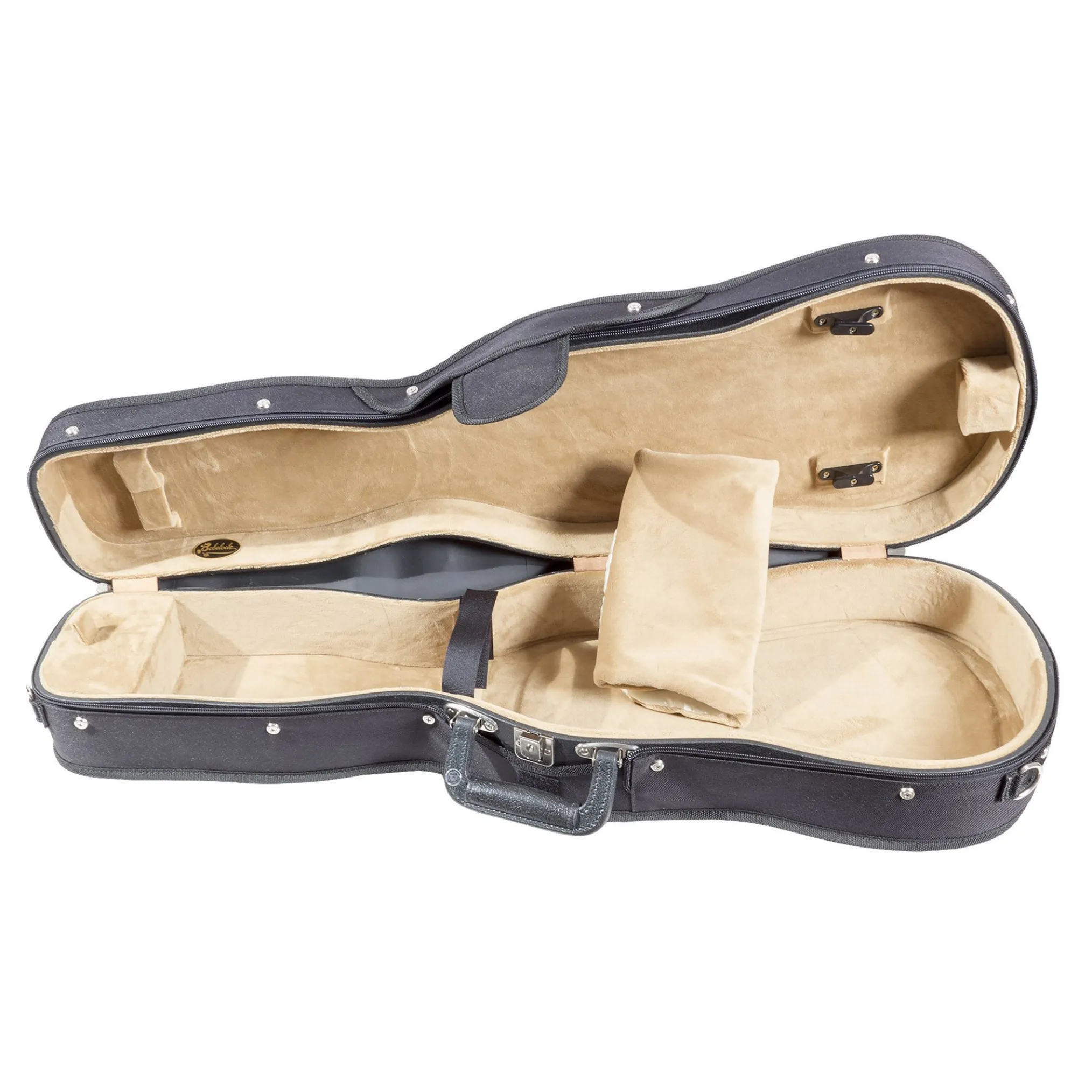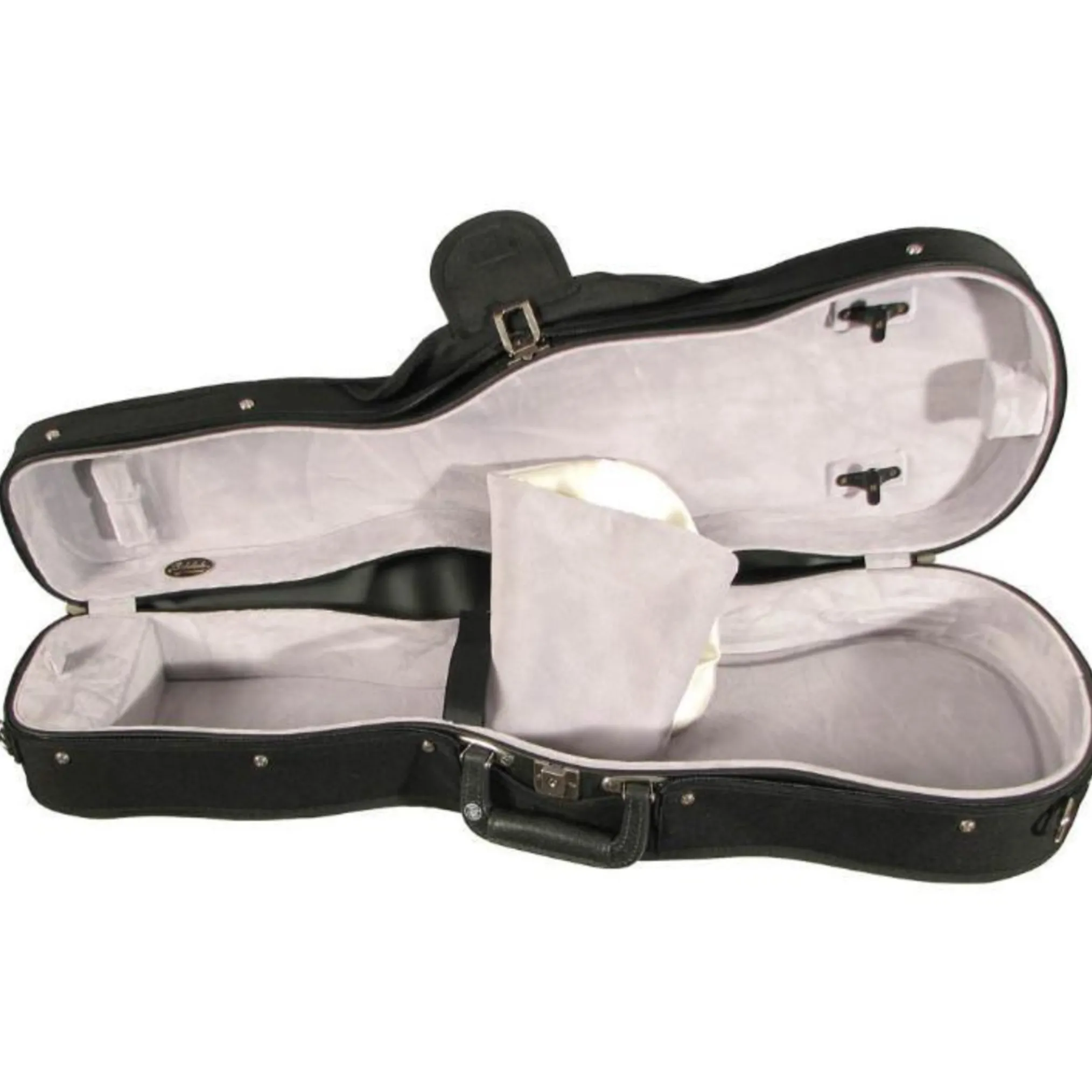 - Built using a five-layered plywood case construction, the B2001 violin case is covered with a durable black nylon canvas zippered cover with a small outside accessory pocket.