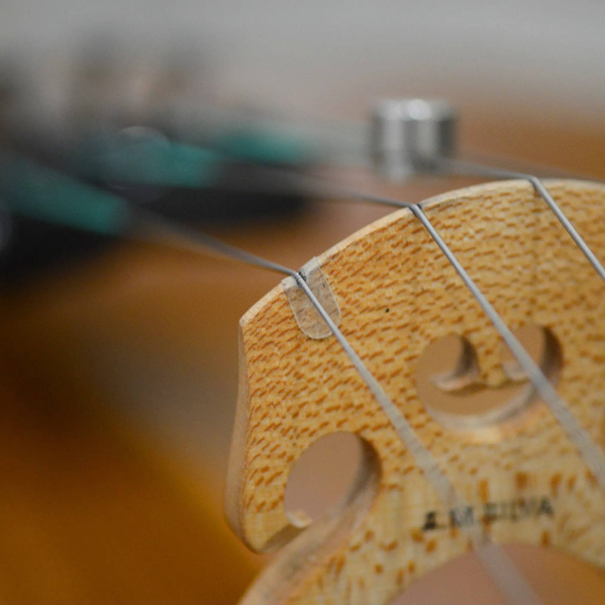 Cello bridge parchment / string protector made of genuine leather. Each parchment measures 15 mm x 6 mm and protects your cellobridge from the A-string.