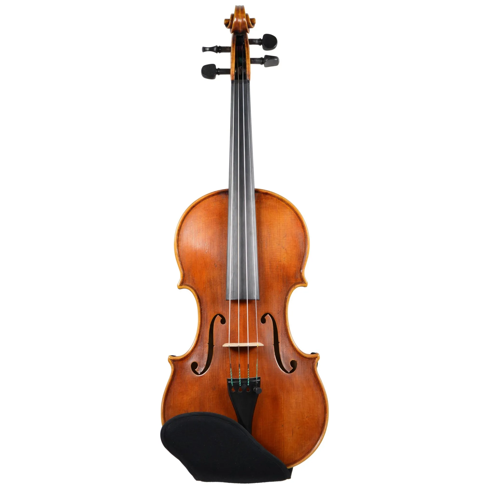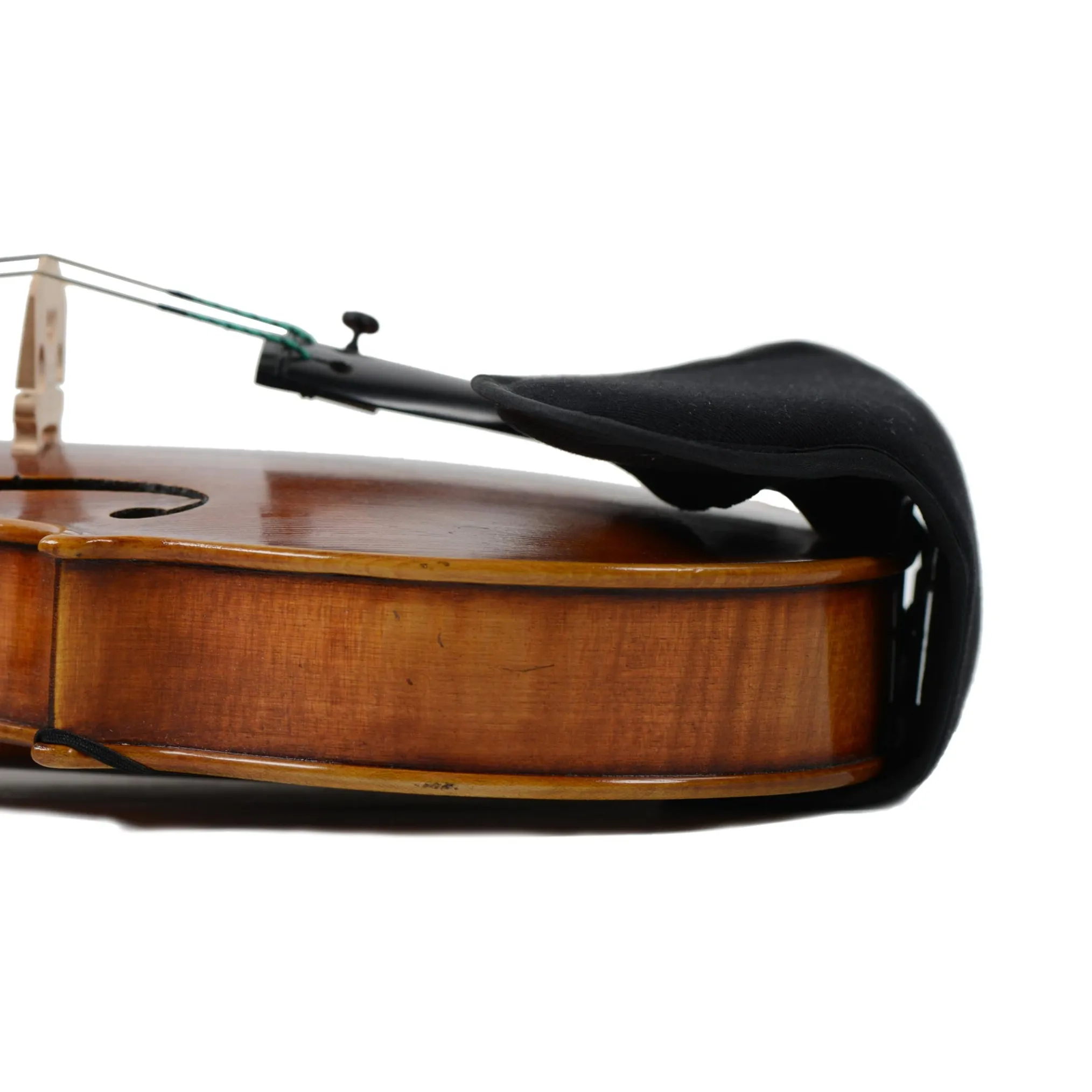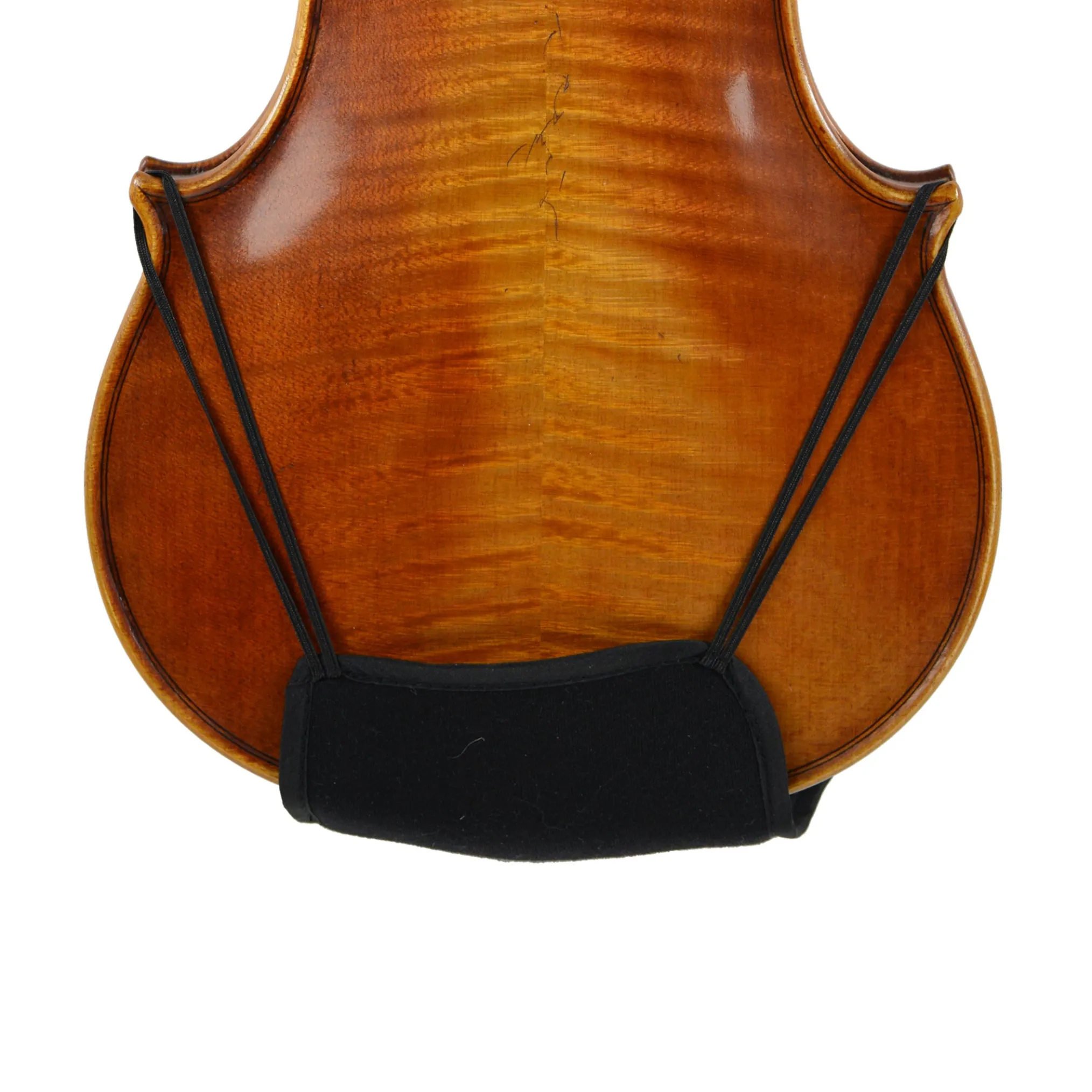 It’s designed for the Guarneri Style Chinrest (and also fits the Zitsman and Varga chinrests). It has a pocketwhich hooks over the chinrest, covers the chinrest barrels, and lies comfortably under the “shoulder” area. Elastic bands secure the coverto the back of the violin.