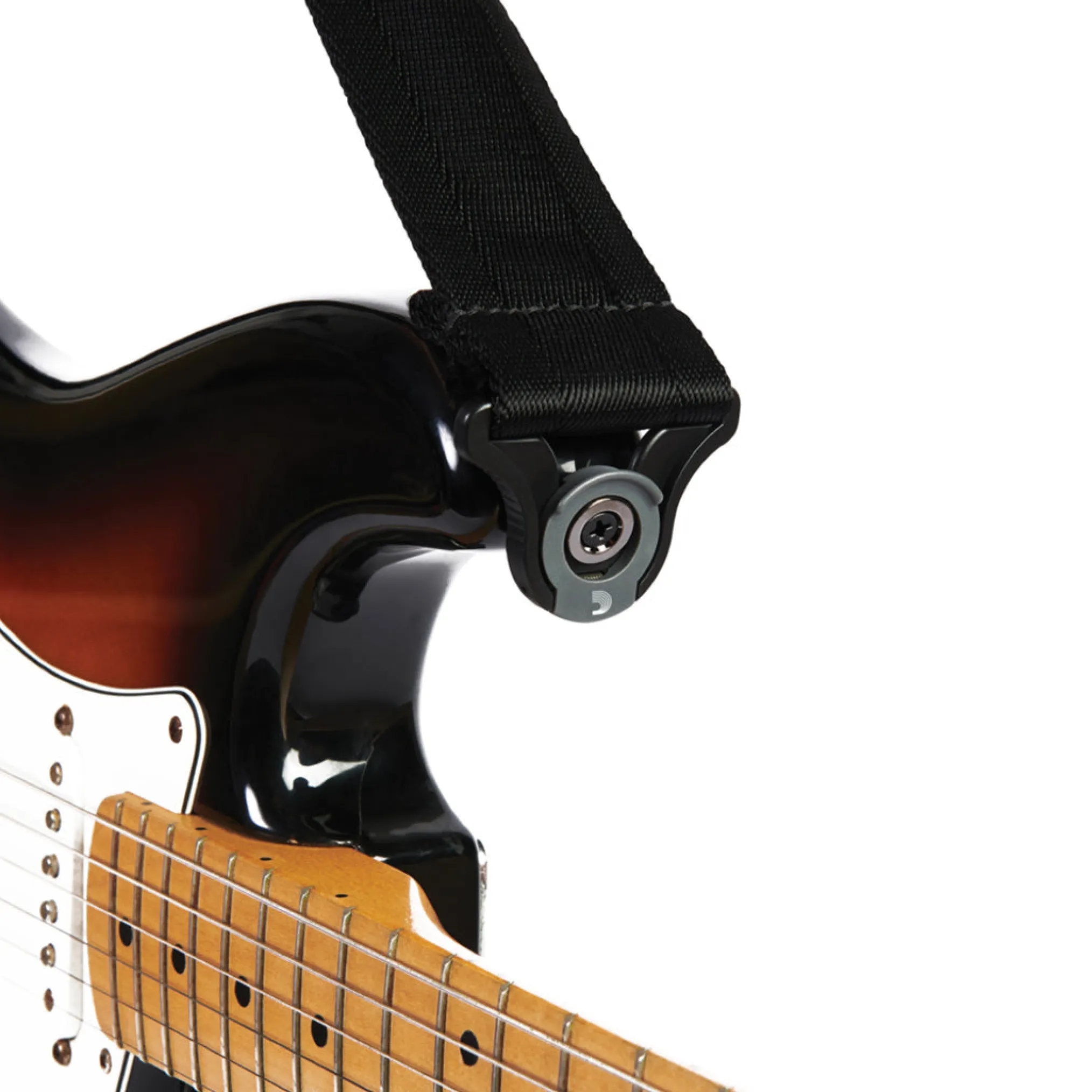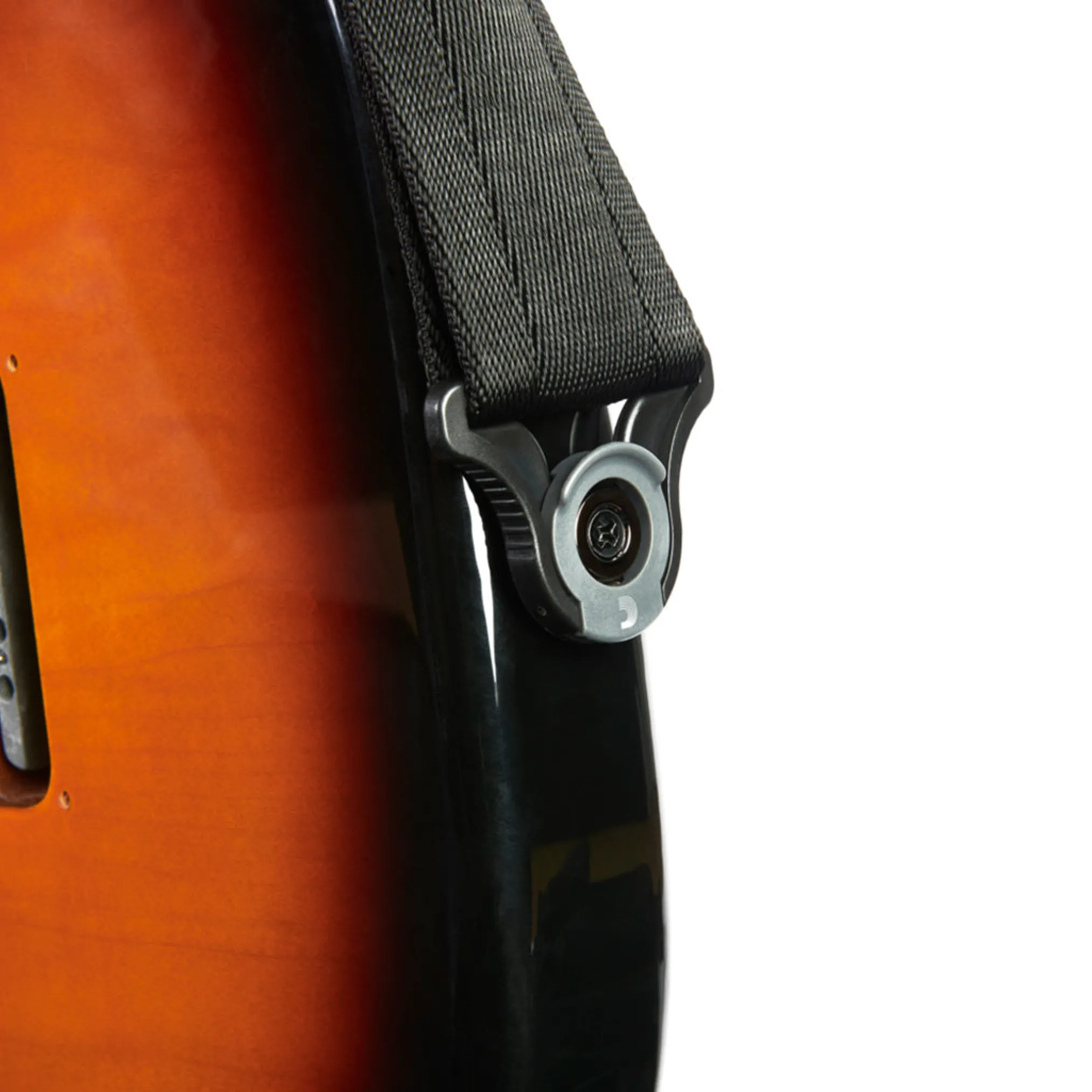 The D’Addario Auto Lock Guitar Strap is a simple integrative strap locking system built for your performance. The latch is spring-loaded, so it automatically clamps down on the strap button and will not release unless desired.