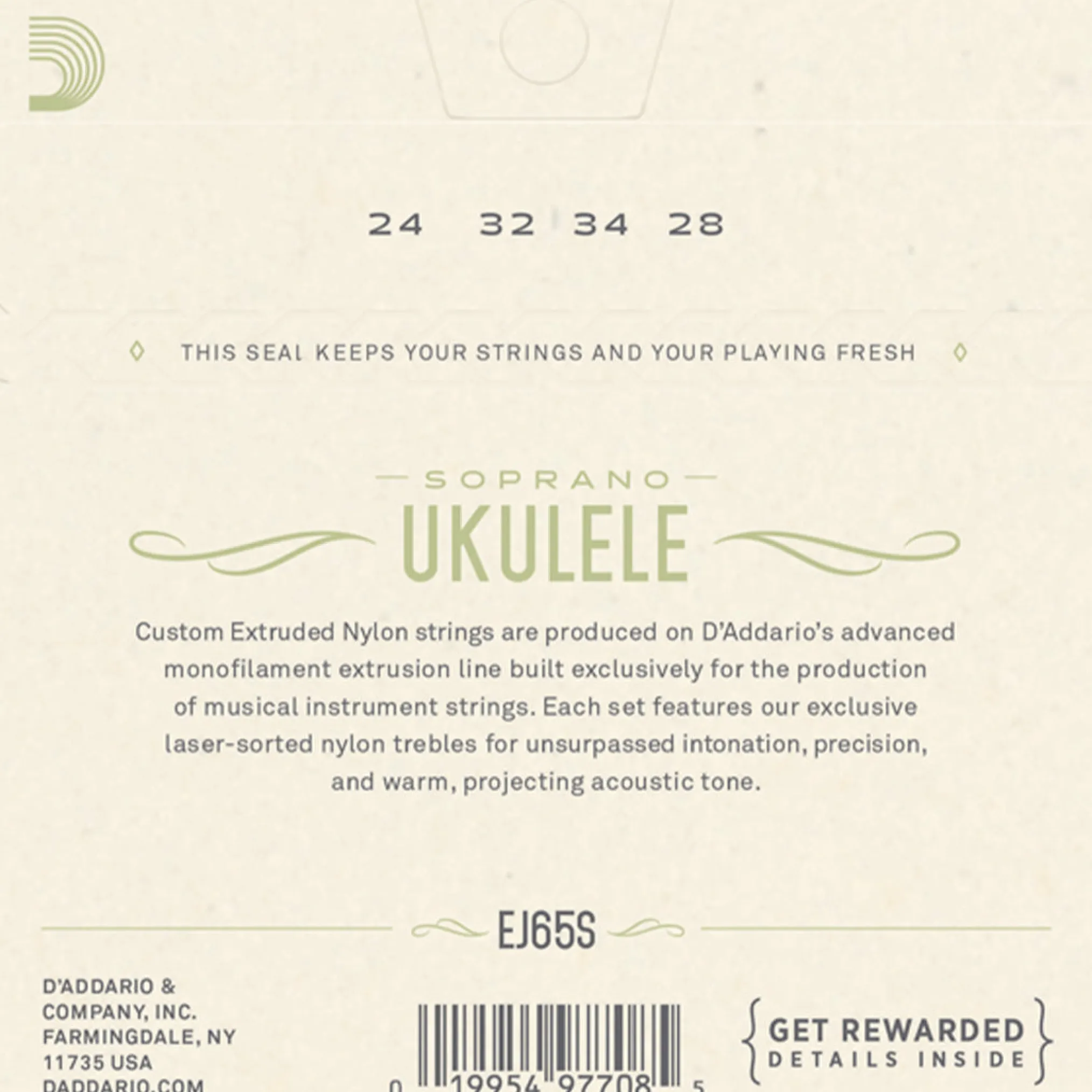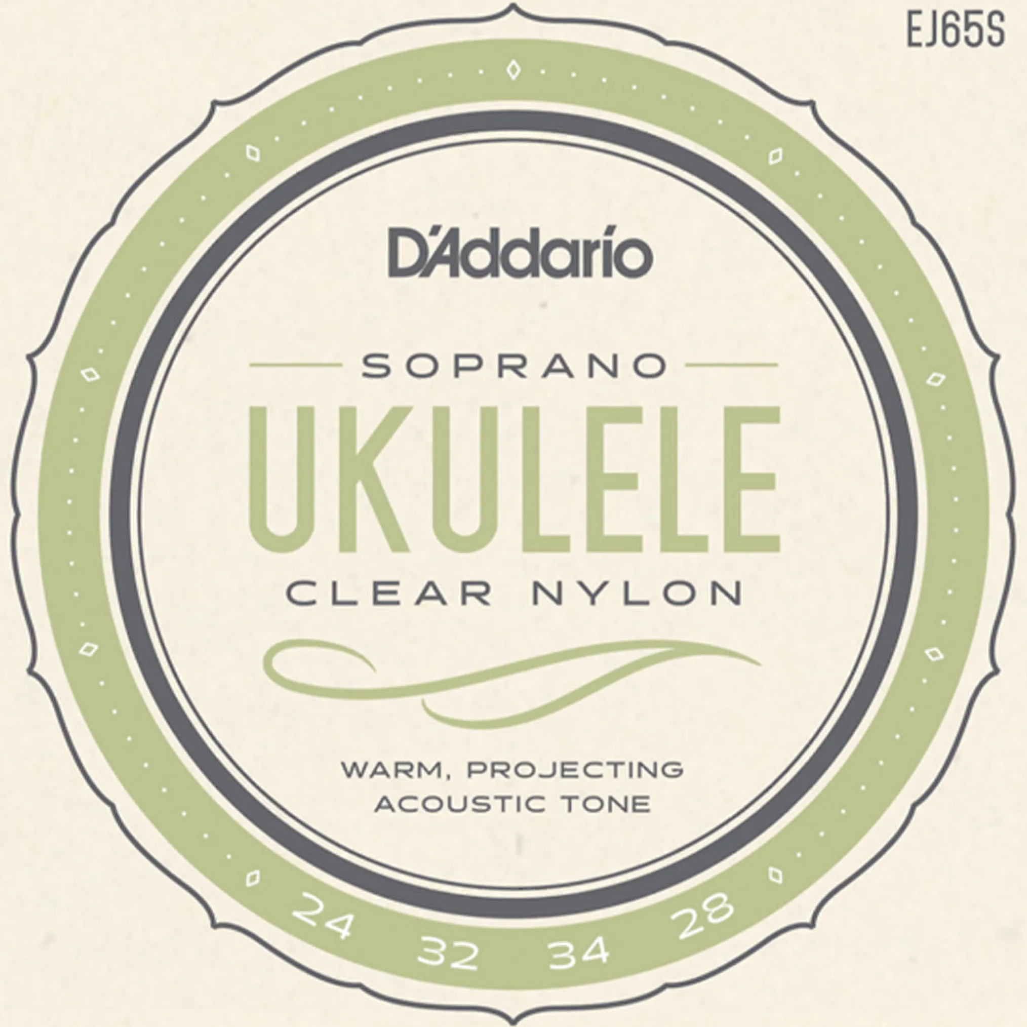 EJ65S is a string set for a soprano ukulele, utilizing Pro-Arté Nylon trebles. Pro-Arté Custom Extruded Nylon sets the standard in terms of ukulele tone, intonation, and dynamic response.