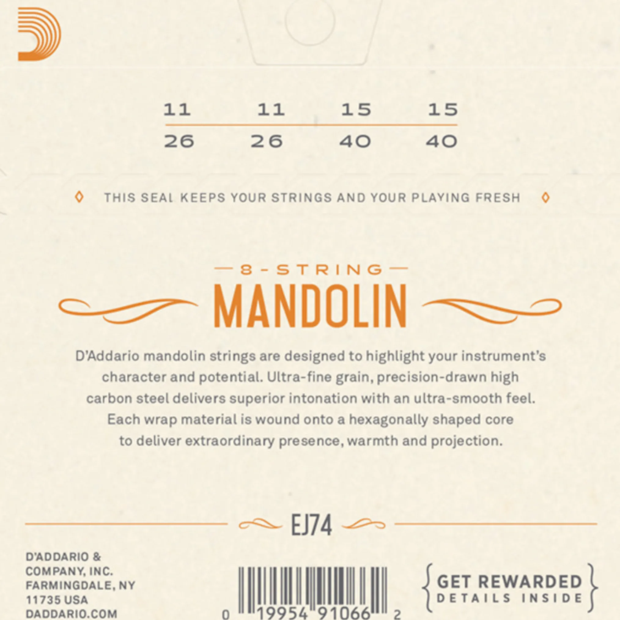 EJ74 is the world’s most popular Phosphor Bronze mandolin set. Since D’Addario introduced Phosphor Bronze guitar strings in 1974, they have been synonymous with warm and well-balanced acoustic tones.