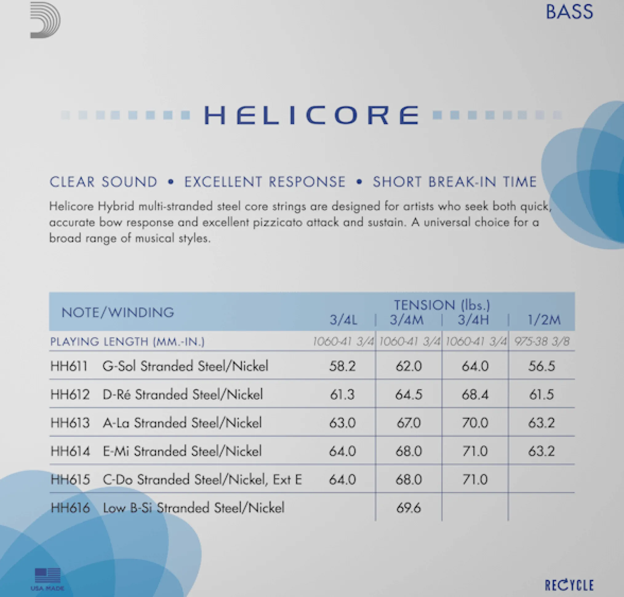 Helicore Hybrid bass strings are multi-stranded steel core strings that produce a moderately warm tone. The groundbreaking core design makes for strings that are easy to play. Damping is optimized to create a balance between pizzicato sustain and bow response, allowing performance across many playing styles–from symphonic to jazz or bluegrass.