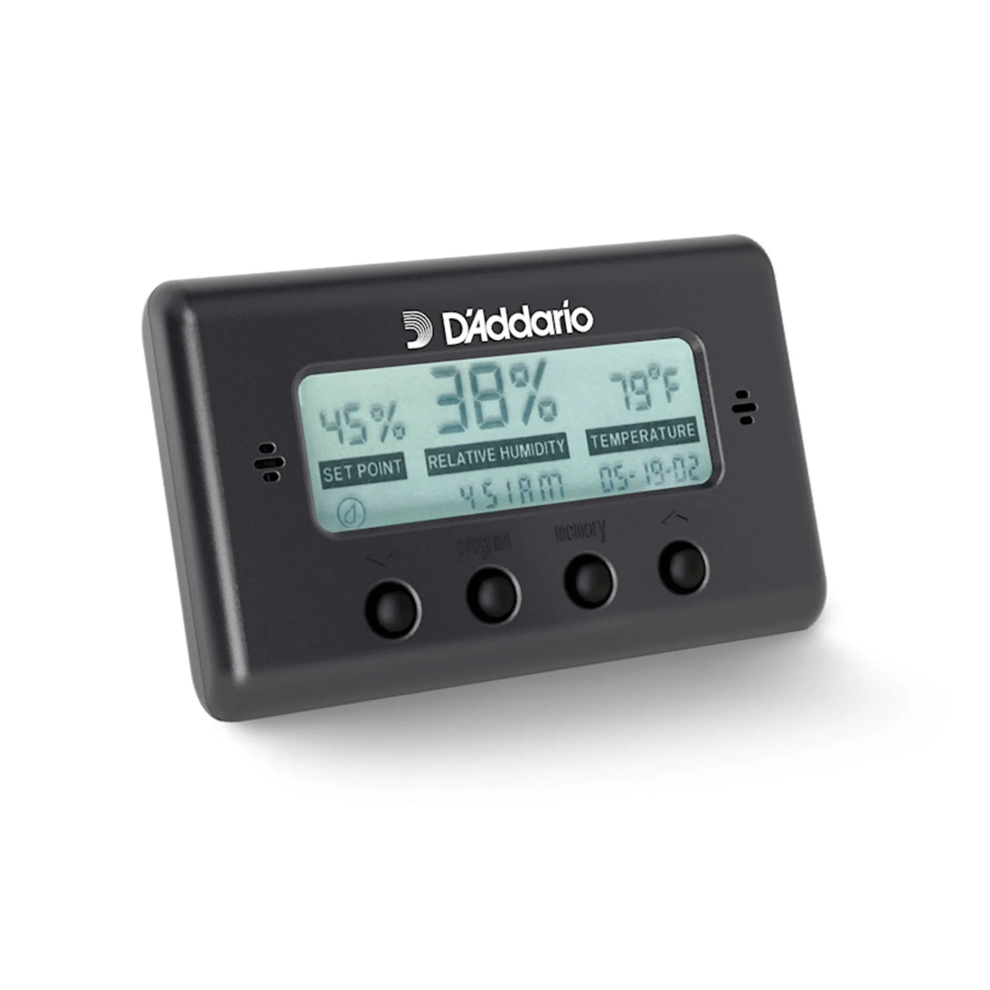 The D’Addario Humidity & Temperature Sensor is a precision-designed hygrometer that digitally indicates accurate relative humidity levels ranging from low (under 20%) to 99%. Temperature is displayed in either Fahrenheit or Centigrade, ranging from -32°F to 122°F (-35°C to 50°C). The HTS includes a programmable set point, as well as a memory feature that indicates date/time of the highest & lowest temperature/humidity levels the instrument has been exposed to. An essential tool to monitor your instrument’s environment.