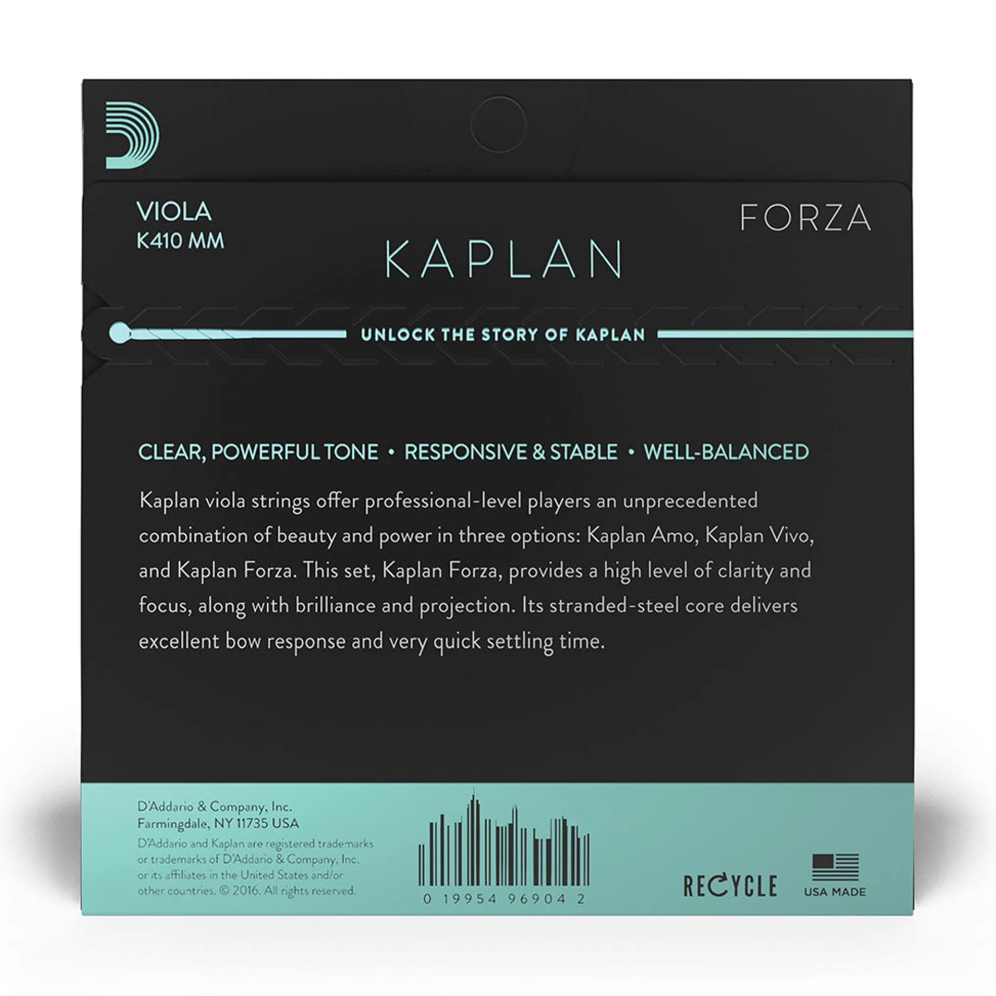 Kaplan Forza viola strings are aimed at the most discerning professional musicians, offering the beautiful, rich tonal palette and superb bowing response characteristic of the Kaplan line. Kaplan Forza viola strings provide clarity, warmth, and versatility throughout the dynamic spectrum, allowing professional players the control, expression, and worry-free playing experience they demand.