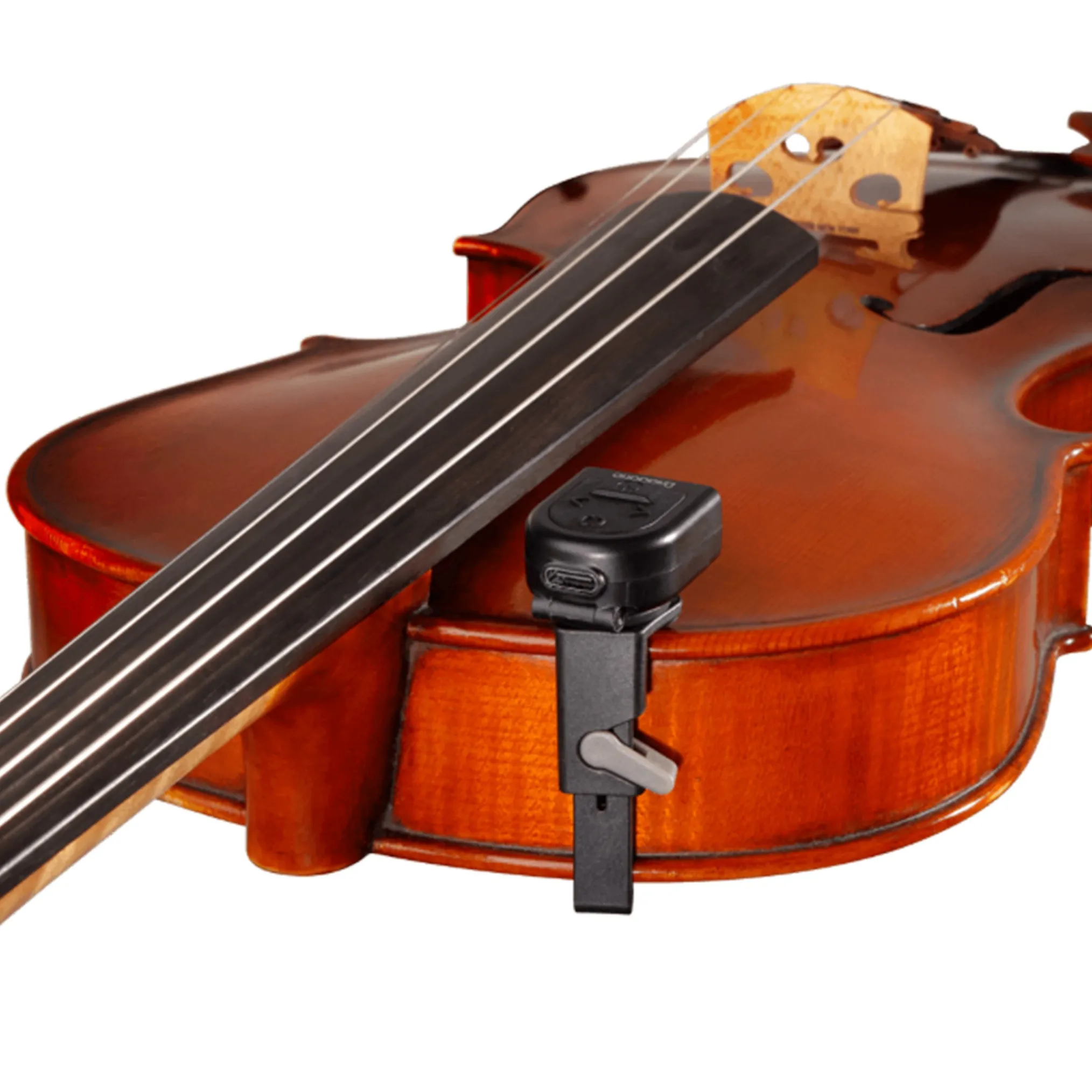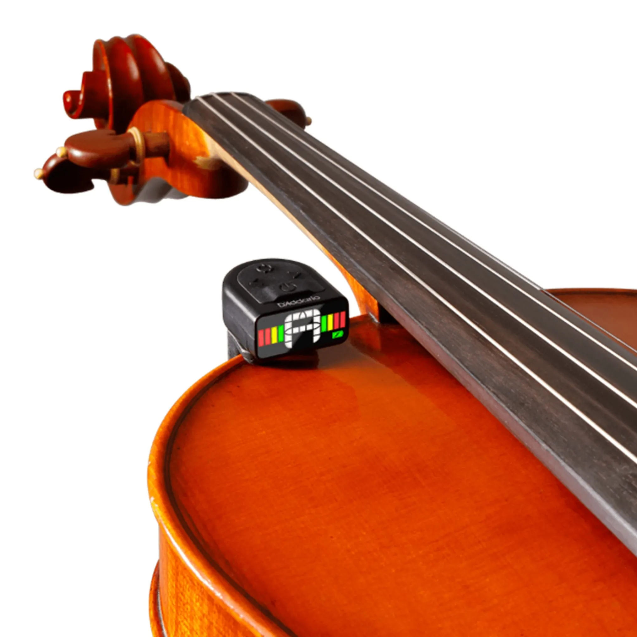 The Micro Rechargeable Viola Tuner is the sleekest, most efficient way to tune your instrument. It features an easy-to-read, multi-color display in an attractive compact design and is fully rechargeable with the included USB-C cable. A non-marring, lever-lock clamp holds the violin tuner securely to the instrument, while still allowing easy application and removal. This precision violin tuner is not only perfect for tuning, but the unique mounting system and fast pitch response allow it to be used as an effective practice tool for referencing and improving intonation while playing.