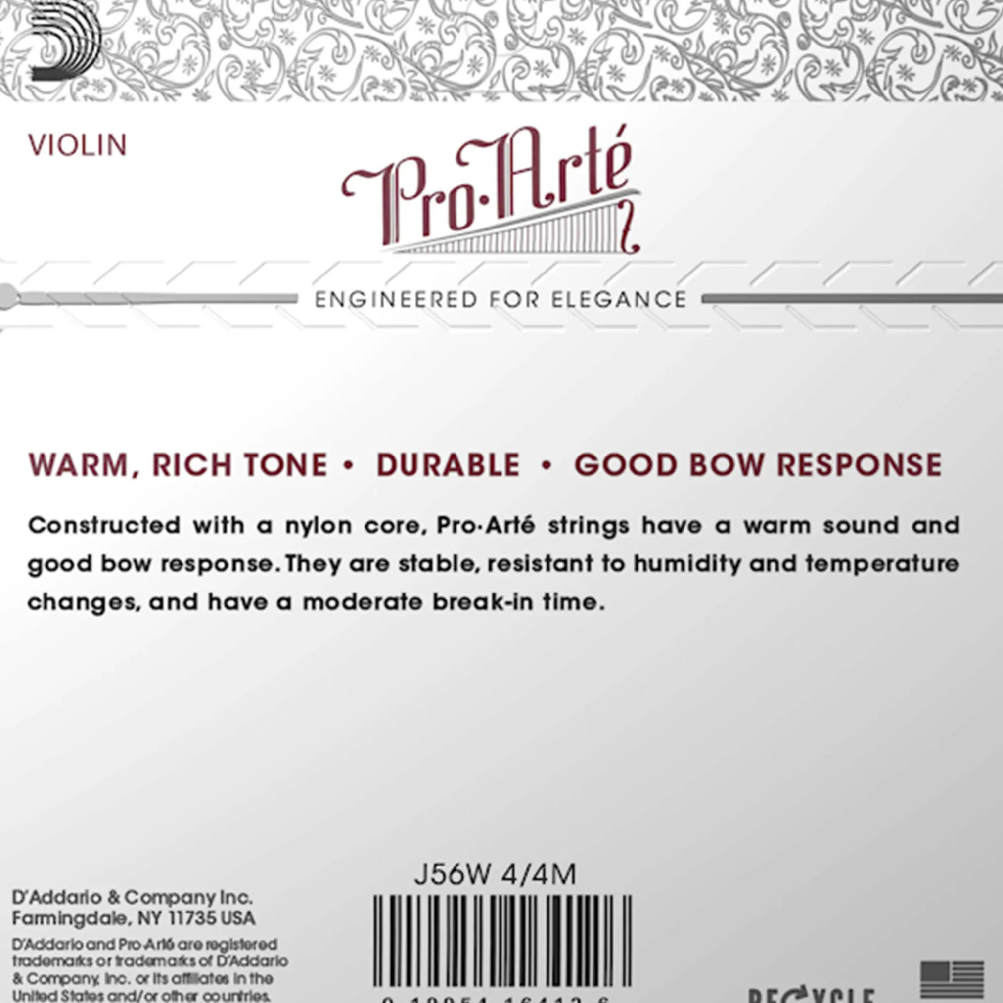 Pro-Arte synthetic core violin strings have a warm, mellow tone. They are less sensitive to humidity and temperature changes, and break in quickly. Pro-Arte strings are manufactured at a lower tension in order to maximize bow response, tonal blend and playability. The perfect choice for players seeking a warm, dark tone.