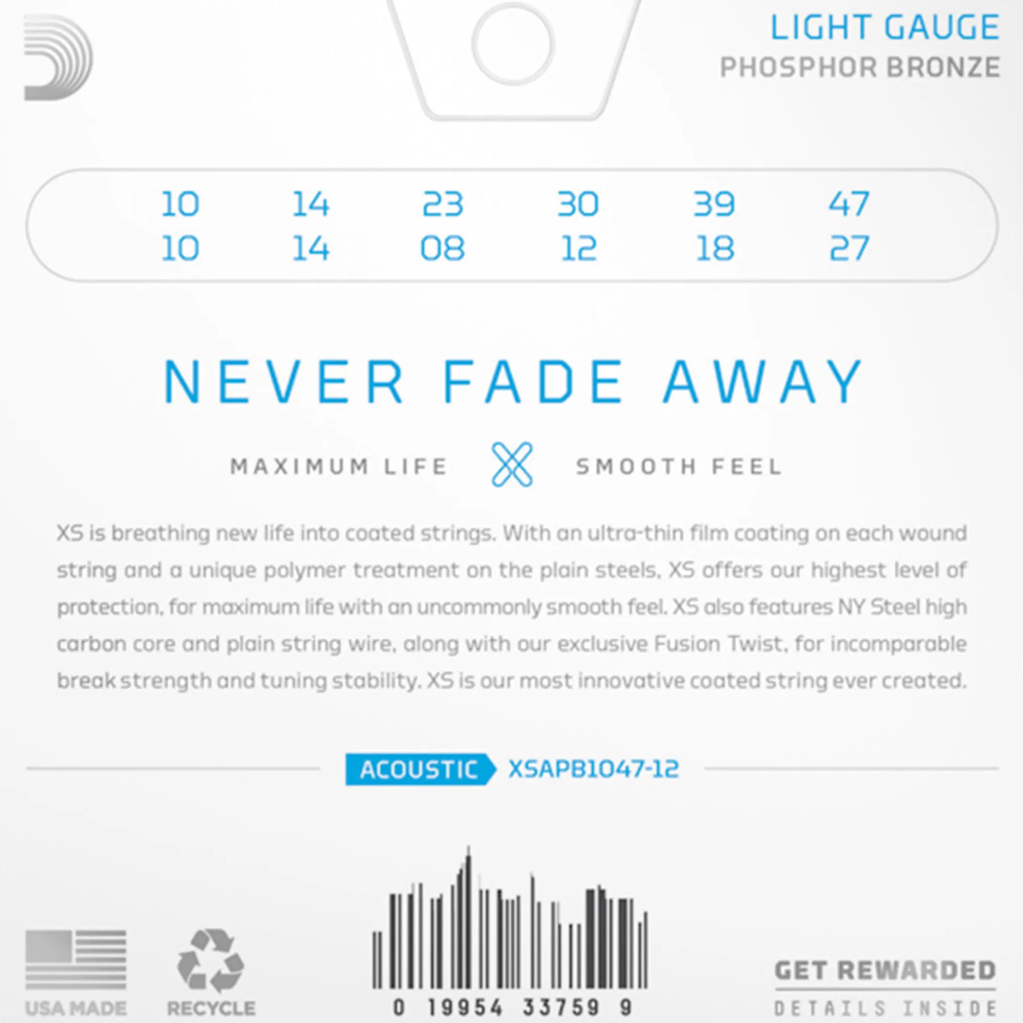Born from our greatest breakthrough in string innovation, XS Phosphor Bronze strings have the longest life of any D’Addario acoustic guitar string.