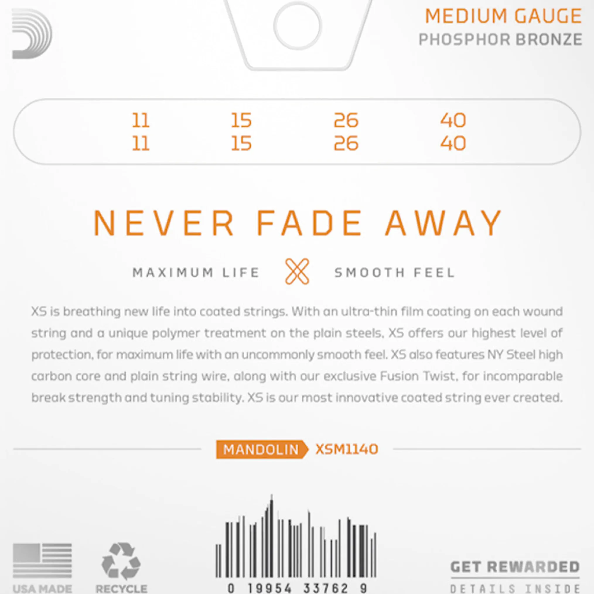 D’Addario XS Mandolin Phosphor Bronze combines our most popular acoustic alloy with our most advanced string coating technology, resulting in a clear tone,smooth feel, and superior tuning stability — all with the longest possible string life. Available in Phosphor Bronze for Mandolin in medium gauge.
