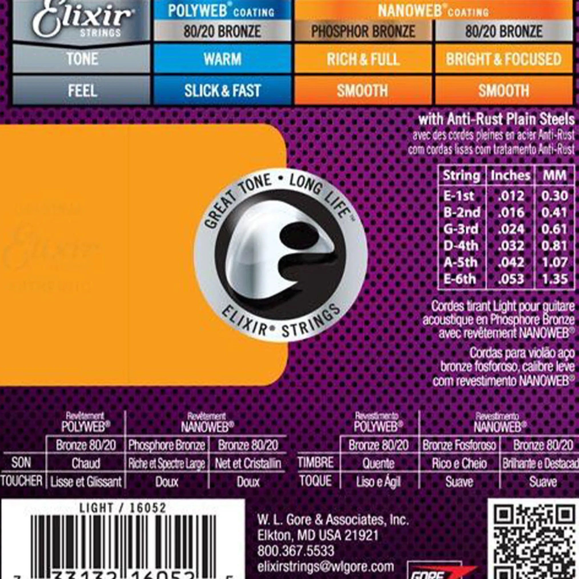 Elixir® Strings Acoustic Phosphor Bronze with NANOWEB® Coating delivers distinctive phosphor bronze warmth and sparkle together with extended tone life.
