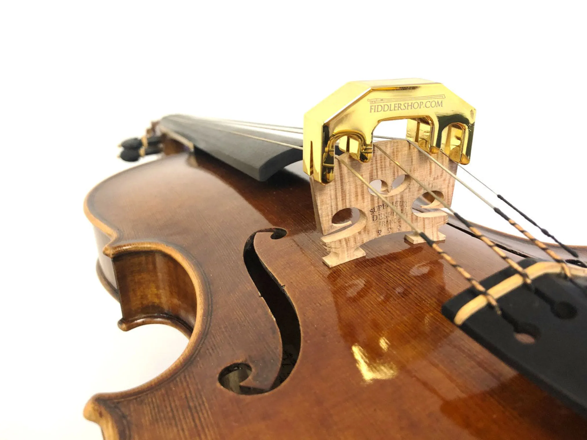 Brass Practice Mute for Violin. This is our most “extreme” option for muting your violin! This is to be used when maximum muting is necessary. The legs of the metal mute dampen the vibrations of the bridge and significantly reduce the volume.