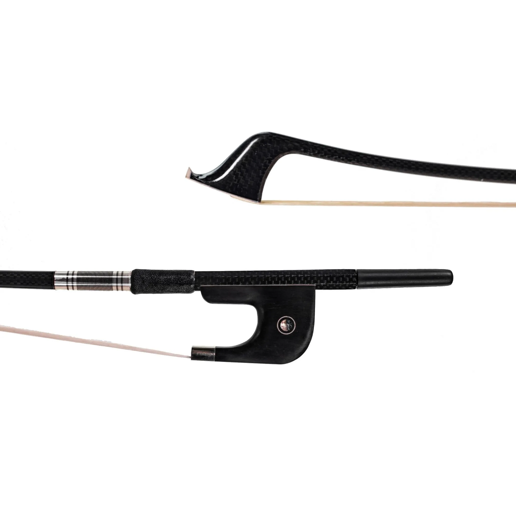 This Braided Fiddlerman Carbon Fiber Double Bass Bow is manufactured to replicate the perfect weight and curve of an expensive Pernambuco wood bow. Anything short of a quality wood bow will most likely not give you the right weight distribution or curve and playability.