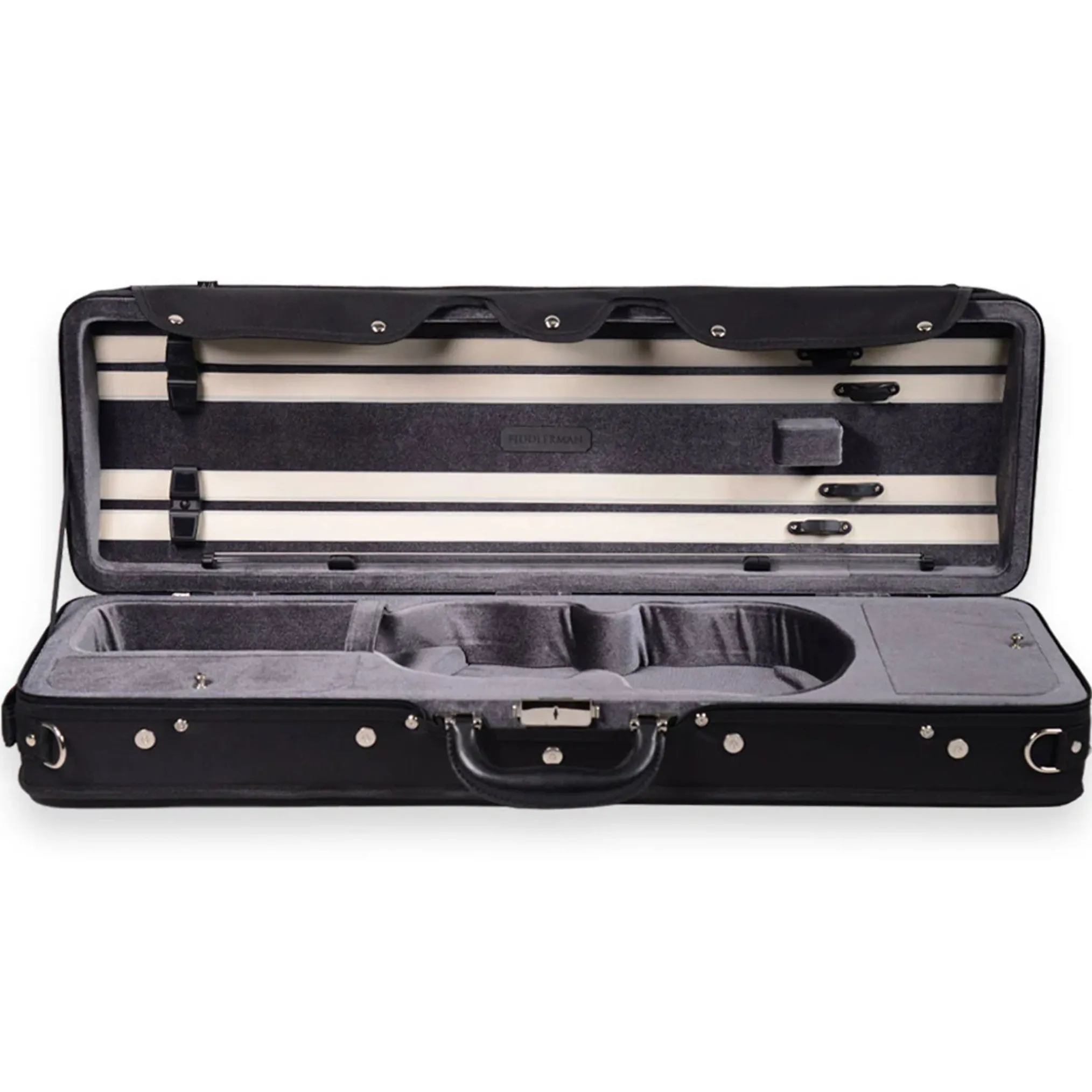 The Fiddlerman FC50 Violin Violin Case is a proven favorite in the Fiddlerman line. This student case was previouslyonly sold with our Artist and Master violins. Now we’ve made it available to be purchased by itself. This lightweight oblong violin case has a pressure foam shell featuring full suspension,ensuring yourviolin is safely cushionedwithin the case.
