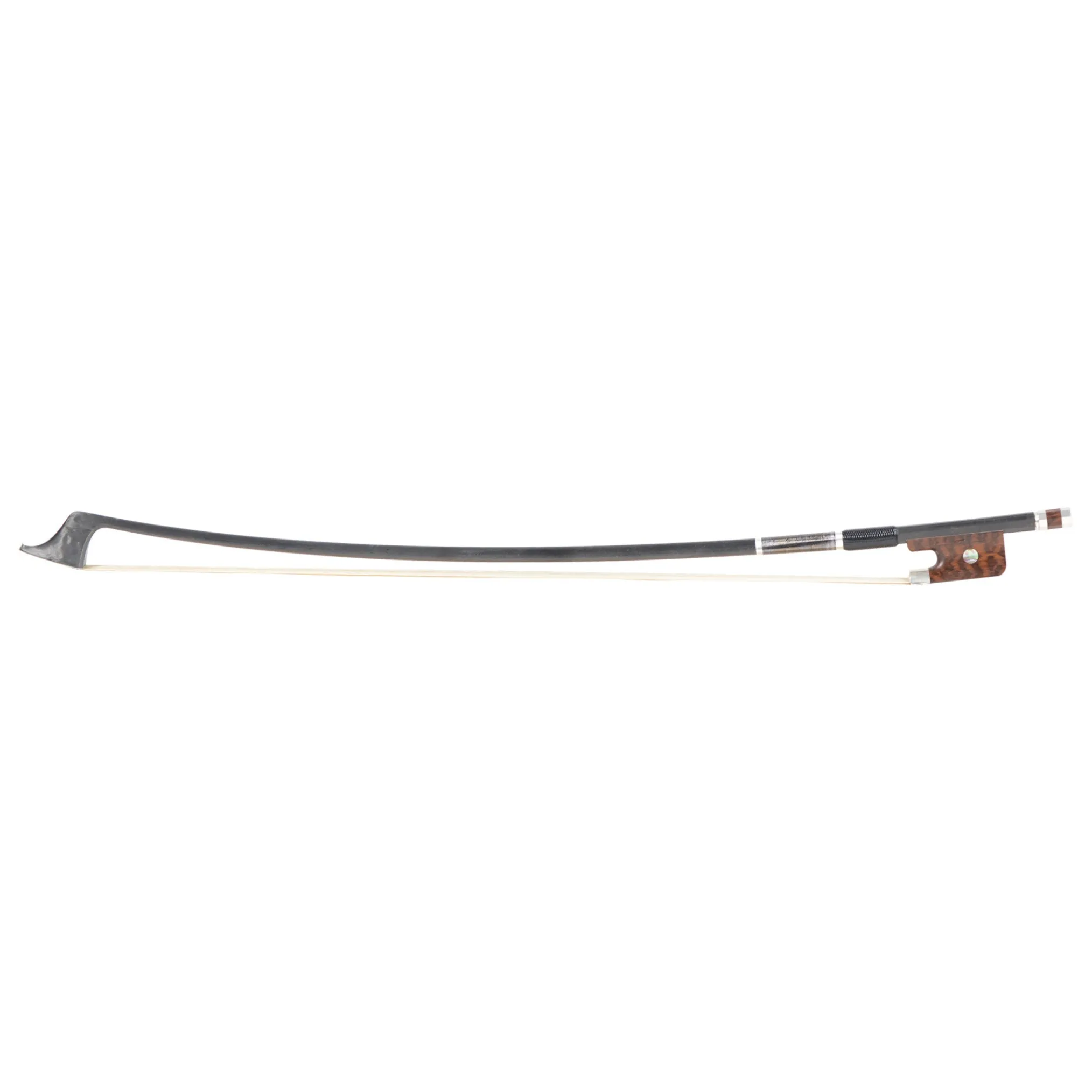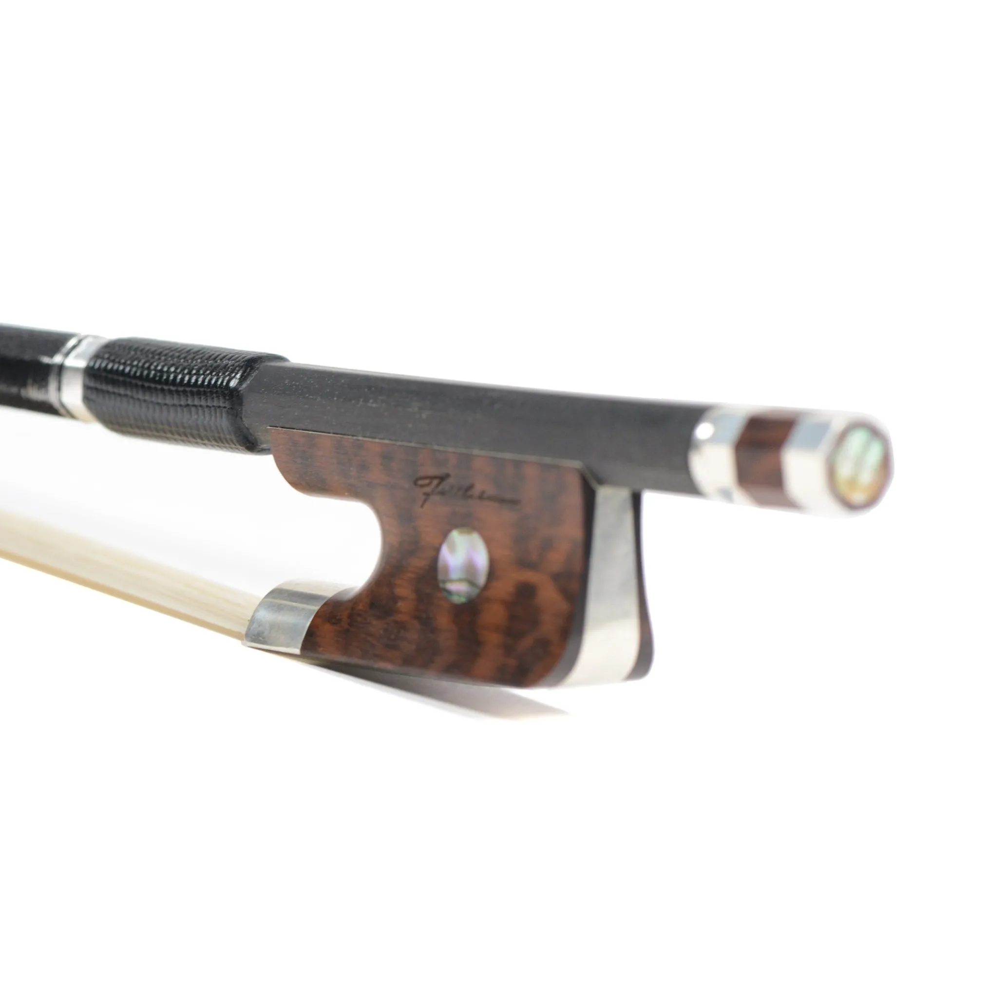 Fiddlerman Pro Series FrenchStyle Double Bass Bowis crafted from high-tech carbon fiber and fitted with sterling silver and snakewood details. The sound is brilliant, open, and clear. The bow is exceptionally lightweight, ca 119 gram, which allows it to be agile and lightning-fast. The bow has a rather firm stick and a fantastic bounce, yet it’s very well balanced.