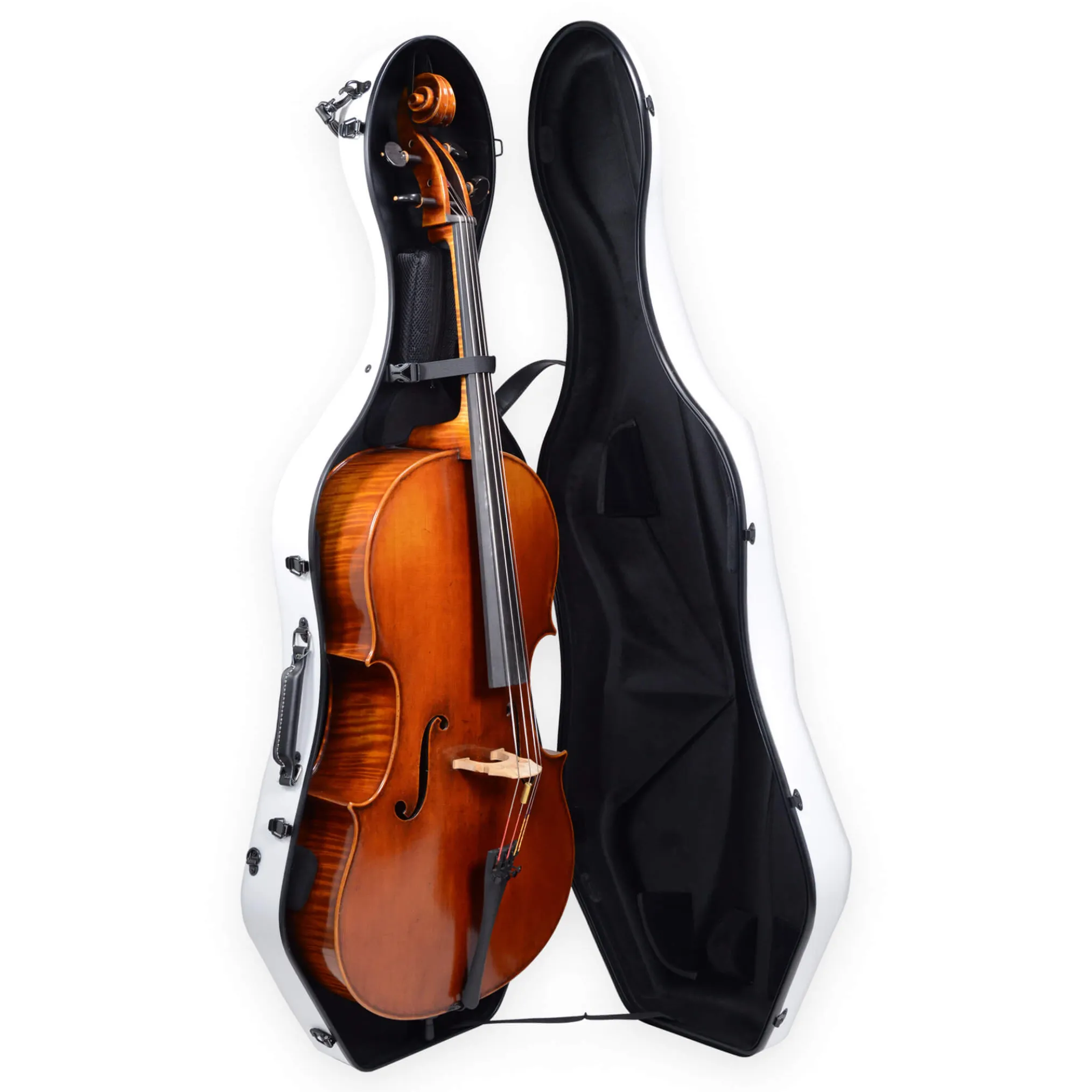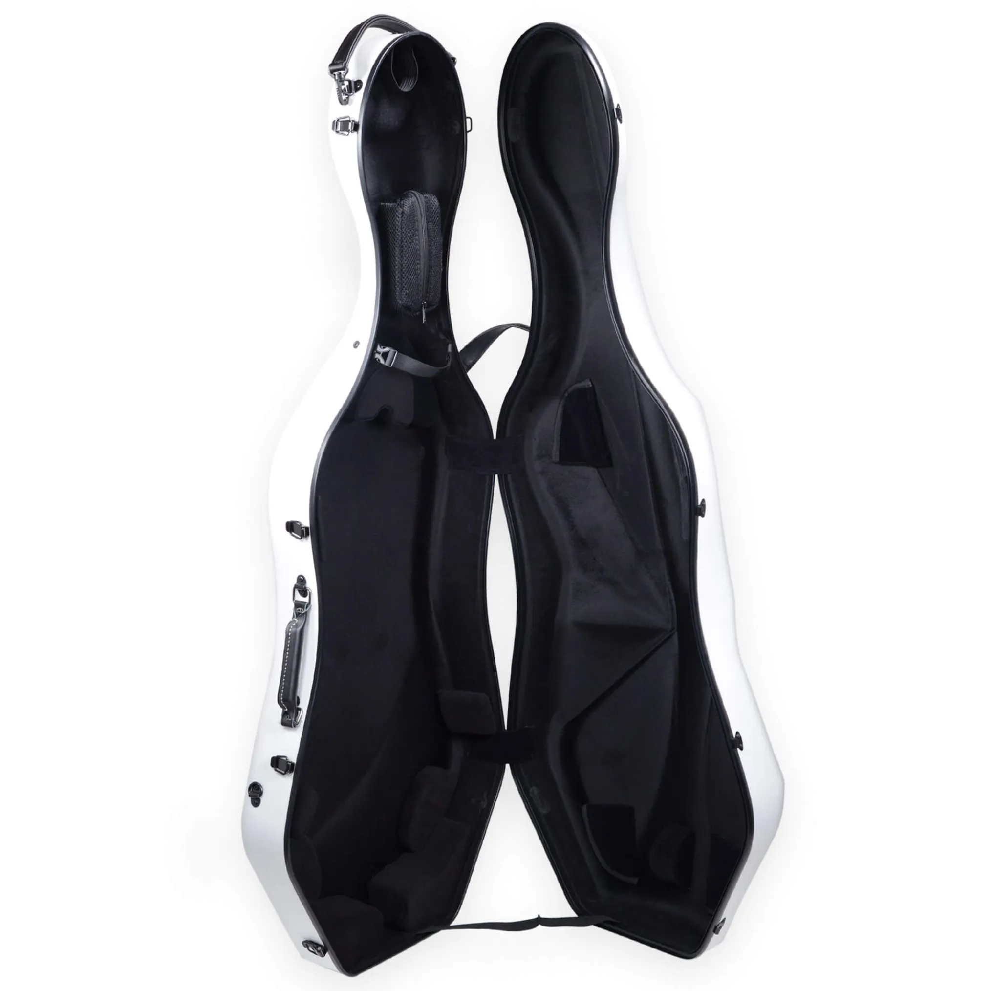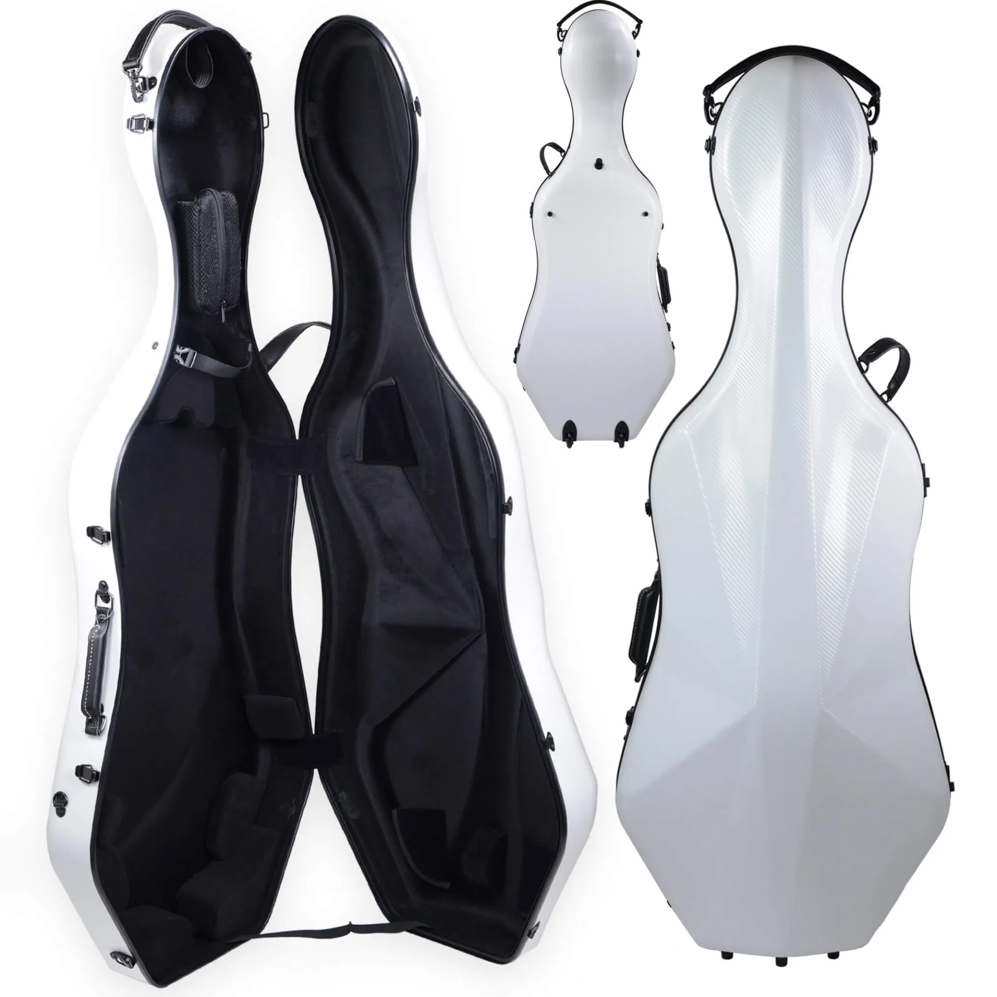 This new Fiddlerman Weave Cello Case FC1300 is a lightweight, compact, and very durablecase! It is a shaped case with all the features one can expect from a premium case – pressure resistant weave shell, adjustable Velcro suspension cushions, and comfortable backpack straps. The case comes with a detachable accessory pocket that will fit your rosin, endpin stop, and other smaller accessories.