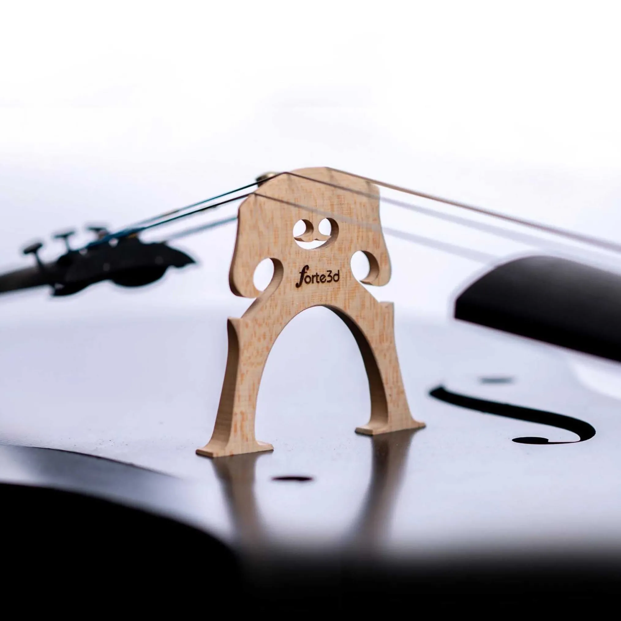 Forte3D™ recognized the opportunity for offering cellists a customizable instrument that still produces the same beautiful music. Never before has it been possible for acellist to adjust the height of their strings without the expensive help of a luthier to cut a new bridge. All you have to do is completely lower the string tension, turn the screw, and your strings are now at thedesired height. Each cello is shipped with an Allen wrench for ultimate convenience.