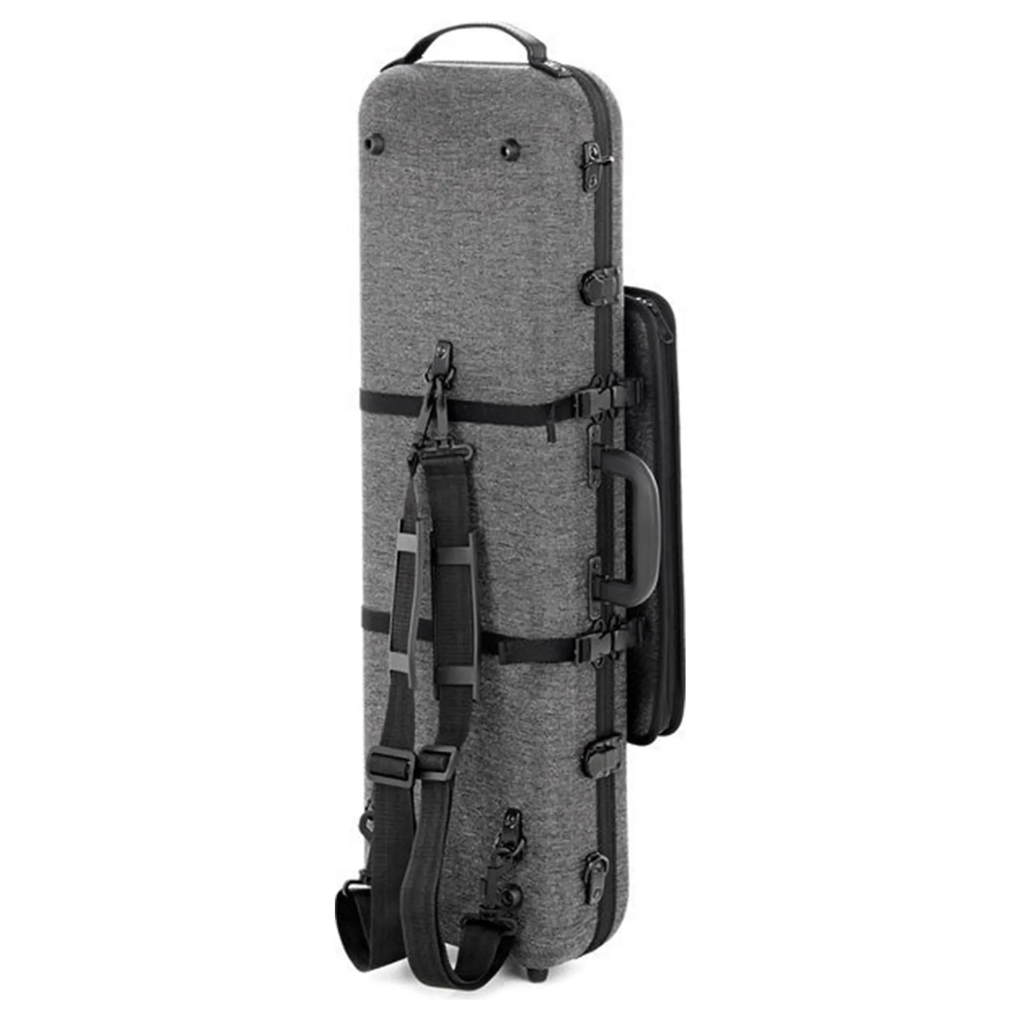 The Gewa Bios Oblong violin case is a full-size violin case made with a renewable resource – organic flax fiber. It is formed into sheets that are pressed with high forces and steam into a mold. It has medium torsional strength, is lightweight, has good insulation properties, and offers medium puncture/impact protection.
