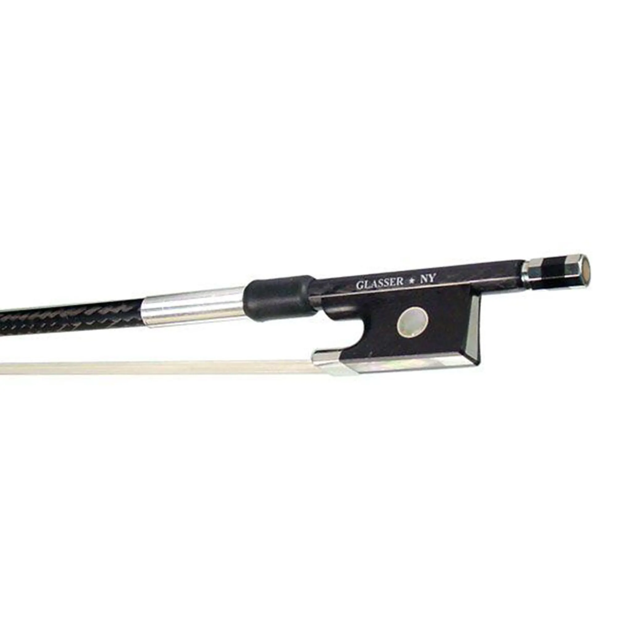Unlike standard composite bows, which are hollow, these bows have a solid core to give them a supplementary, even feel and balance. The carbon fibers that make this bow are braided into a continuous pattern. This creates a seamless bow that carries its fiber patterns down its entire length just as the grain of a wood bow is carried down its entire length. They use a natural finish, rather than paint, to showcase the aesthetic beauty of this bow’s interwoven design. The bows feature deluxe ebony Paulus frogs made in Germany. The Frogs are nickel, silver and gold mounted and have the highest quality goldfish abalone pearl slide and large eye.
