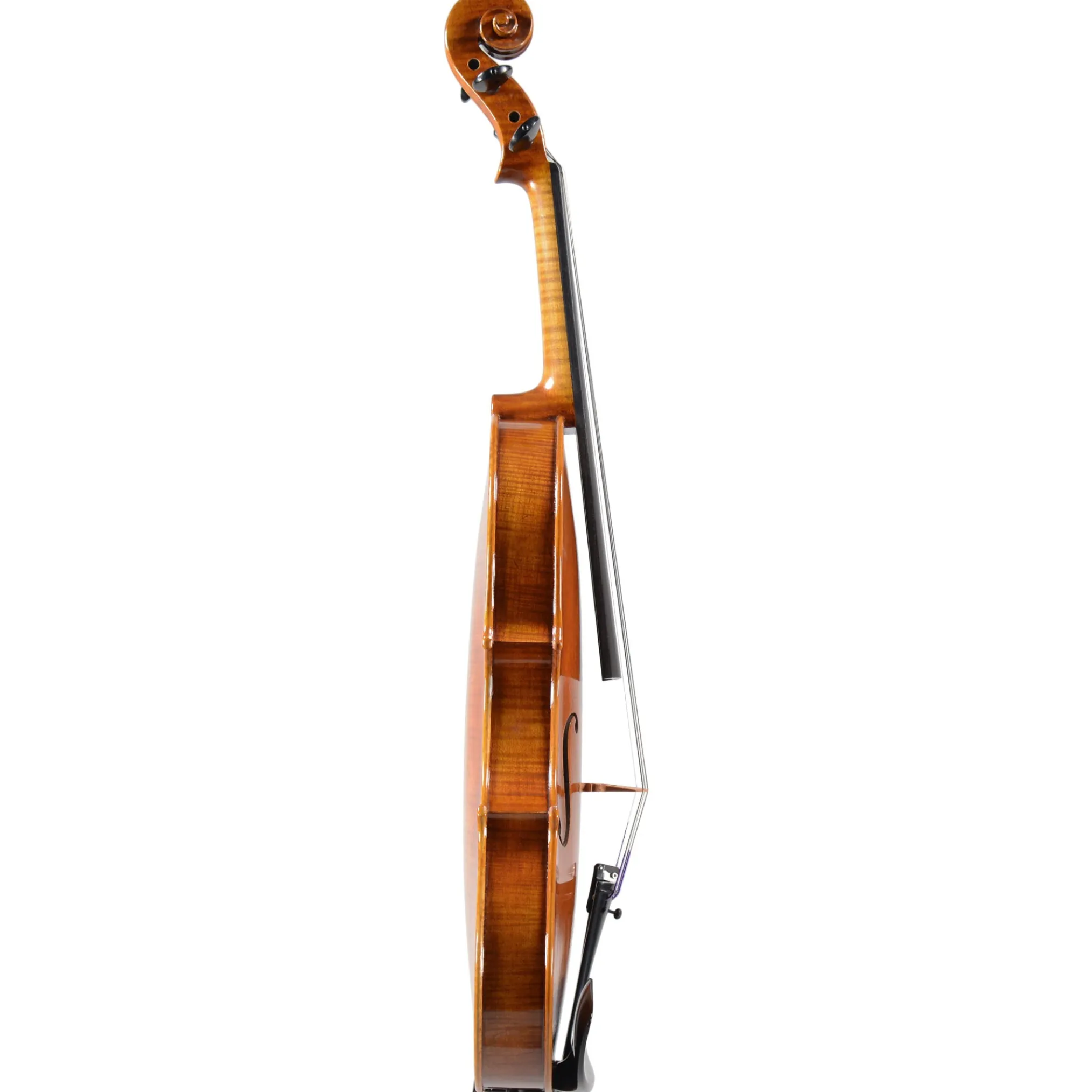 All our Holstein violins are faithful reproductions to their famous originals. For our bench-made line in this price point, they share many of the same features, but are unique in their appearance as a single luthier puts an immense amount of work in modeling and carving the same shape as its original. From scroll, down to the f-holes and the highest level craftsmanship in varnish work antiquing.