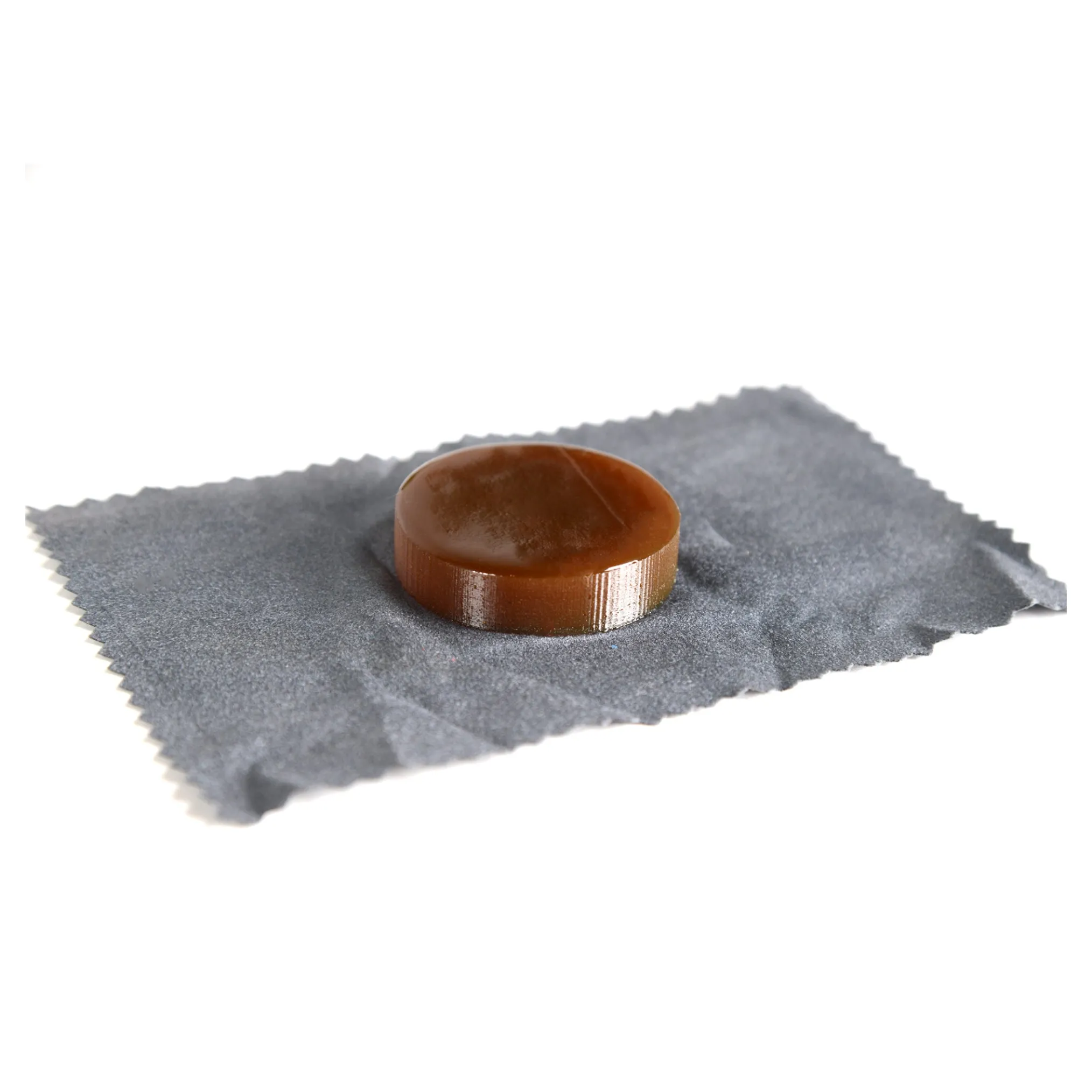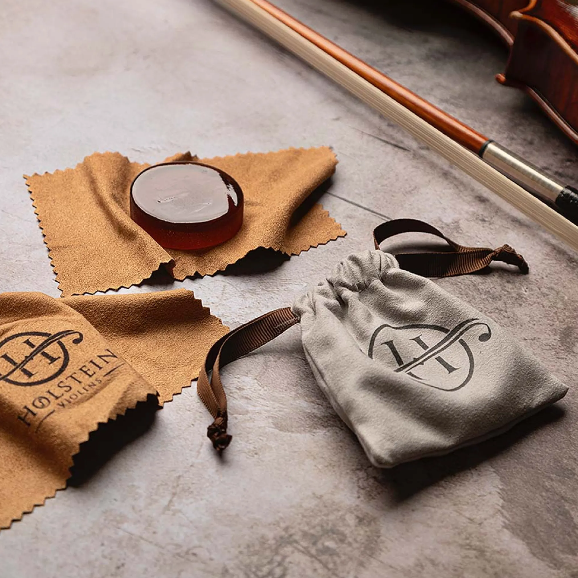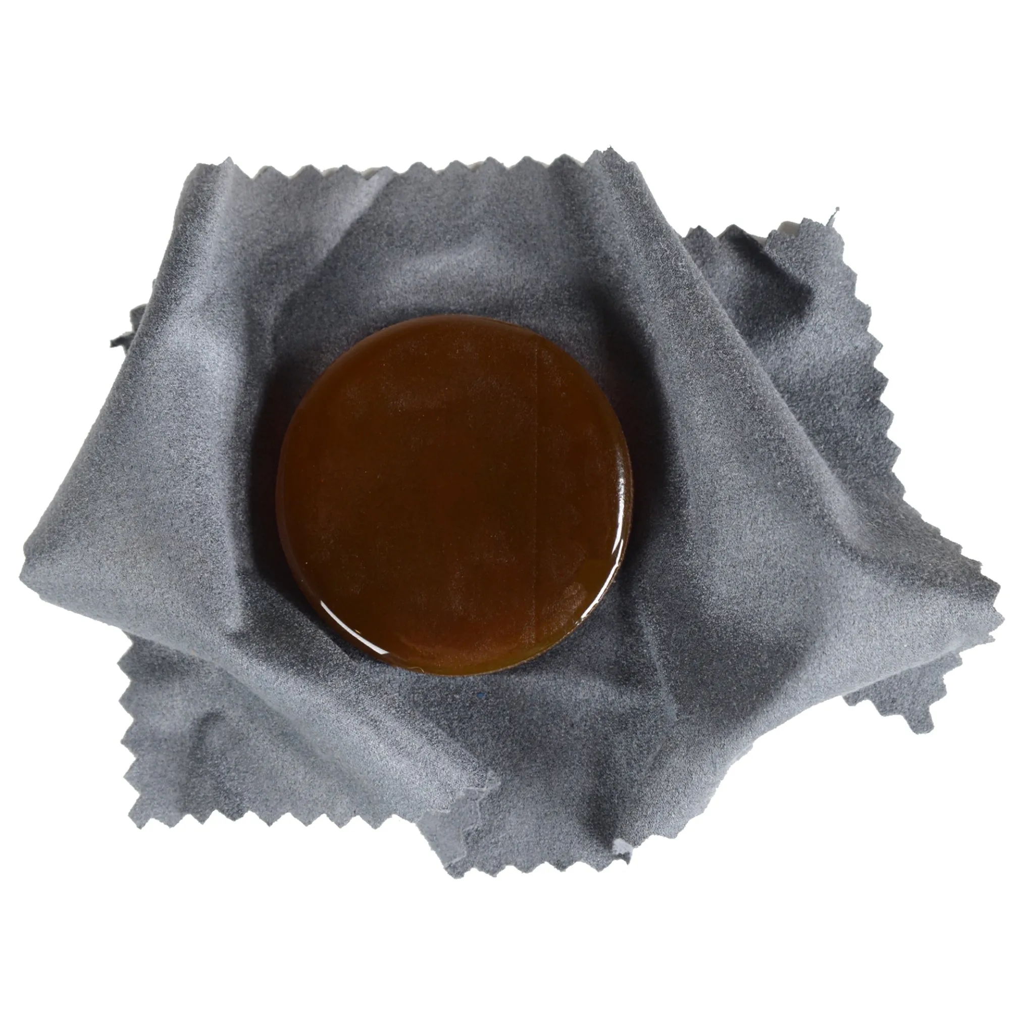 This full cake rosin, has a beautiful deep caramel color and is attached to a microfiber cloth for easy application. For storage purposes, the cake comes with a fabric pouch.