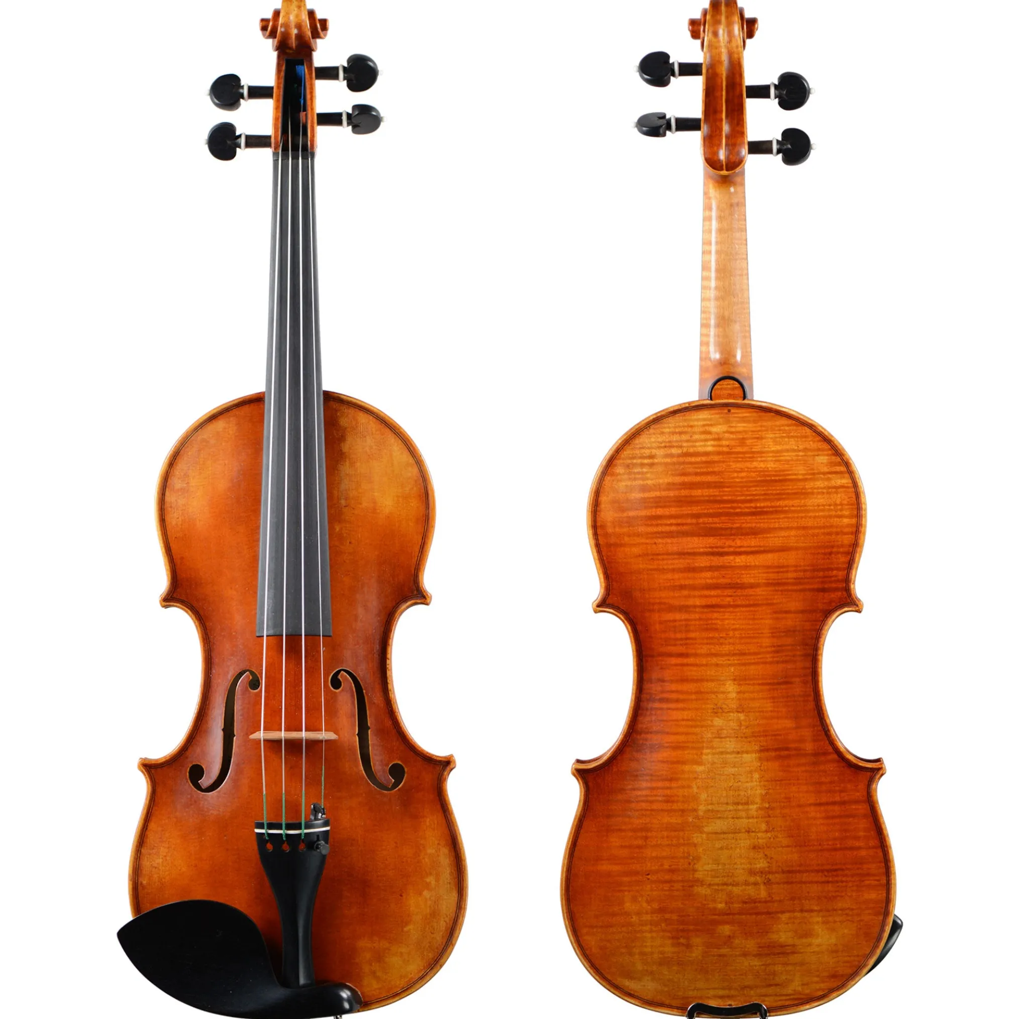 This is our wonderful replica of the original Amati violin made in 1662. Though nearly all of his instruments show unsurpassed attention to precision and detail, Nicolò Amati’sviolins followed a relatively small pattern, with a big belly (high arch rising nearly to a ridge in the center of both the front and back of the instrument). Players tend to like thisparticular pattern for its warm sounds, making it suitable for chamber music.