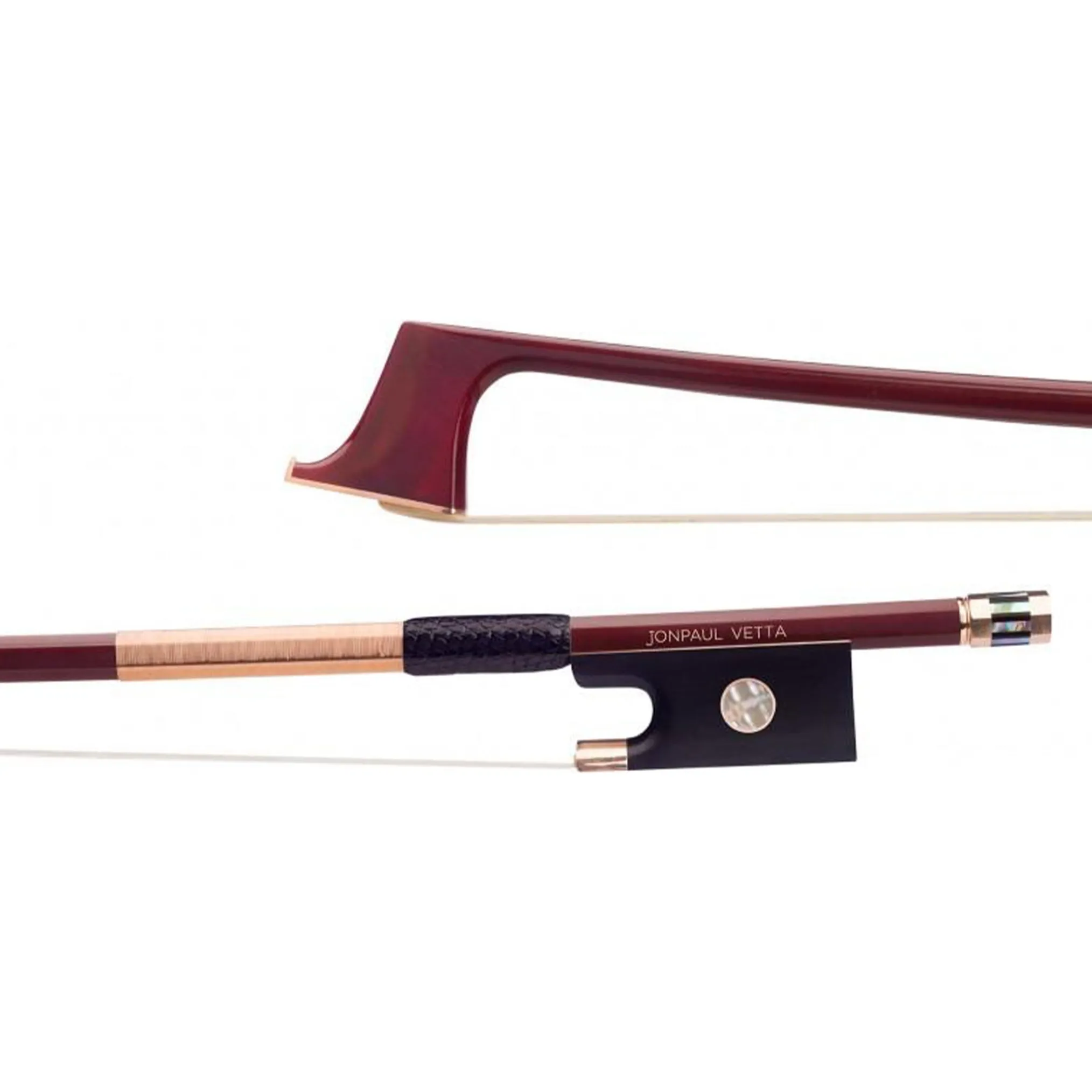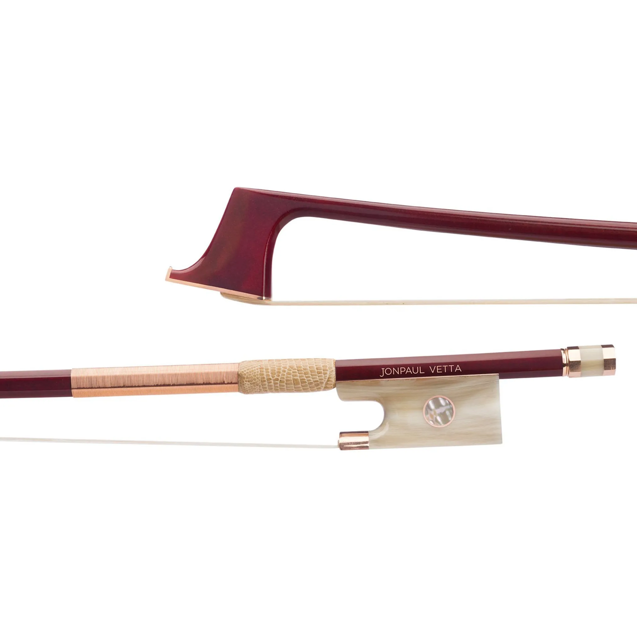 We set the bar high with the Vetta, modeling it after an exquisite Pajeot we had on loan. While the Vetta includes the classic features of our other models (one piece construction, etc.), special attention is given to each aspect of bow making to achieve yet another level of playing and sound. Improvements were made in balance, weight, and flexibility, not just to enhance the techniques of the player, but to create the warm, rich, and powerful tones of the best wooden bows. The appearance is also enhanced with a textured, “varnished” finish. Unique and beautiful, yet the classic red-brown colors are discreet enough to blend into any collection.