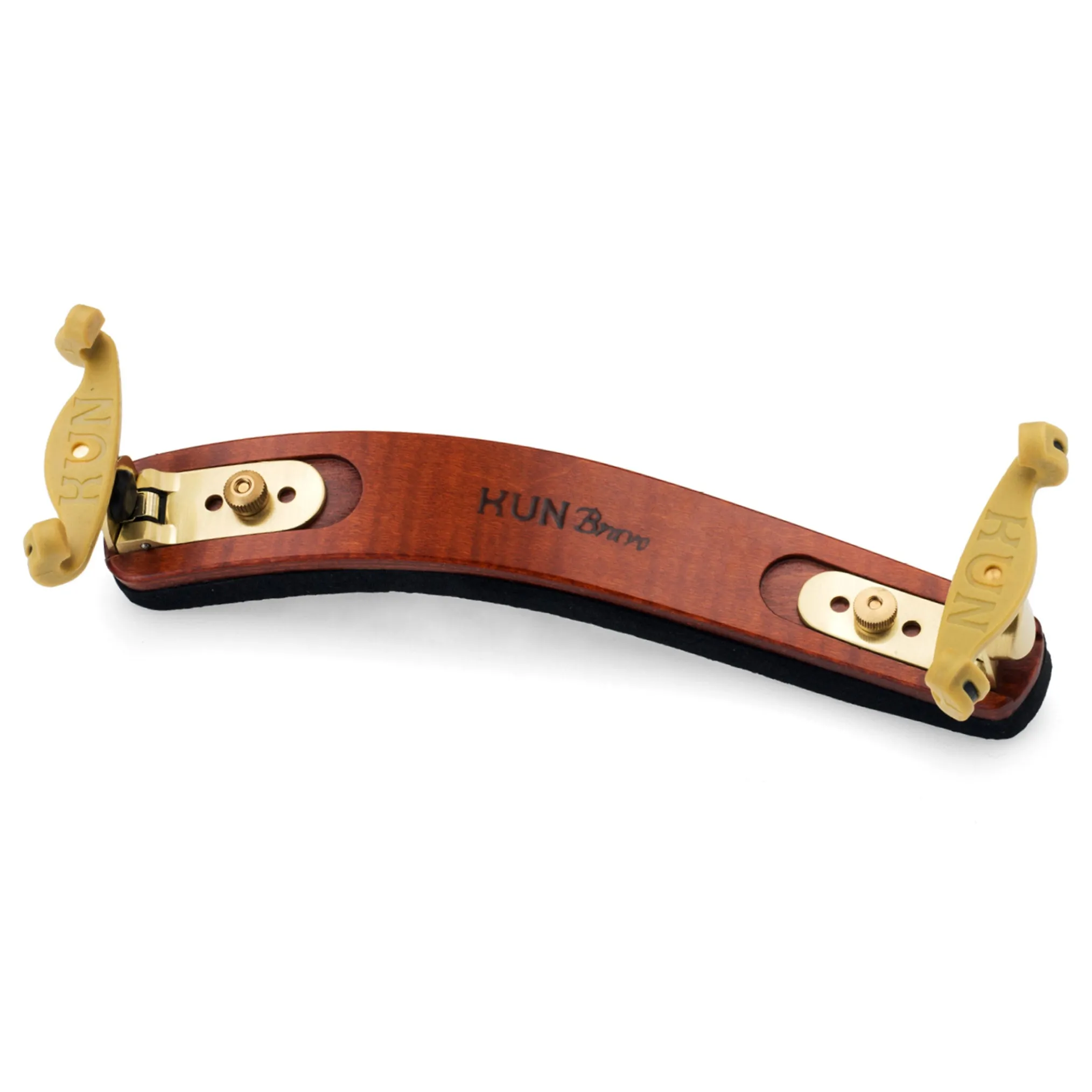 The padded bar helps to prevent slipping and sits on the shoulder comfortably. Kun shoulder rests are favored by professional string players because of the practical, uncomplicated design, the highest quality parts, being adjustable in three directions, the patented end members locking device, and the rest will never touch your instrument. The Kun Bravo Collapsible 4/4 Violin Shoulder Rest has the same beautiful wood design and high-quality parts as the Kun Bravo with one difference, the polished brass end members fold flat.