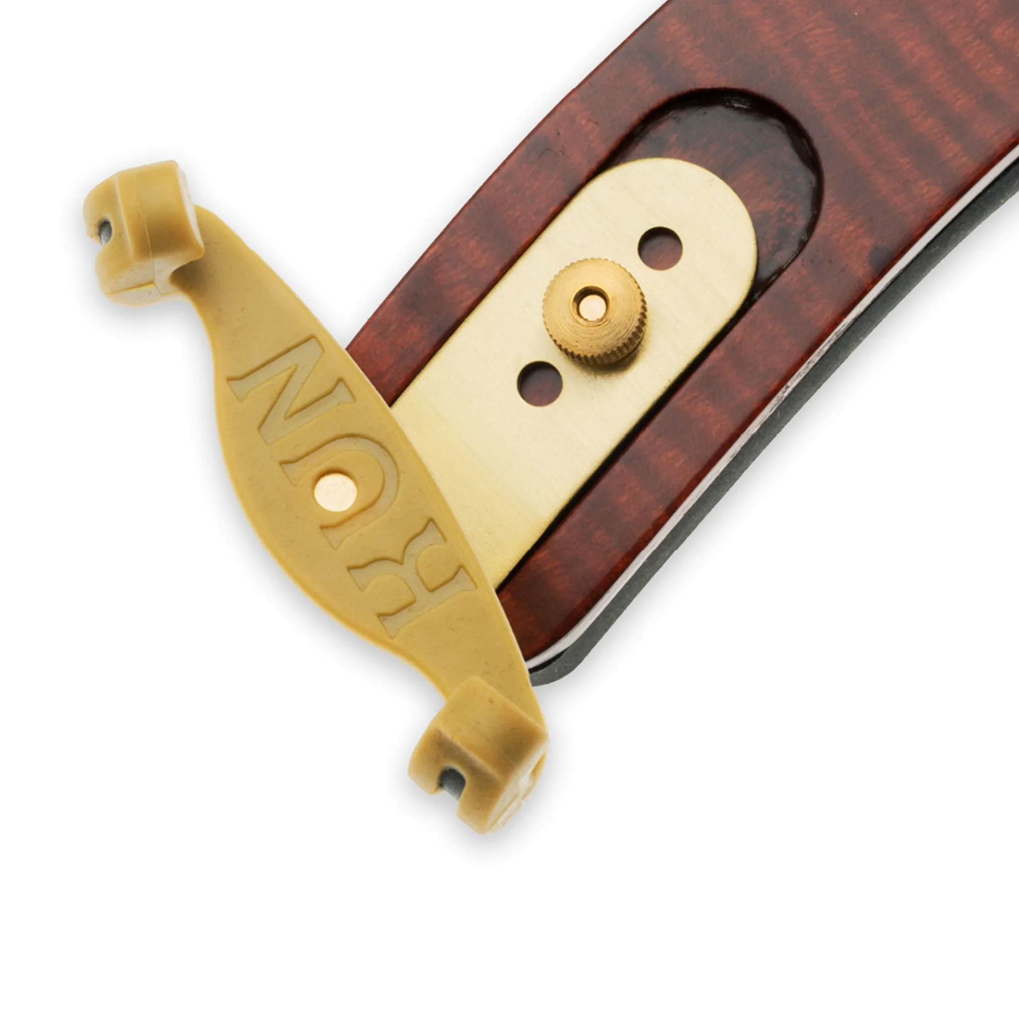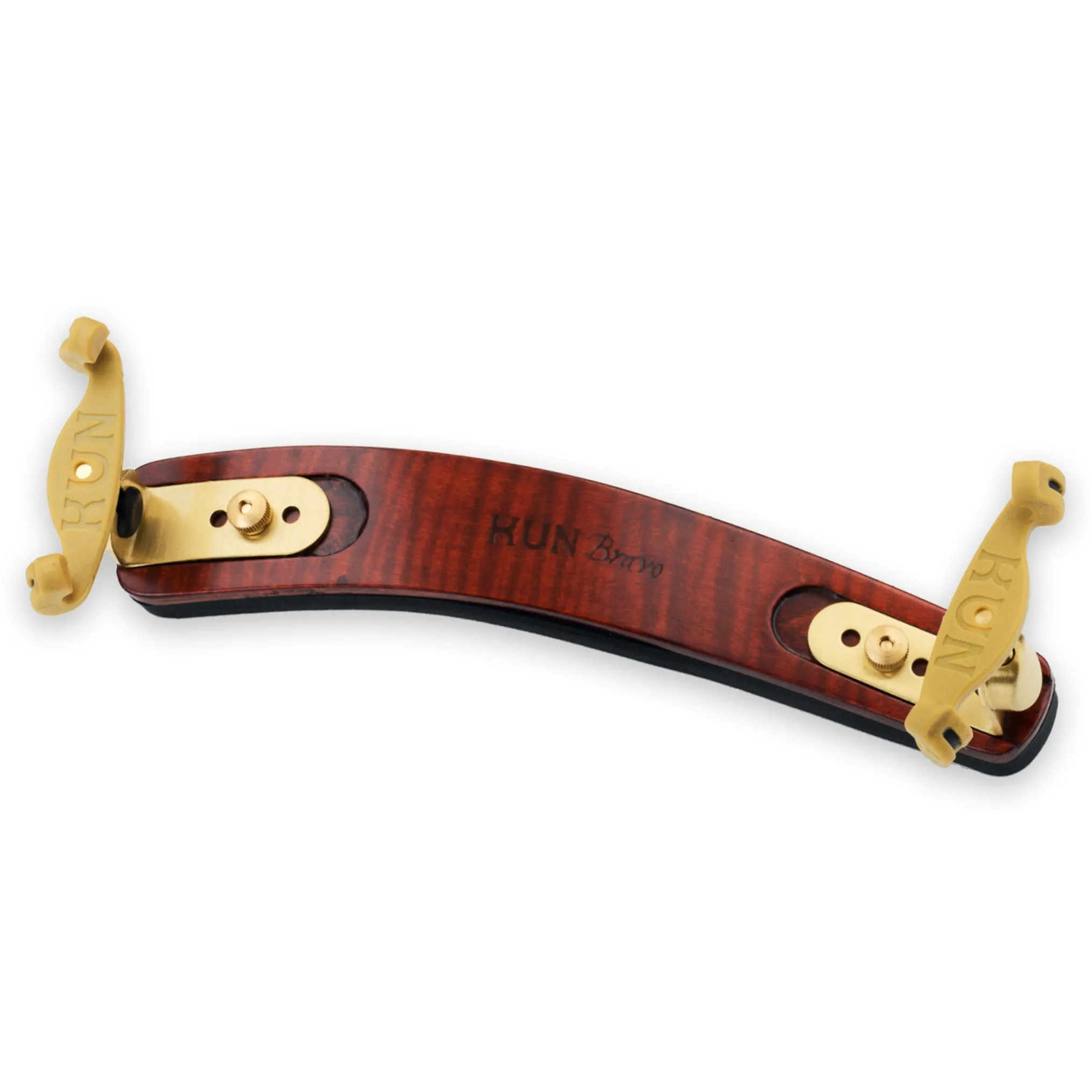 Kun Bravo Shoulder Rest for Viola. A shoulder rest must fit snugly on the instrument. During playing, it sits between the chin and the shoulder. These factors require both strength and flexibility. The Kun Bravo’s bent hardwood laminates provide the only solution, and also help your instrument produce a great sound! Handcrafted in Italy from European curly maple, the Bravo’s base is finished like the back of a fine violin, while polished brass parts add a final dash of elegance. The result? A shoulder rest graced with startling good looks and the exceptional functionality players expect from their Kun.
