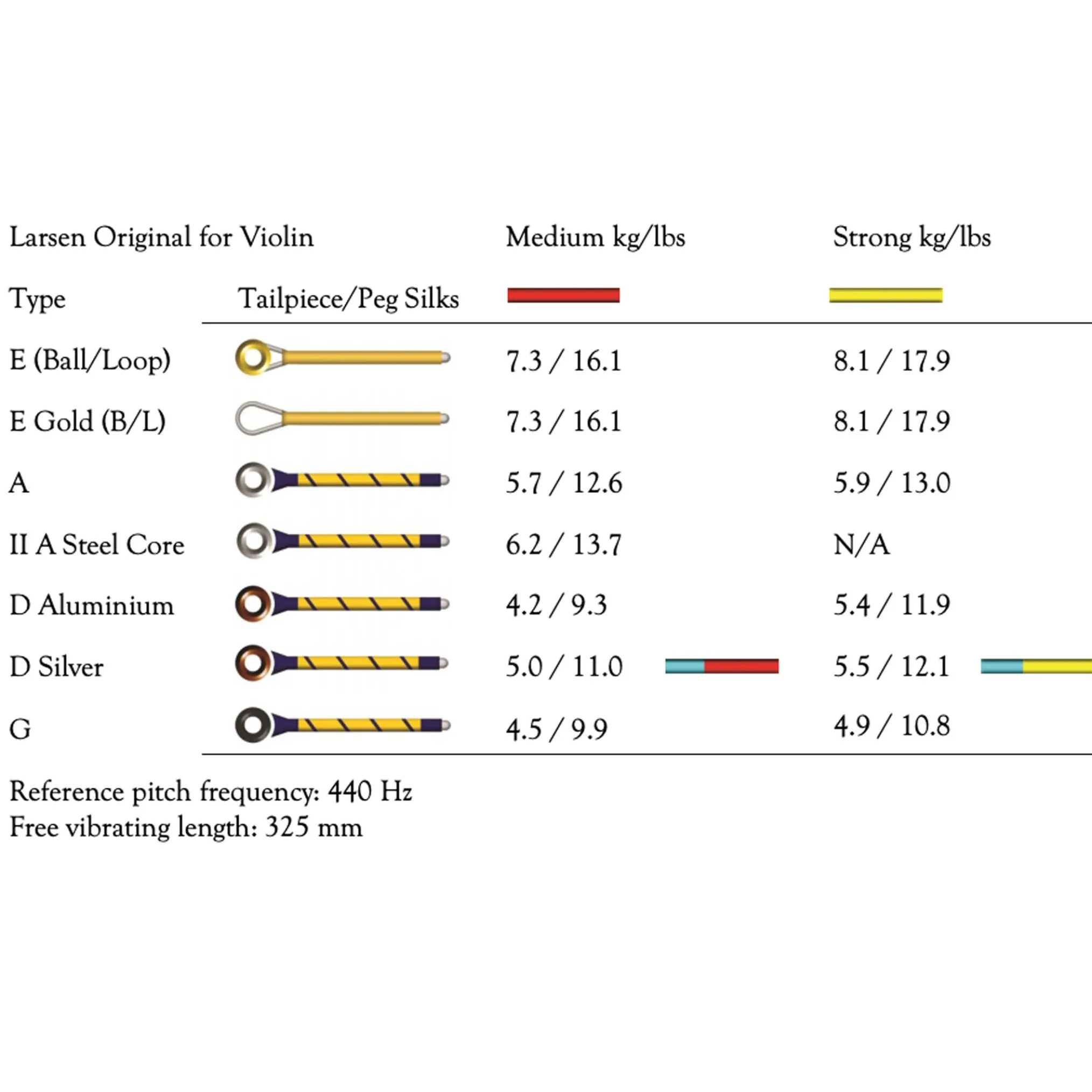 Larsen Original for Violin deliver a warm yet direct and unhesitating feel with rapidly achieved tuning stability and consistency of sound. Original, reliable, robust projection, ideal for the brighter to neutral sounding instrument in need of some complementary warmth.