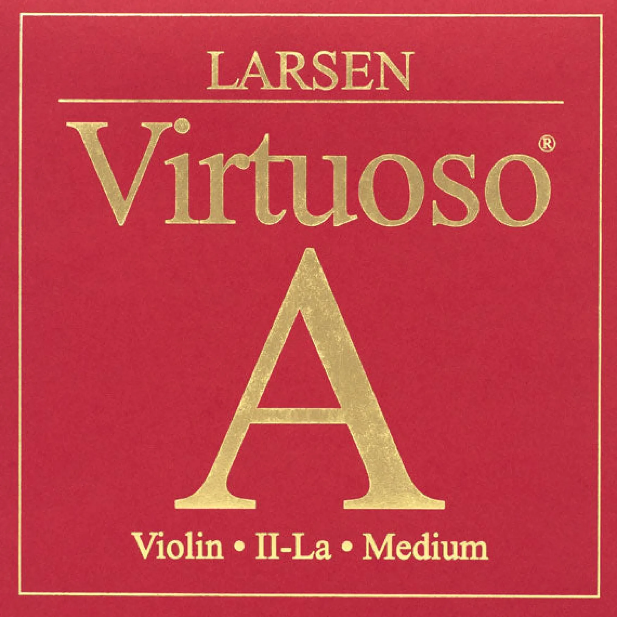A truly innovative synthetic string at only moderate tension yet capable of delivering a richly nuanced sound with exceptional volume. Extremely well received and consistently reviewed as setting a new standard for the violin. Eminently playable and noted for its remarkable string response and reliability, the Larsen Virtuoso® suits warm to neutral sounding instruments. Given their moderate tension, they lend particular benefit to older instruments. We offer Larsen Virtuoso® strings in two tensions, medium and strong.