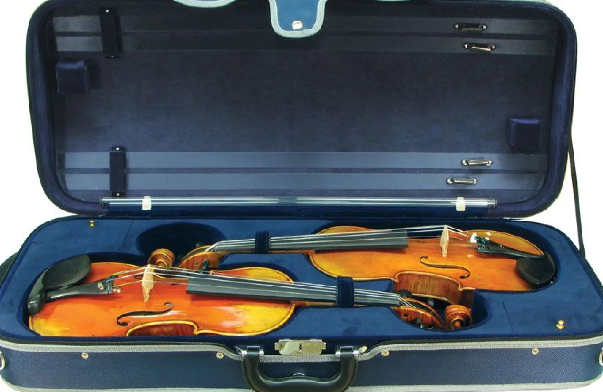 Safely carries two full sized (4/4) violins. Weighs only 8 lbs. Blue interior and exterior.