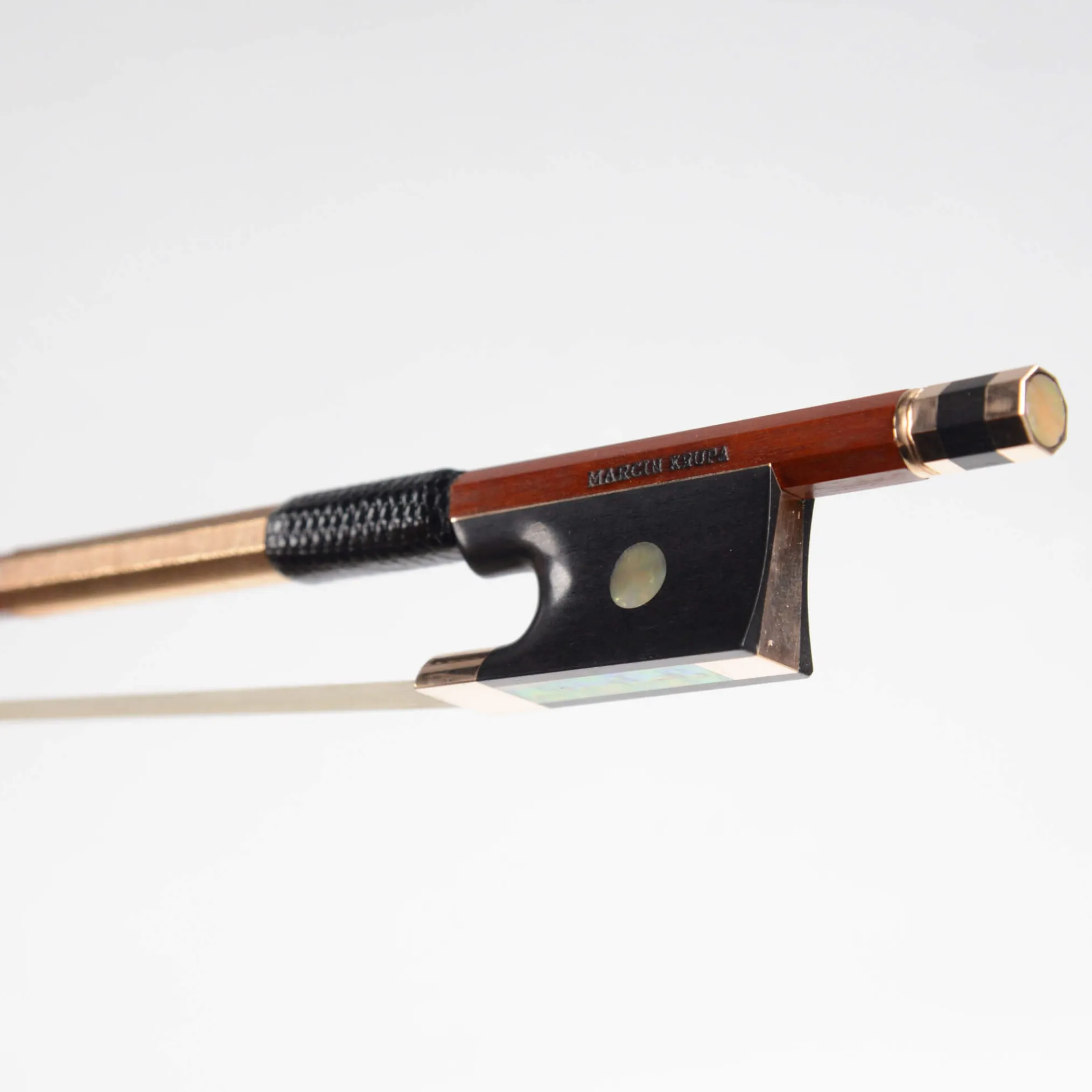 This stunning violin bow has been expertly made by award-winning Polish Atelier, Marcin Krupa. It’s handcrafted to exceed all expectations using the finest selection of pernambuco and is fully gold mounted with the highest quality ebony frog and solid eye. It offers simply superb playability, response and balance.