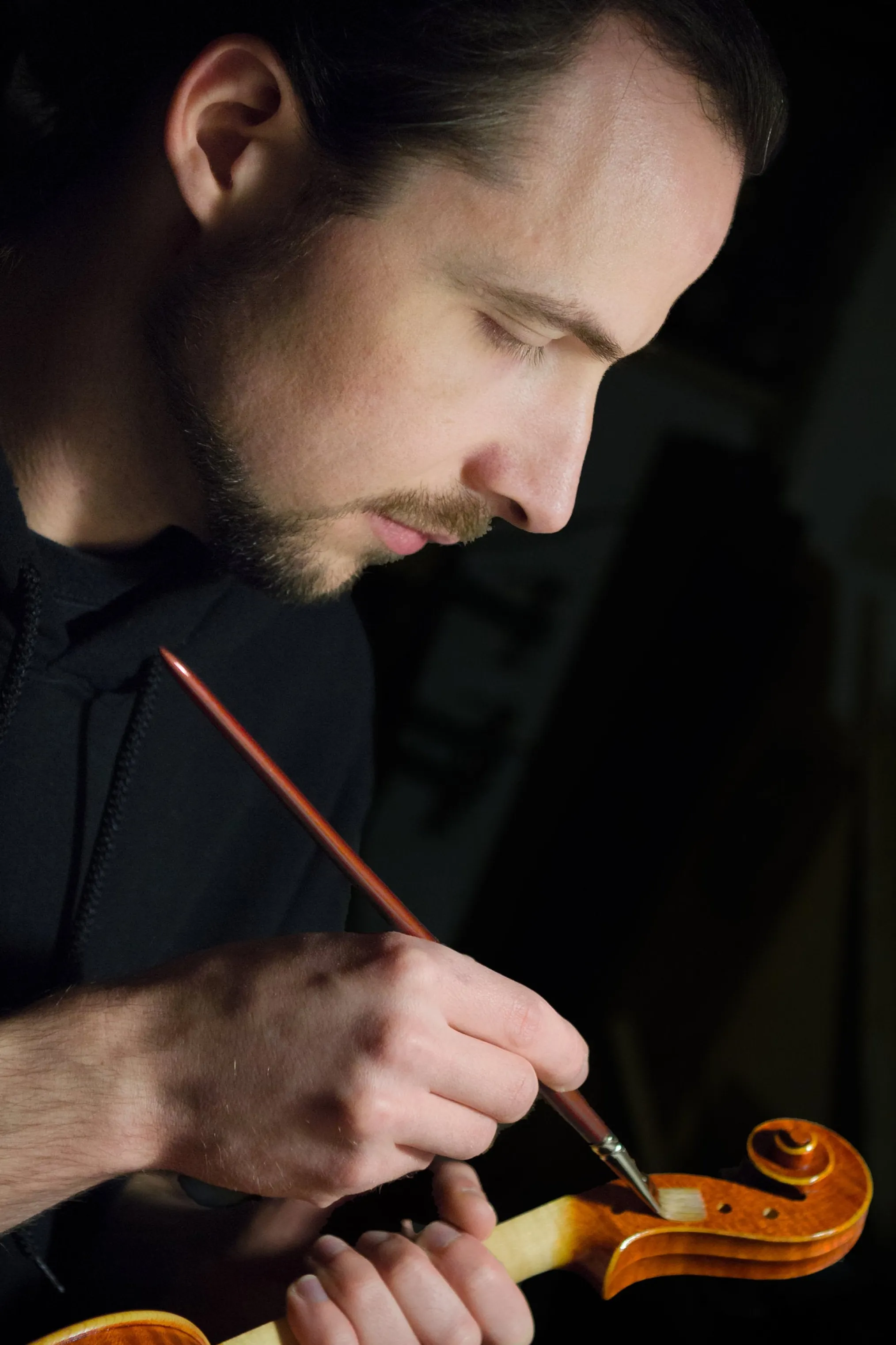 He graduated in 2012, and soon after took apprenticeships in two workshops in Cremona with Giorgio Scolari and Luca Bellini. At the same time, he had theopportunity to learn from other Cremonese violin makers, such as Davide Sora, continuingadvanced acoustic and aesthetic research in his hometown.