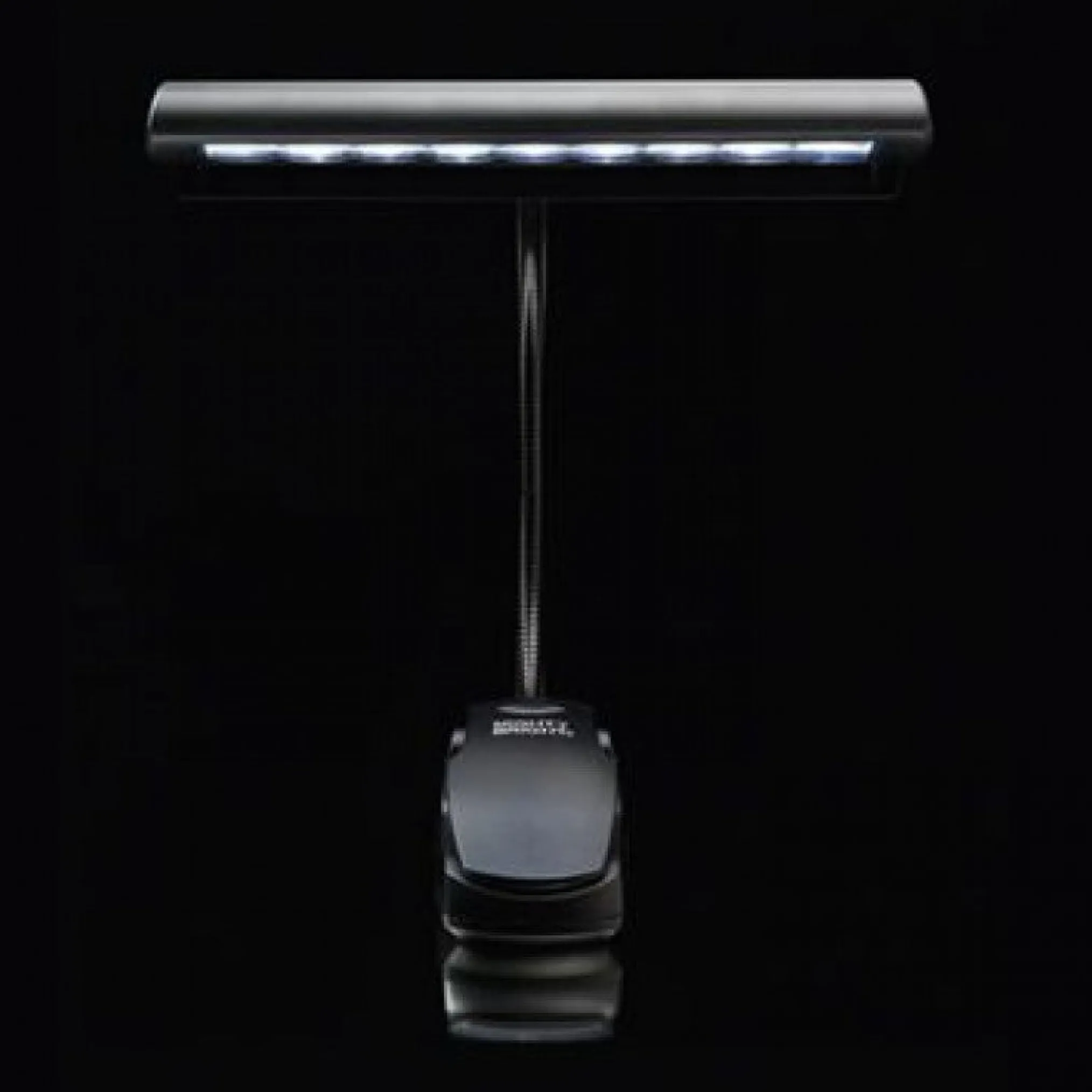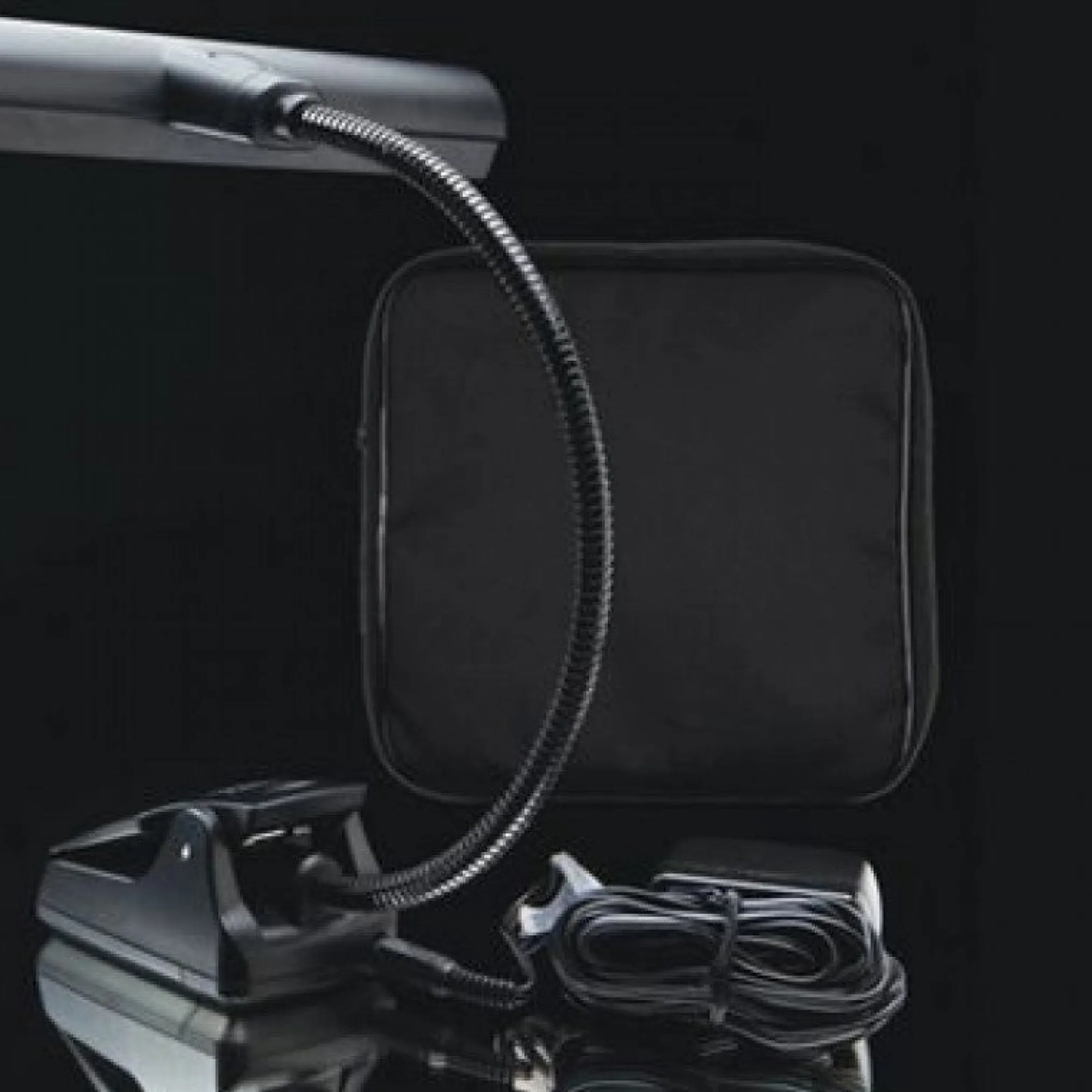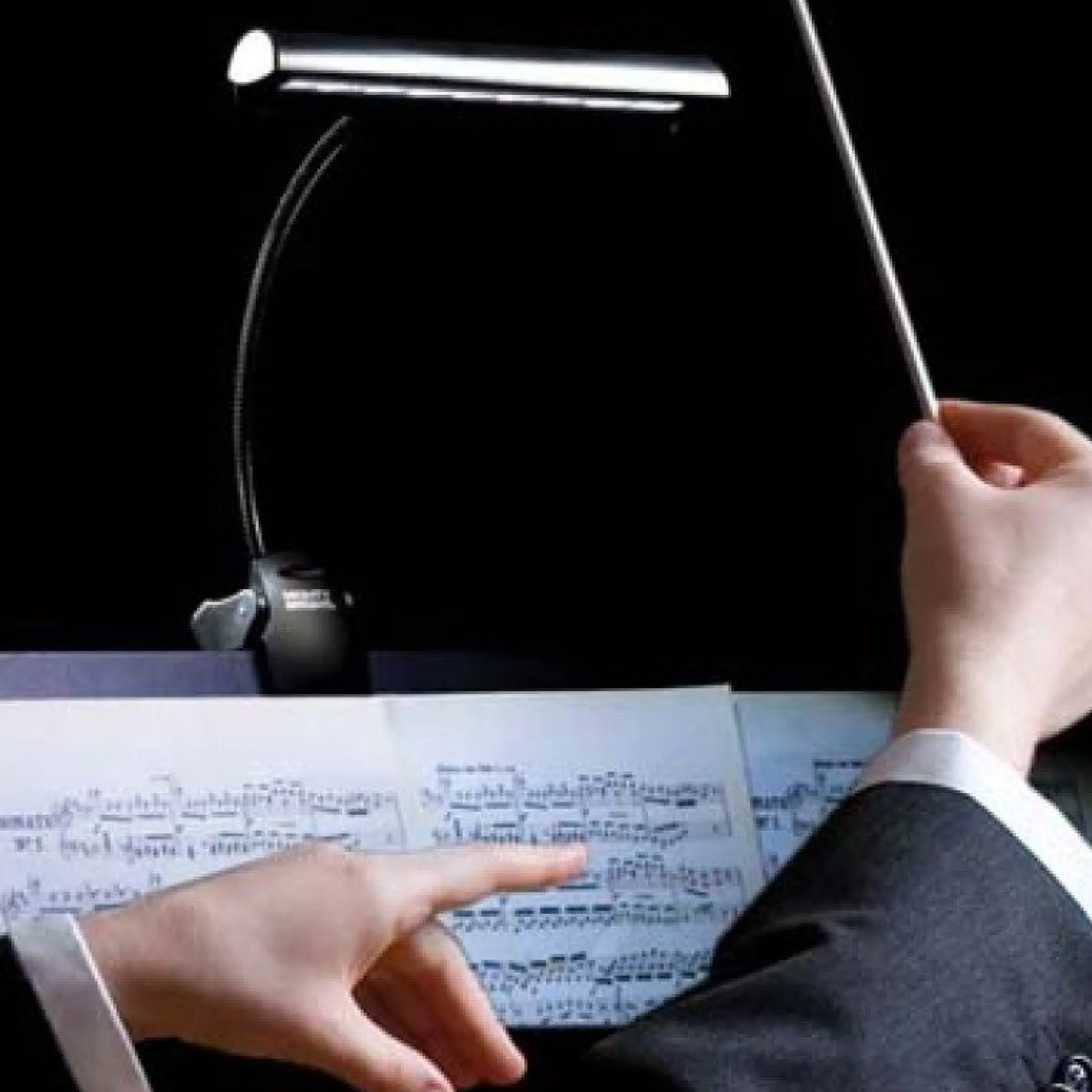 Mighty Bright’s Orchestra Light is the brightest in the business. The sleek, black music stand light blends in, tasteful and understated, and comes with a convenient travel case. The long head features a row of nine brilliant LEDs, and a tap power button that offers two light level options. Set at the higher level to brighten up to four pages of sheet music. A discrete back fin directs light away from the audience and back to the sheet music. This stylish light is seriously sturdy, from clip to bulbs. The extra broad clip is a Mighty Bright exclusive design, with a powerful grip set on a broad base that will sit securely on your stand. The gooseneck is robust but allows user to make precise adjustments easily, even during performance. Its energy-efficient LEDs are not only sturdy enough to withstand the rigors of tear down and travel they also heighten the contrast of the notes and words on sheet music, for more comfortable, accurate reading. Lighting system? Check. Let the magic begin.