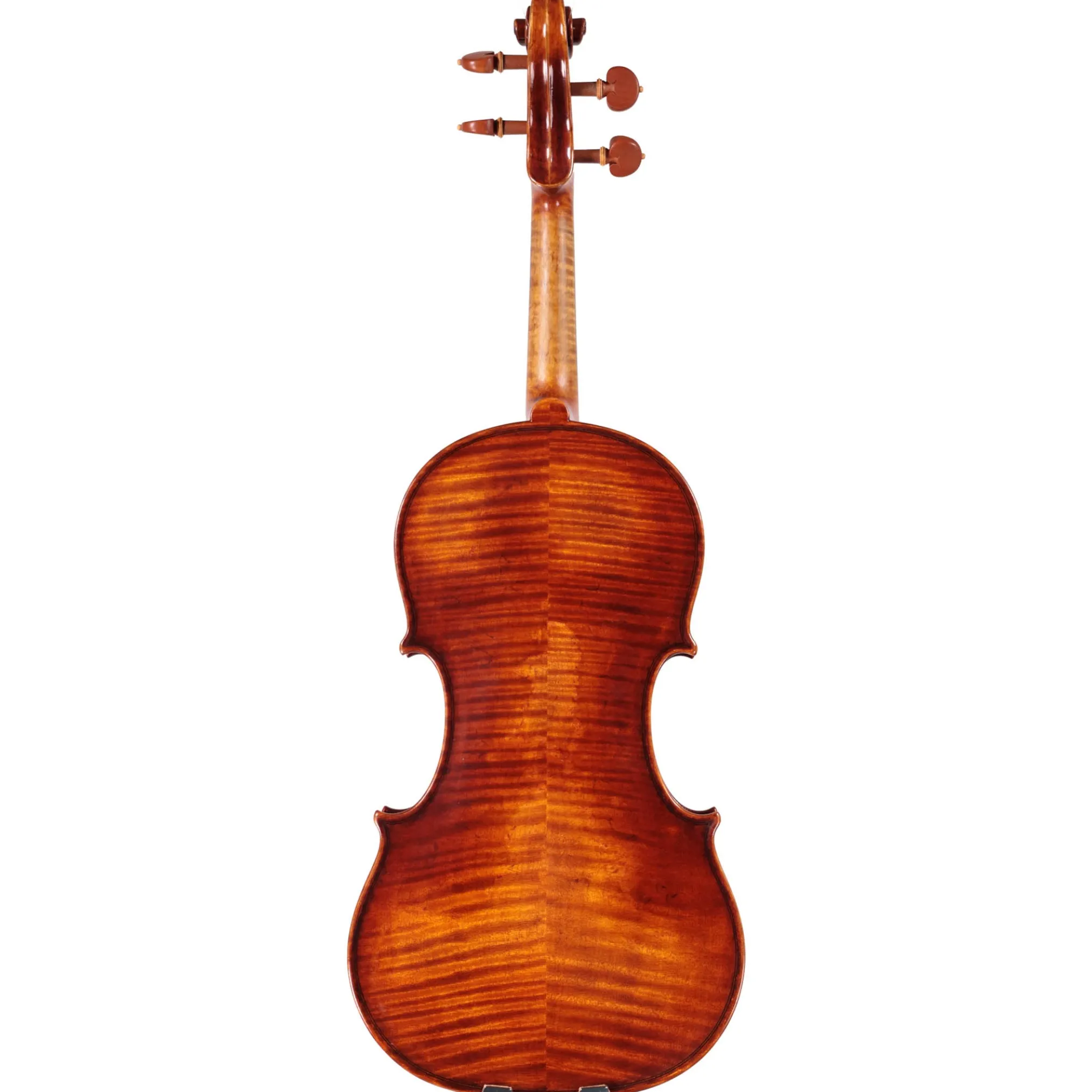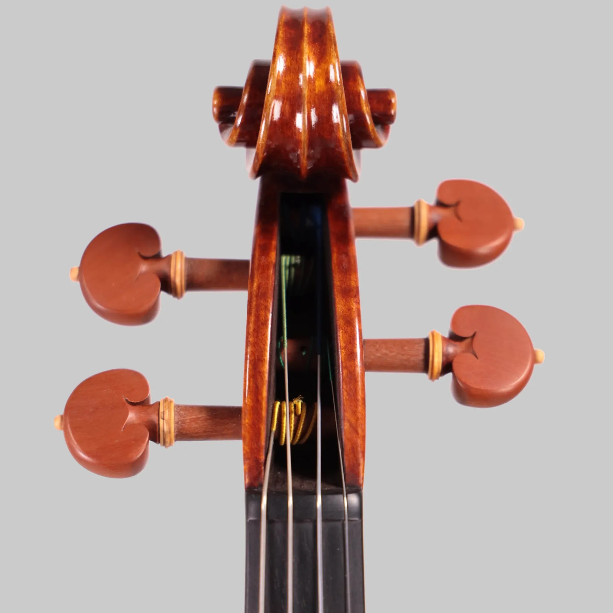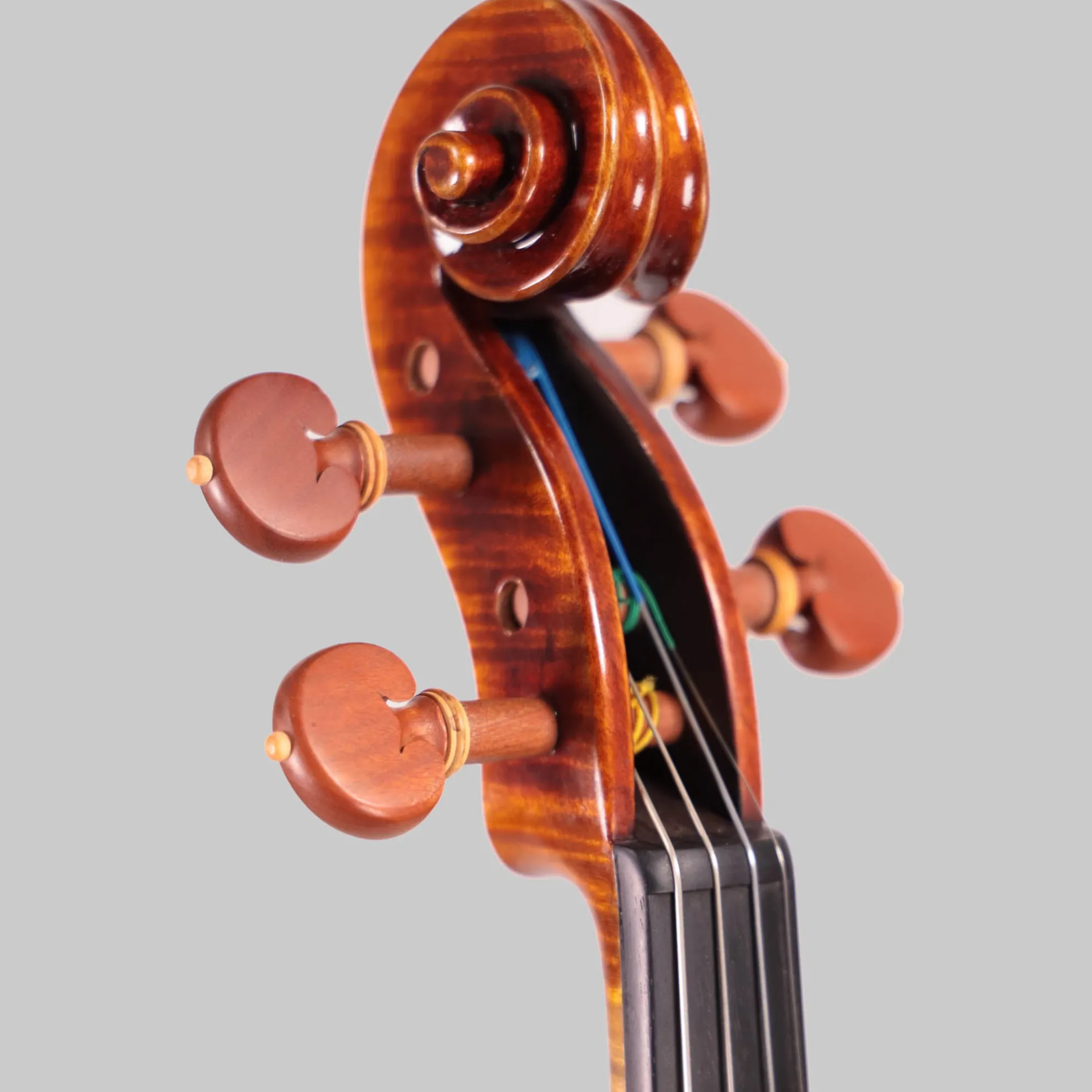 Each instrument is beautifully oil varnished and the color is a red-brown on a yellow ground finish. They are attractively antiqued to appear like an old, expensive instrument. Thisviolin is hand made in the Ming Jiang ZhuWorkshop, but isset up and tested by our professional luthiers in our Florida workshop to make sure that it sounds the best it can, and plays easily.