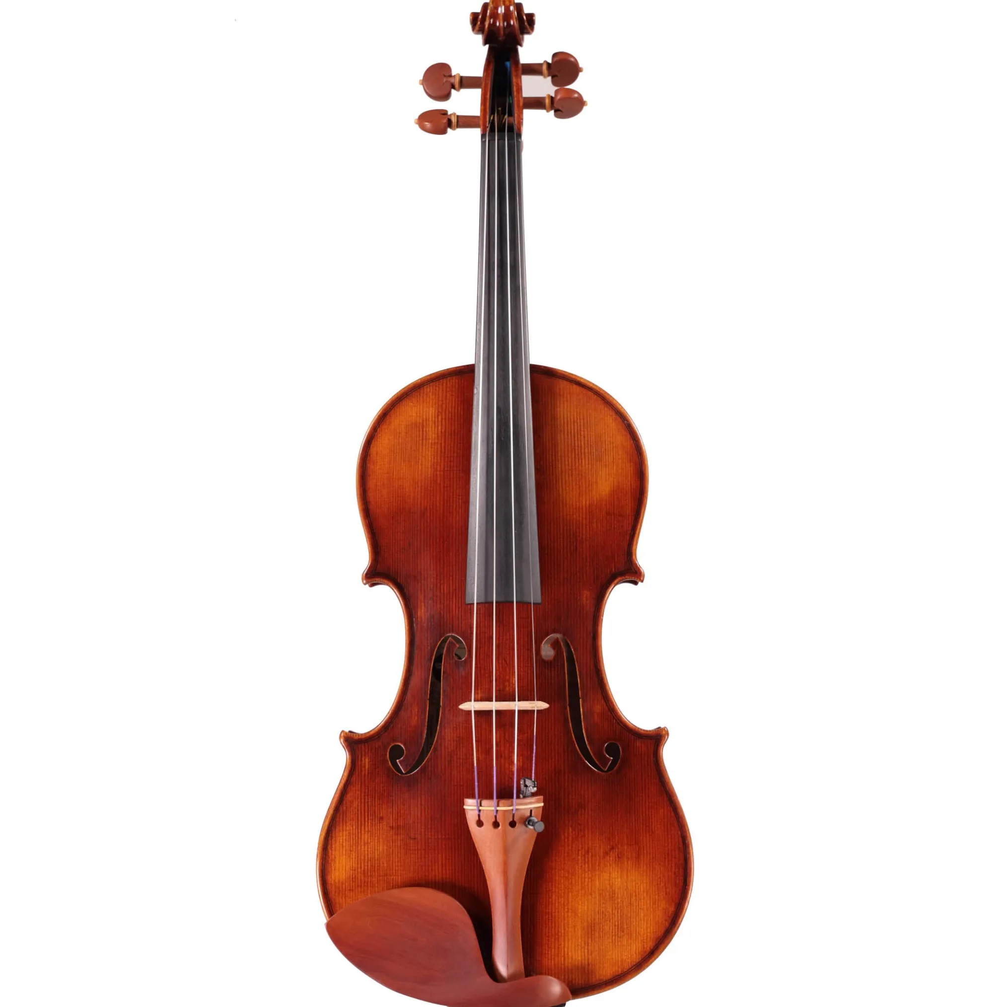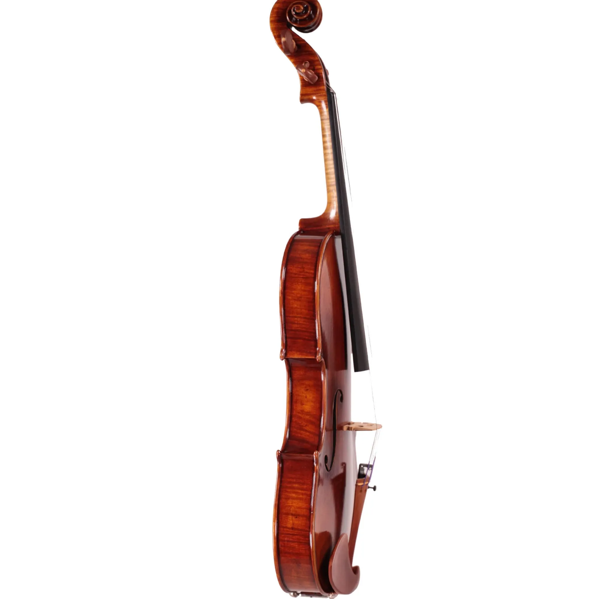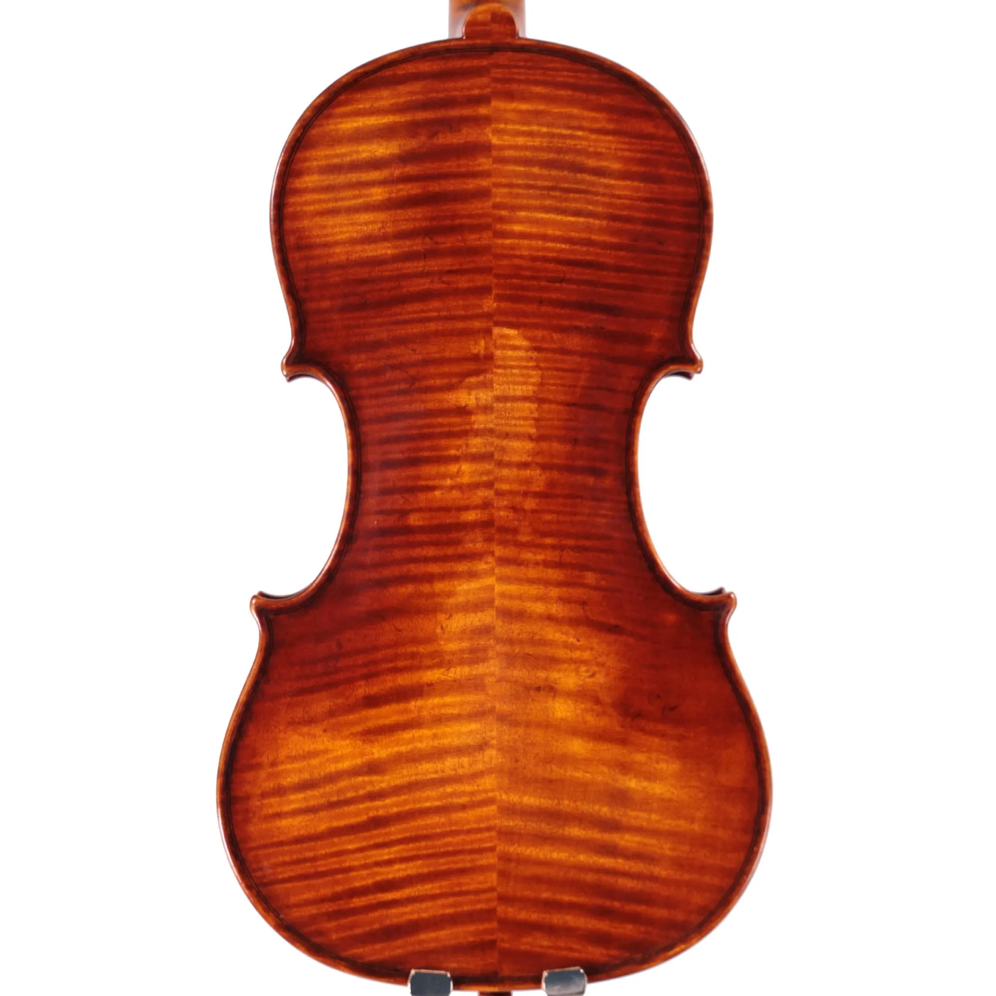 Each instrument is beautifully oil varnished and the color is a red-brown on a yellow ground finish. They are attractively antiqued to appear like an old, expensive instrument. Thisviolin is hand made in the Ming Jiang ZhuWorkshop, but isset up and tested by our professional luthiers in our Florida workshop to make sure that it sounds the best it can, and plays easily.