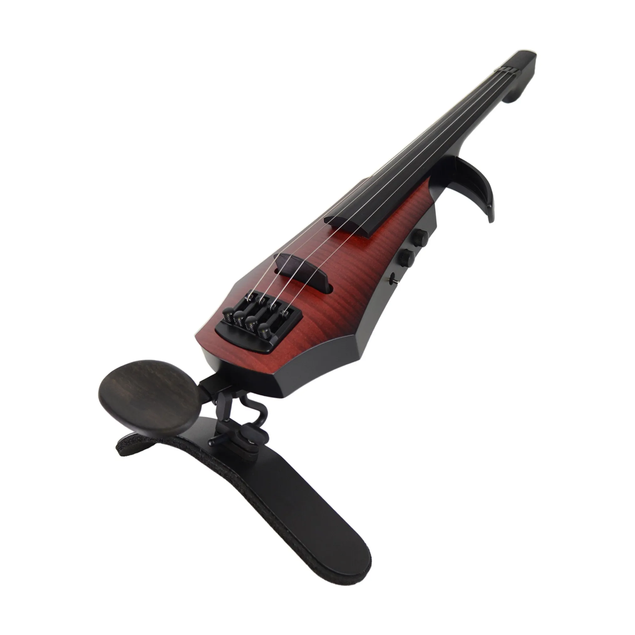 CHIN & SHOULDER REST: Ergonomically designed to support the instrument securely without the left hand. The padded shoulder rest is fully adjustable for height and angle. Knobs are located within easy reach of the right hand so adjustments can be made with the instrument in playing position.