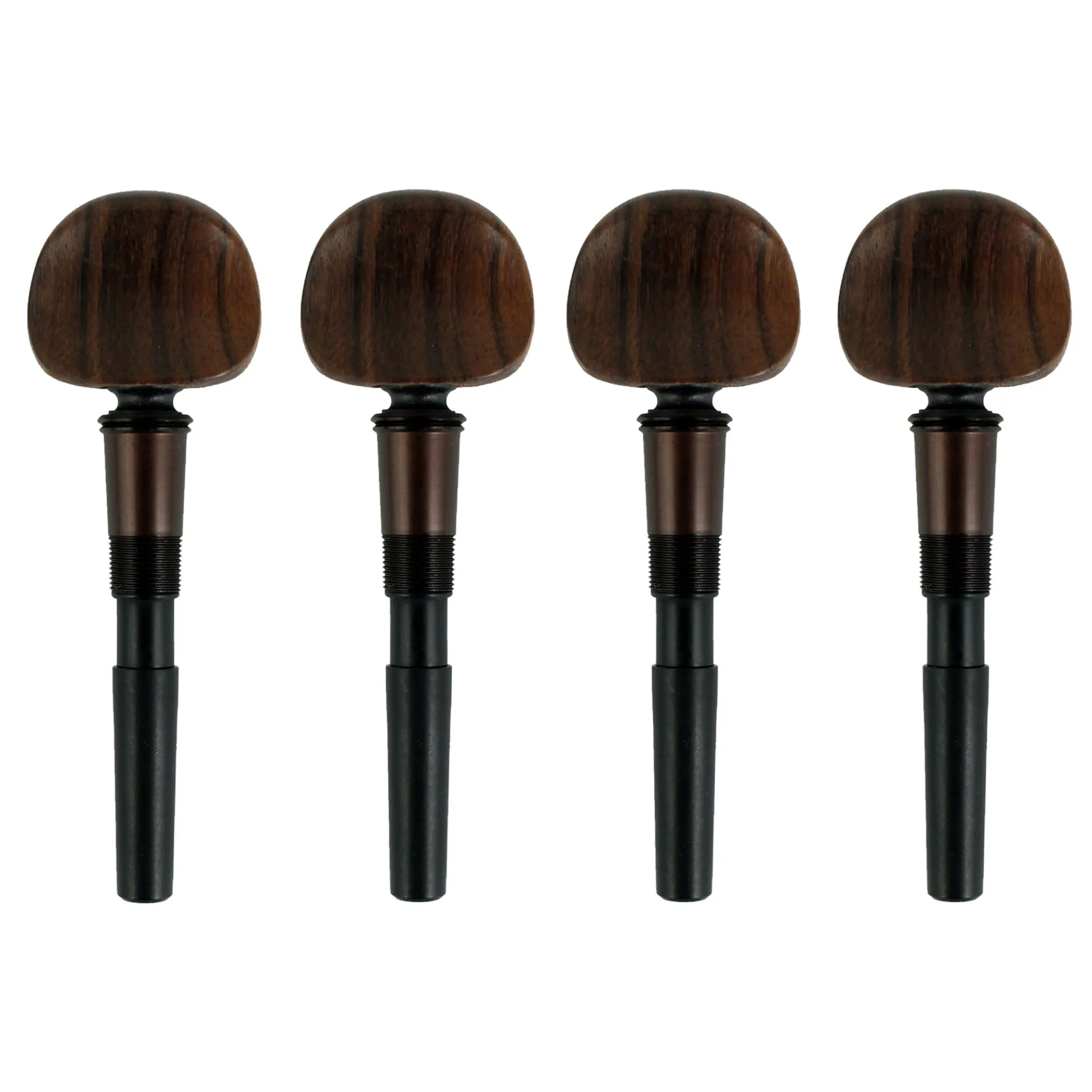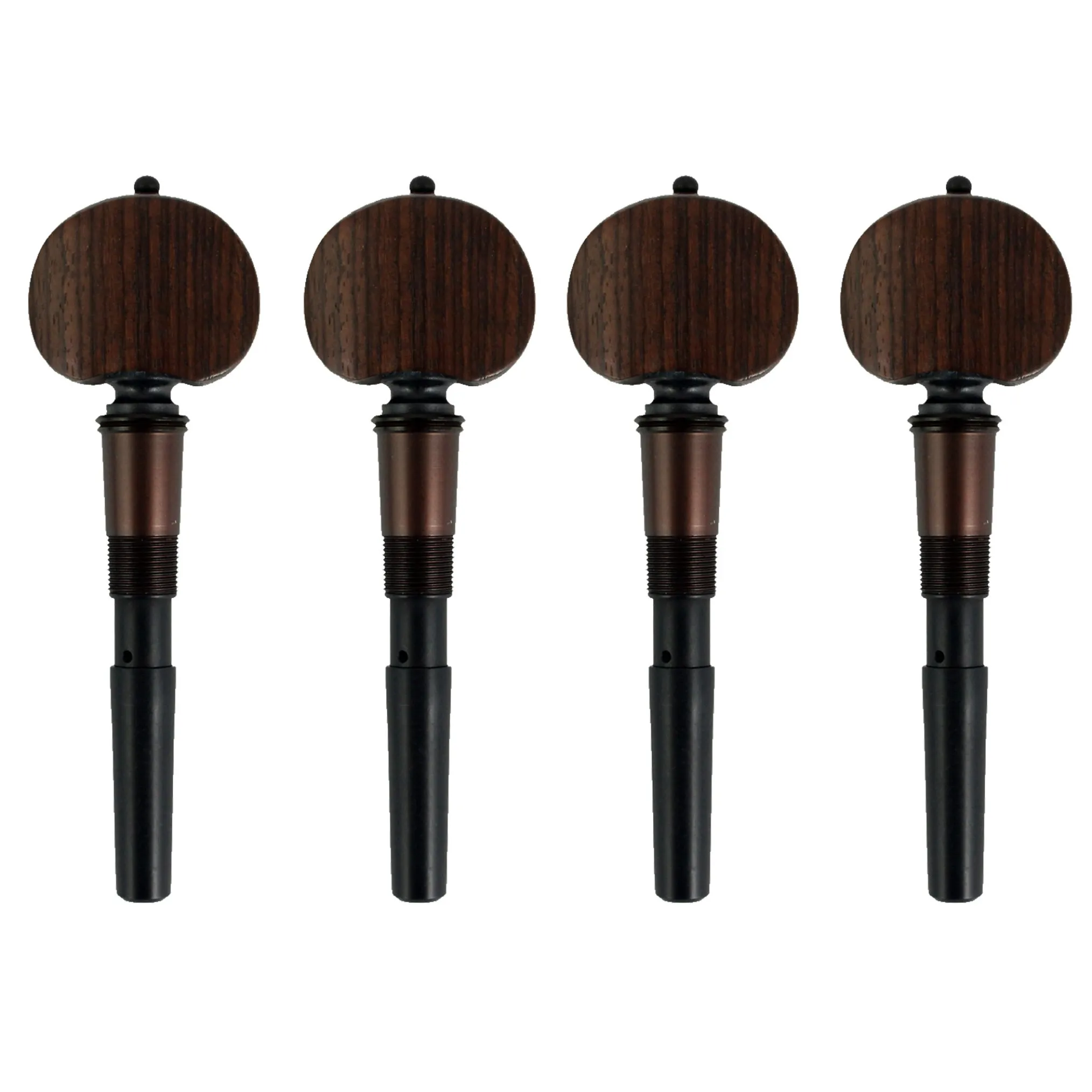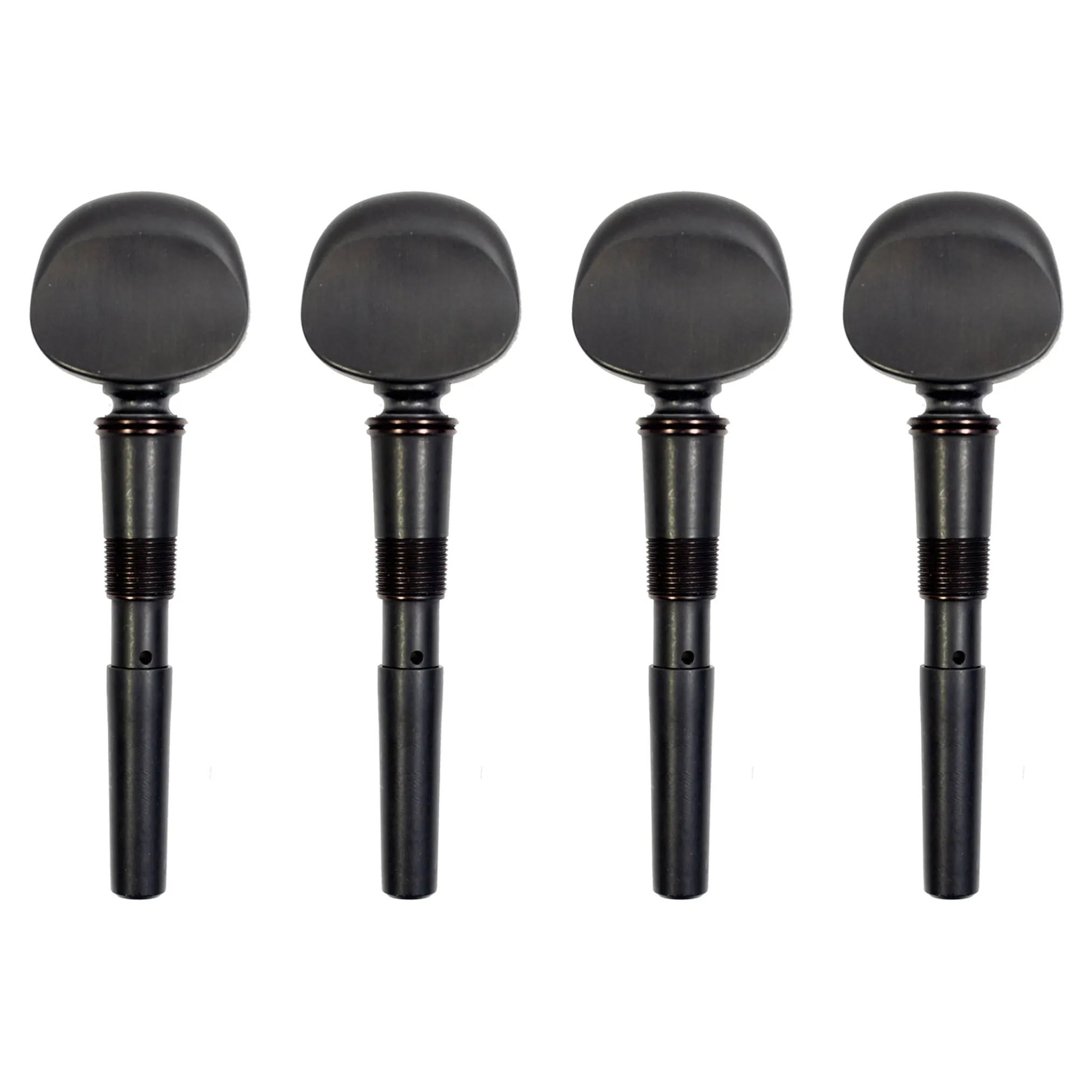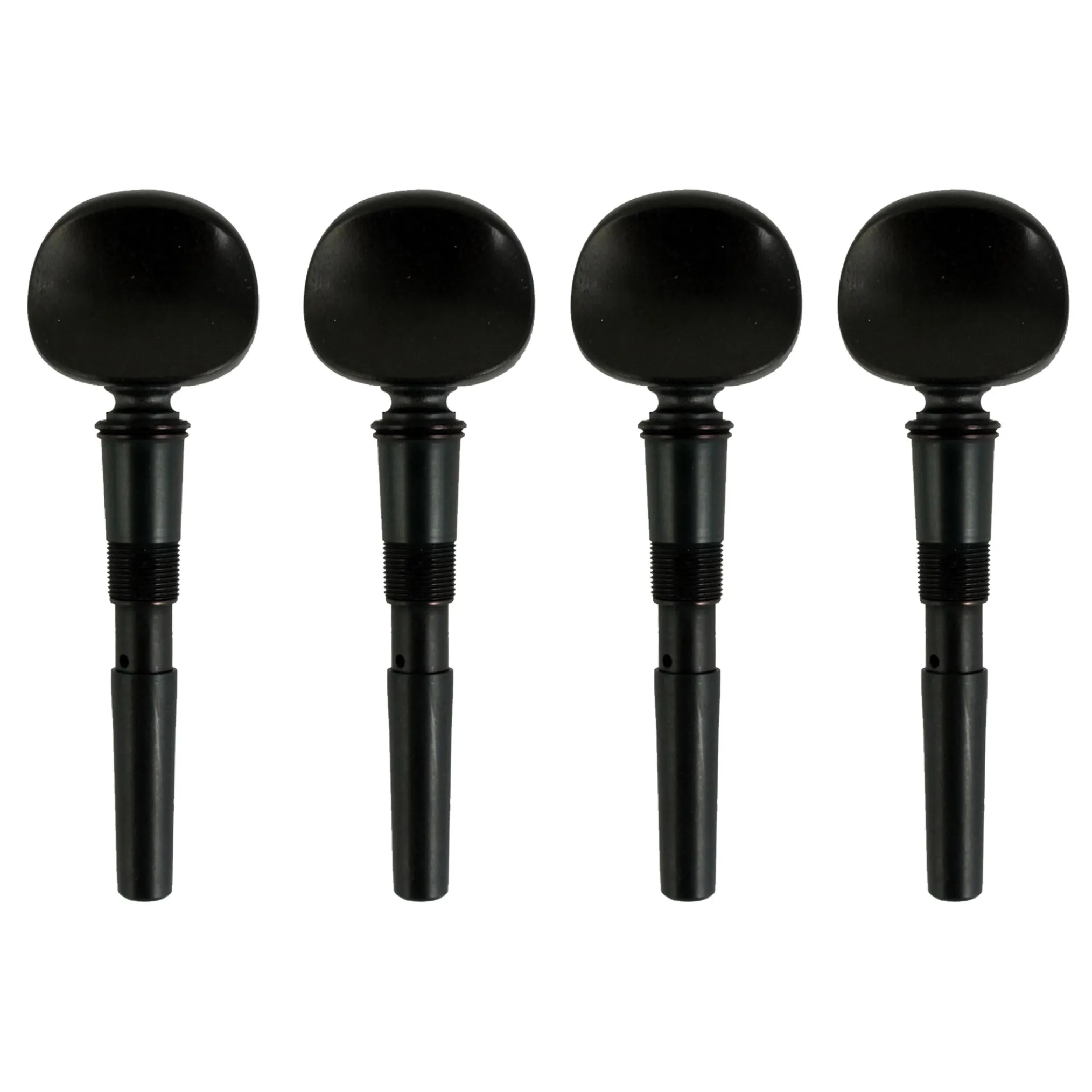 Perfection pegs have astandard taperand fit in the same holes as standard wooden friction pegs. They have the same shape, weight and taper as a set of good ebony pegs.