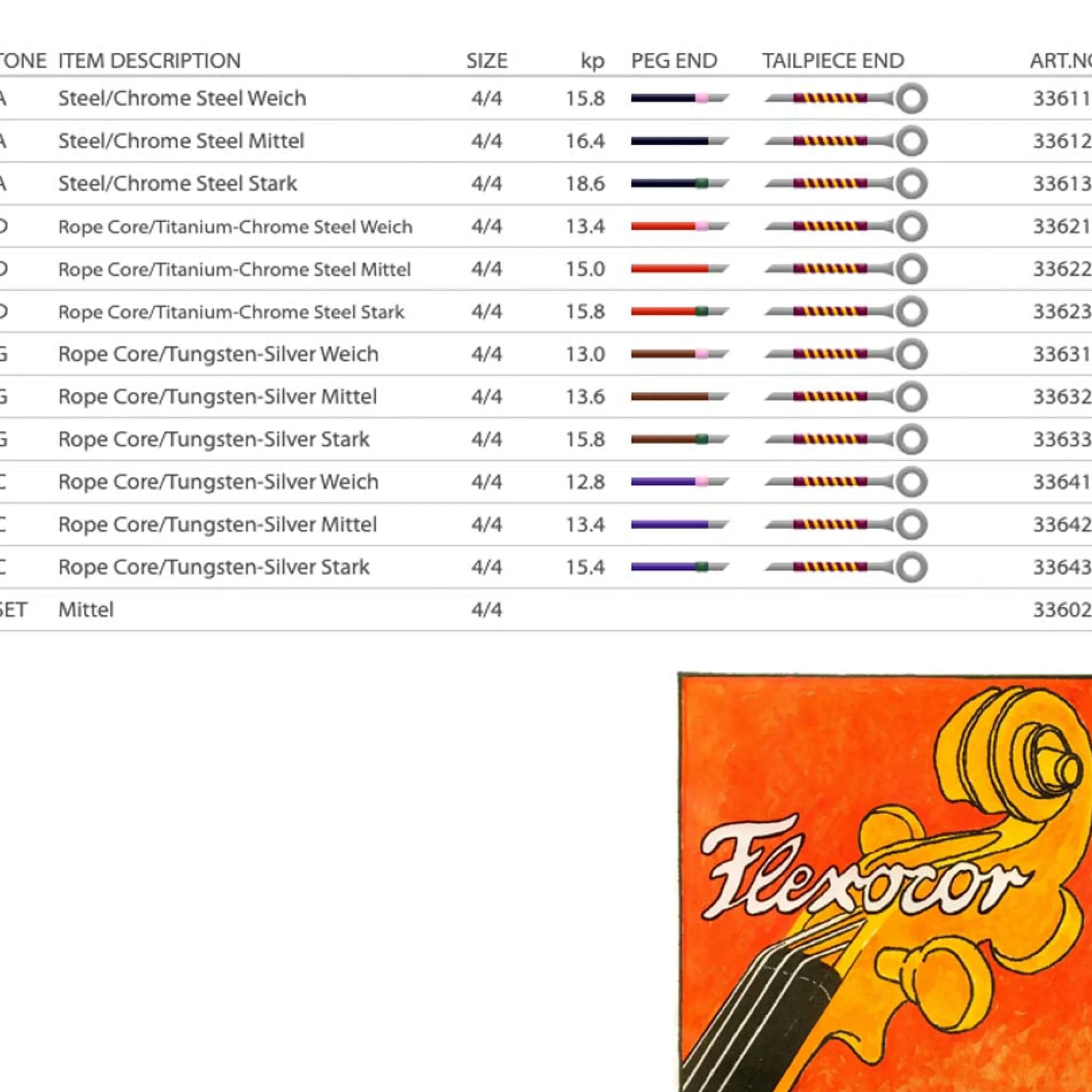 - The A-string has a core made from a single filament of high-tensile steel and is wound with chrome steel. The D-, G- and C-strings have a rope core. The D-string is wound with titanium and the G- and C-strings with tungsten.