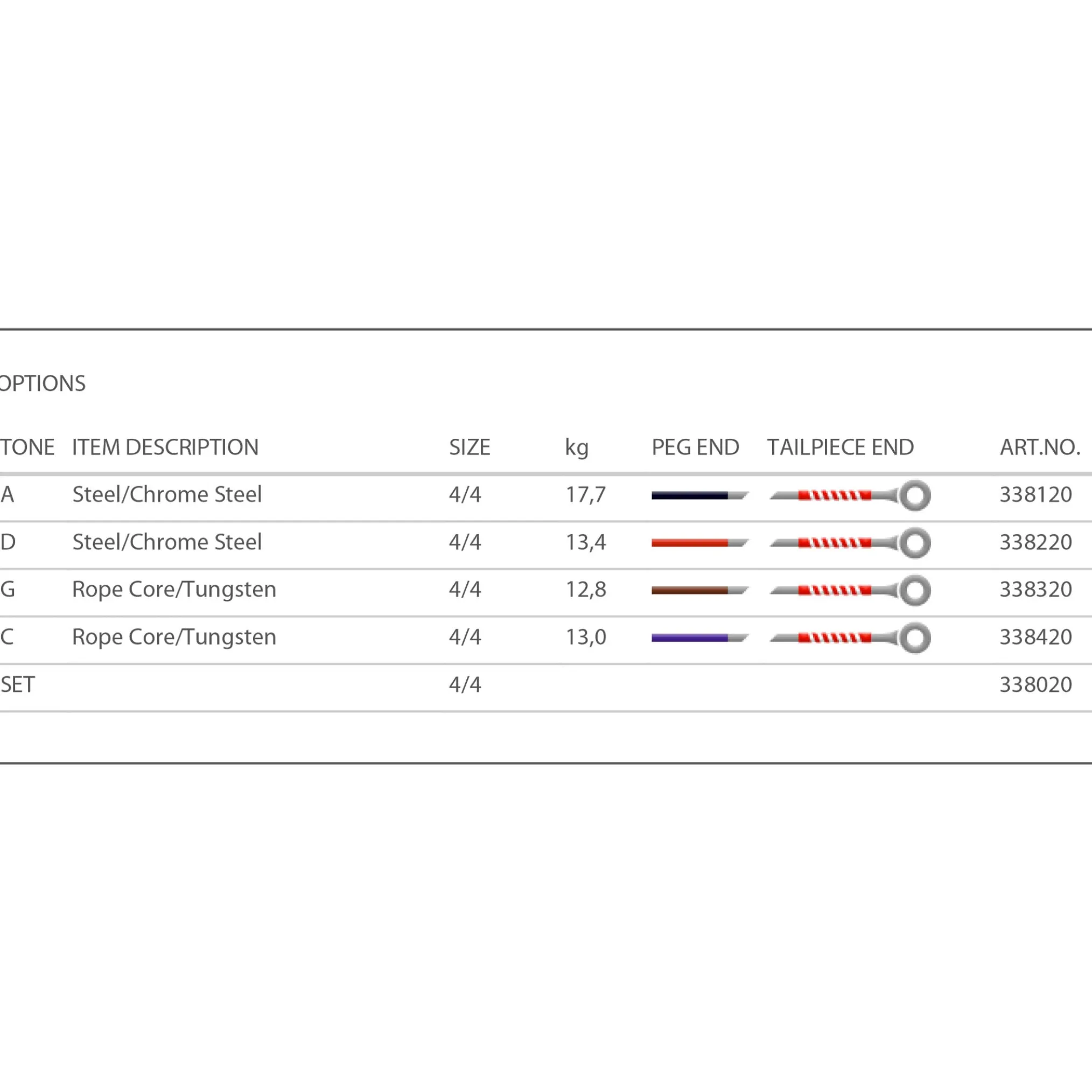 - The G- and C-strings have a rope steel core which is wound with tungsten