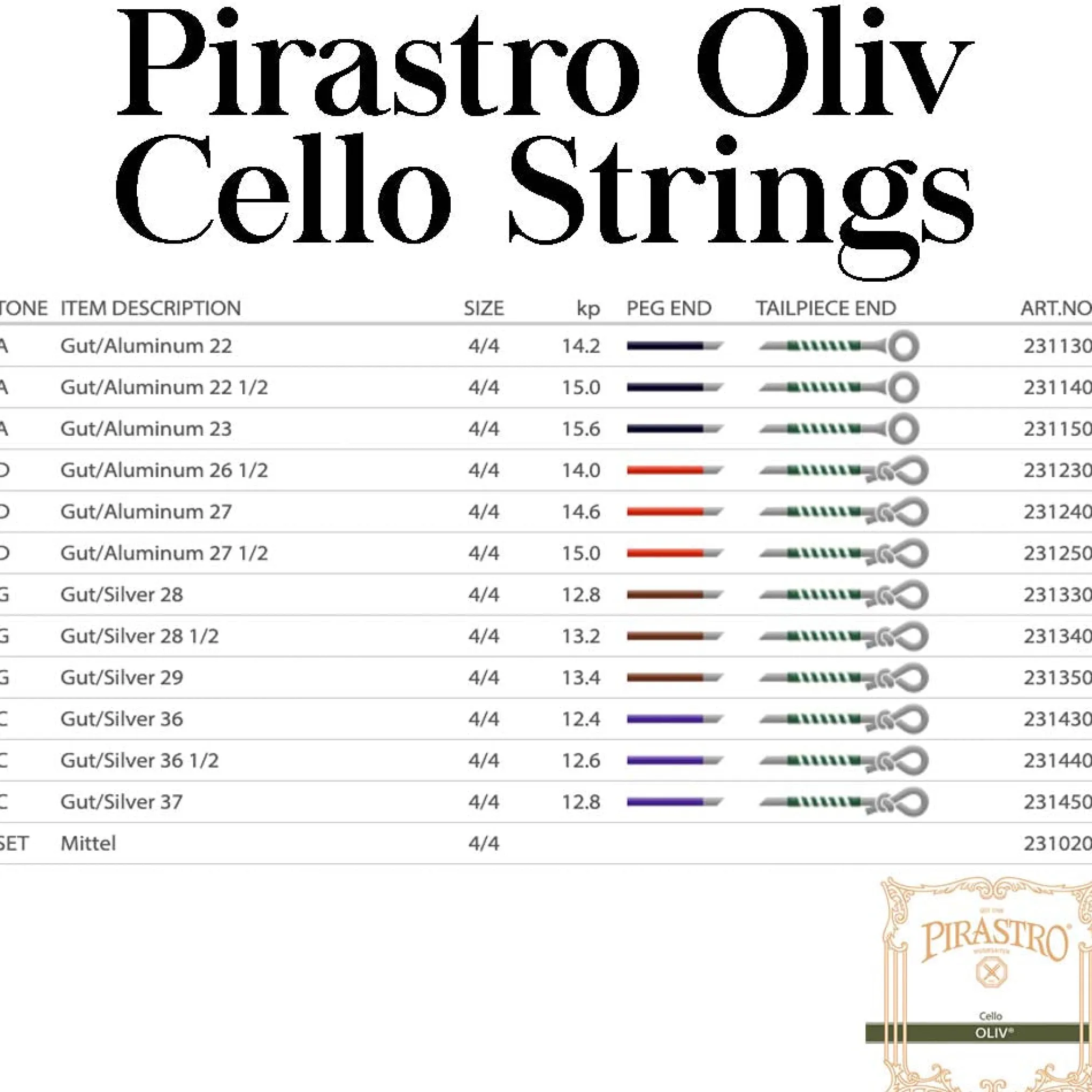 - Oliv strings are available in 4/4.