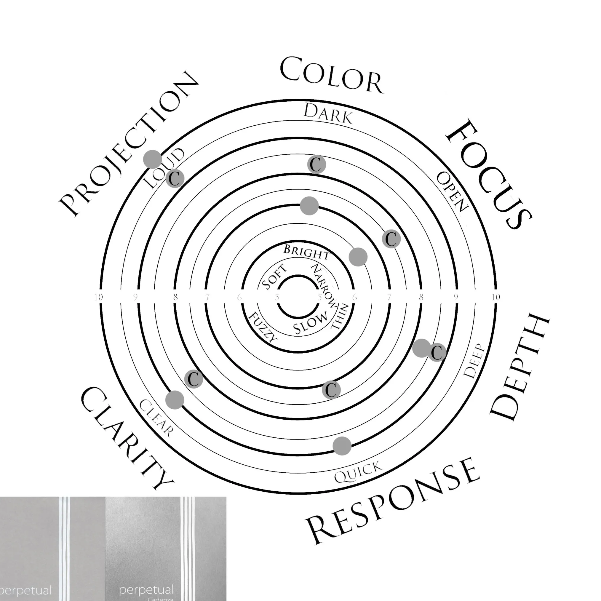 The Perpetual violin strings react in an ideal way to the finest nuances in bow speed and pressure; this enables the musician to play with an extreme range of dynamics and expression. The innovative core material allows a comfortable smoothness during legato, shifting, string crossings, double stops and chords. The extended reverberation of the Perpetual brings forth an exuberant luster.