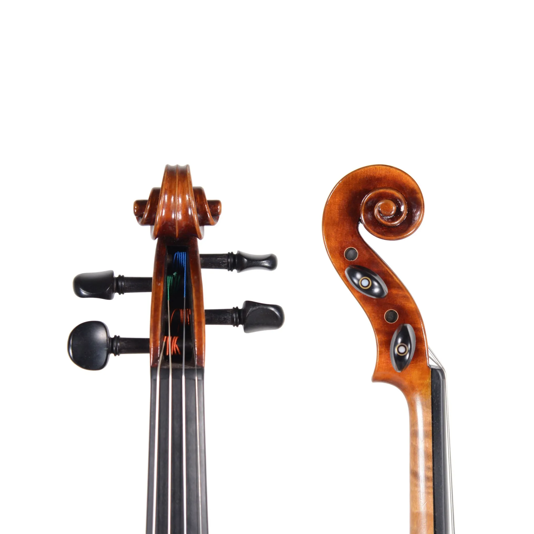 The Ming Jiang Zhu 903 violins are made at the Noble Heart workshop in Guangzhou China. This world class workshop has won many Violin Society of America awards. These violins are very powerful, clear, and generally have a very dark tone. Every violin is carved from beautifully flamed Asian maple for the back and sides, and a spruce top with a beautiful antique oil finish.